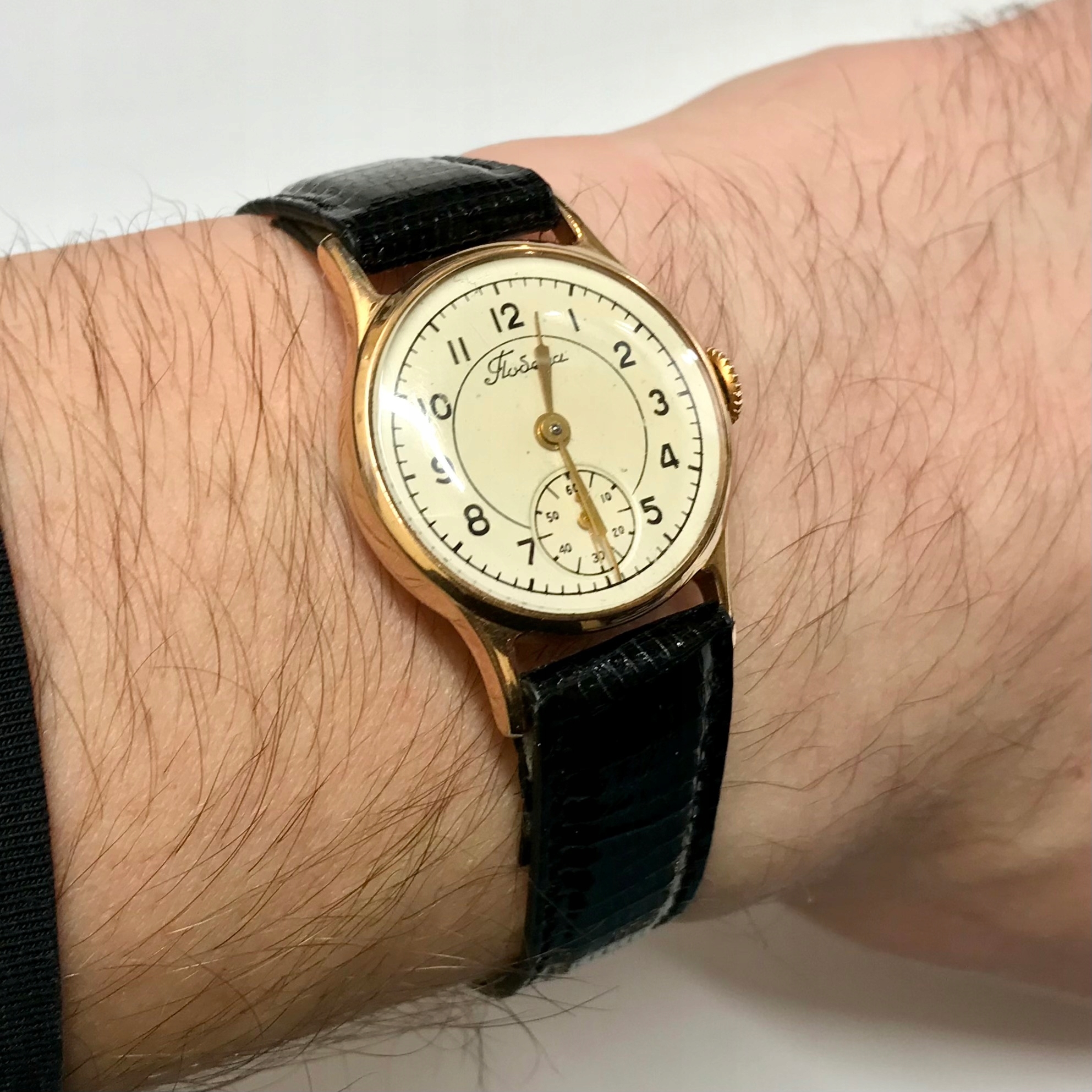 POBIEDA Złoty zegarek męski 585 14K pasek VINTAGE