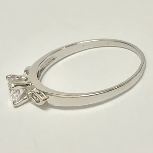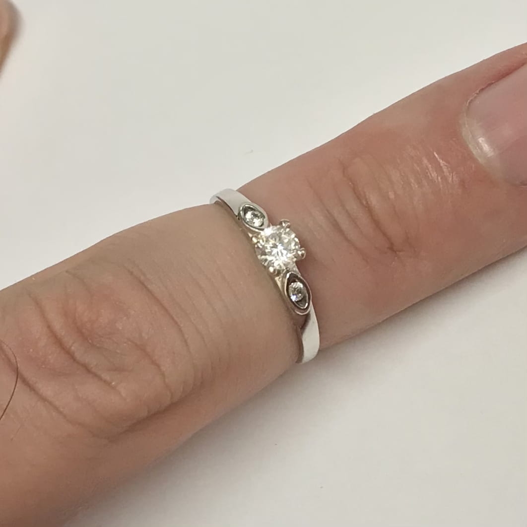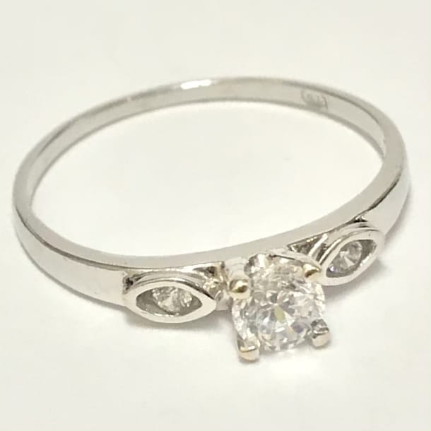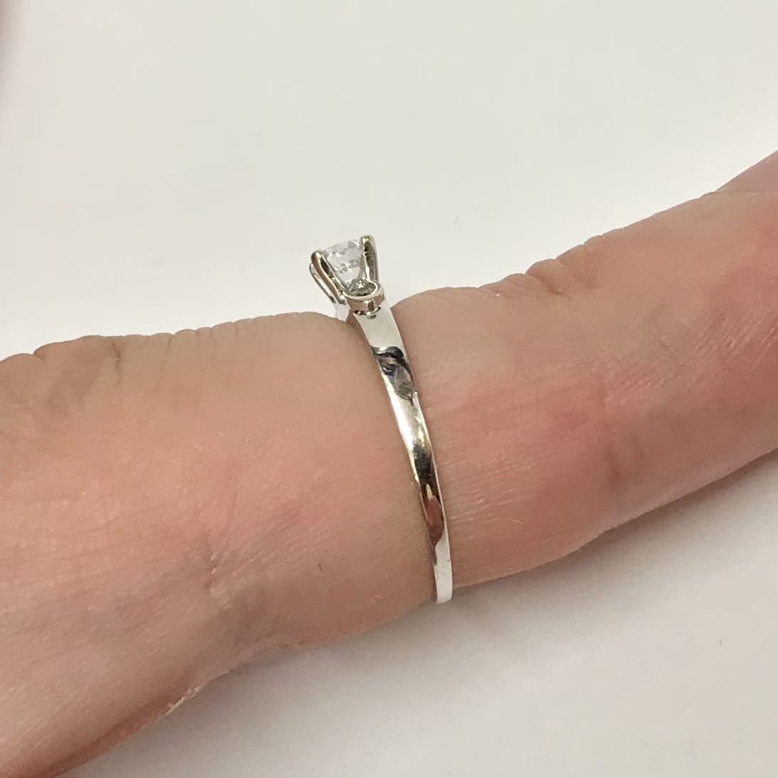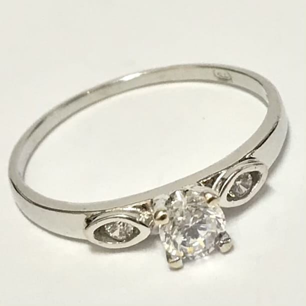 Piękny pierścionek wykonany z białego 14-karatowego złota.