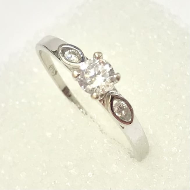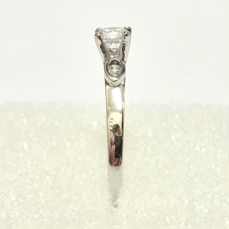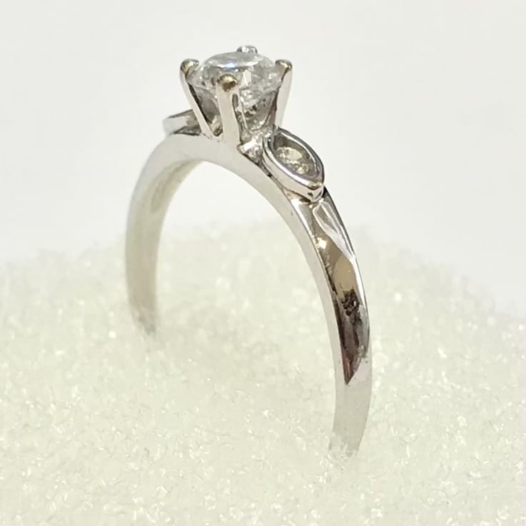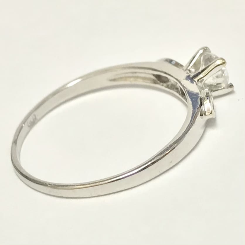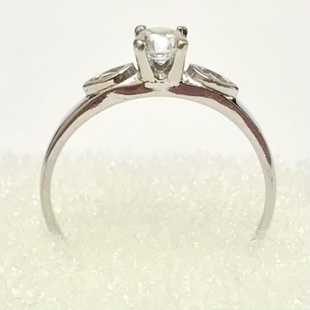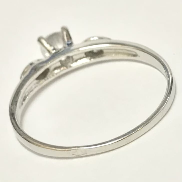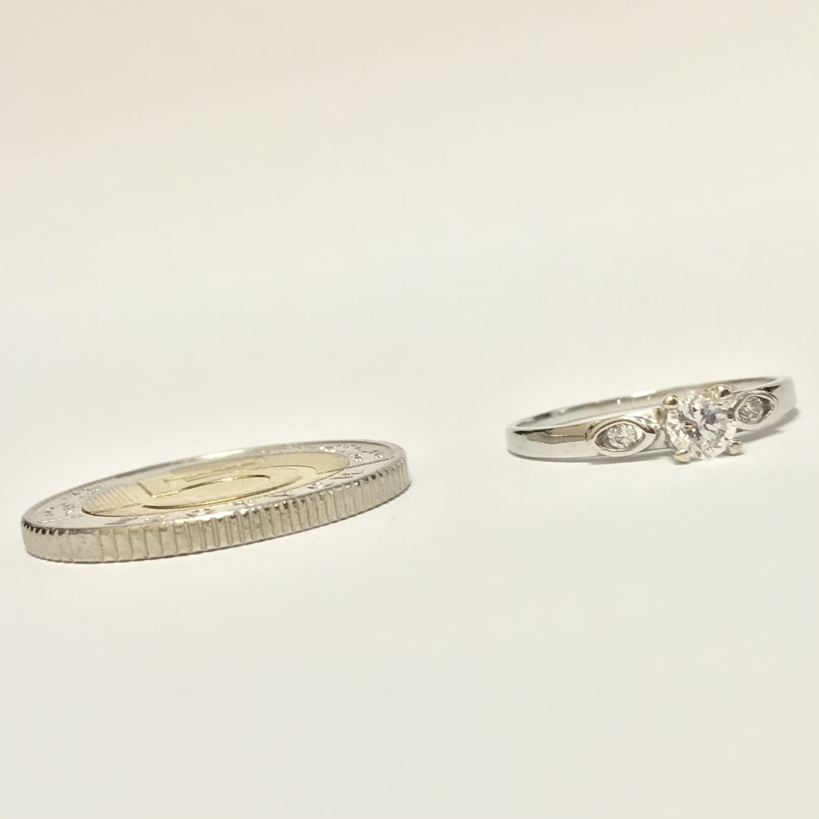Piękny pierścionek wykonany z białego 14-karatowego złota.