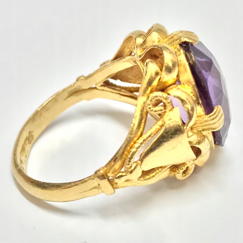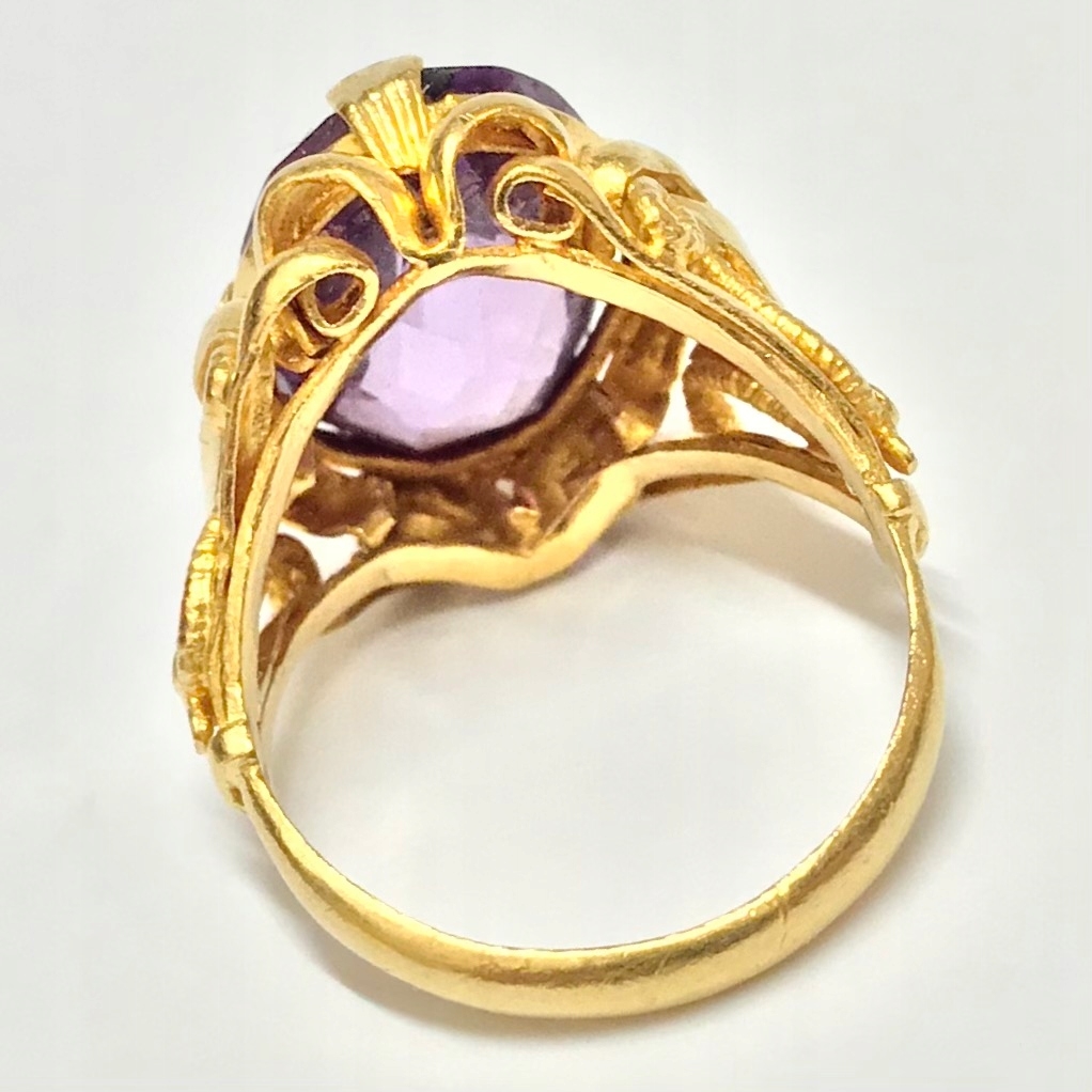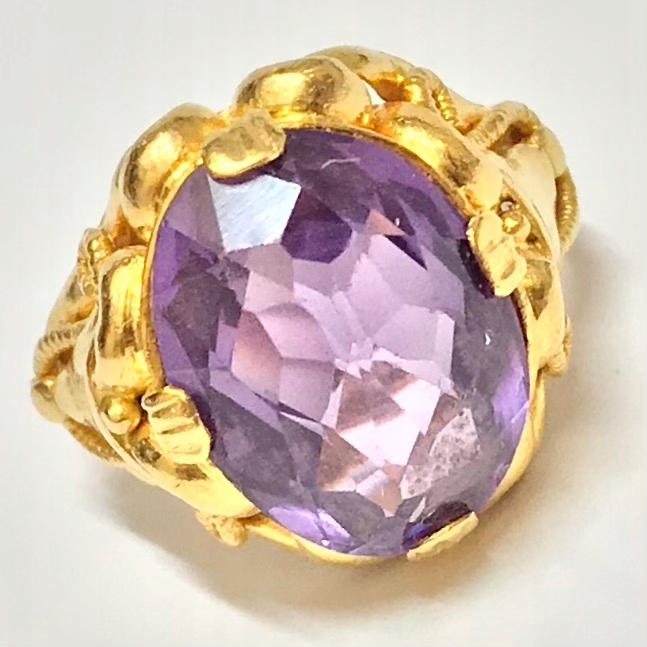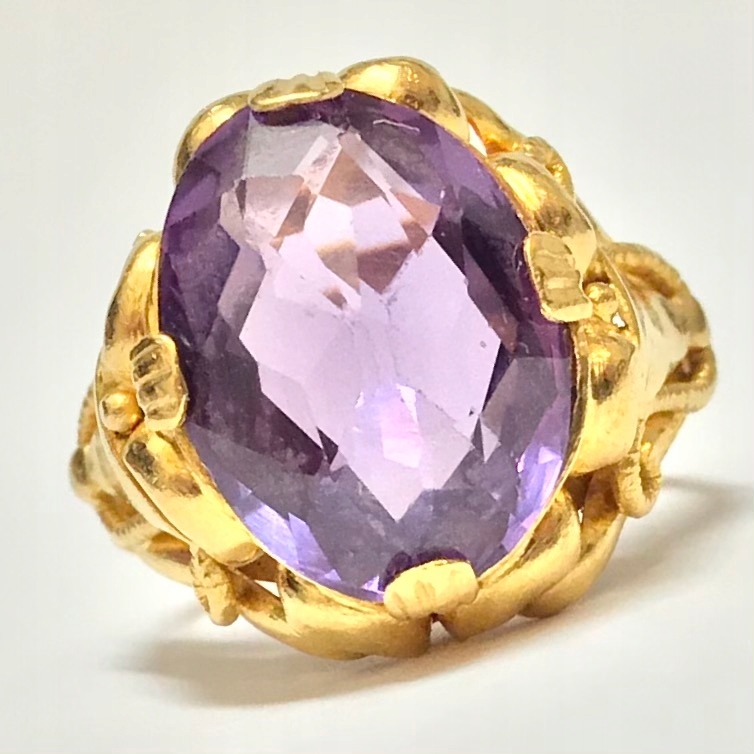 Pierścionek z żółtego ZŁOTA 22K AMETYST fiolet r13