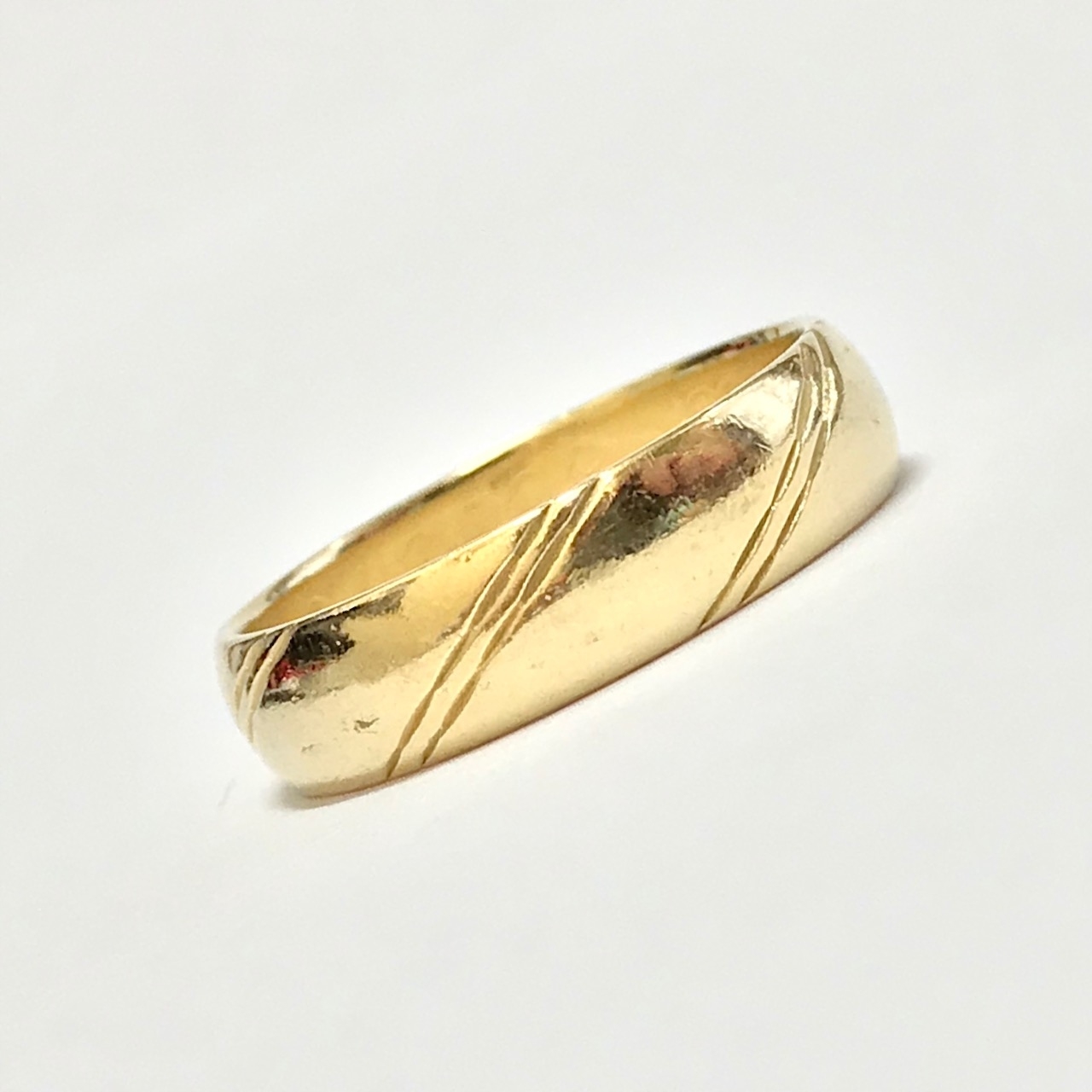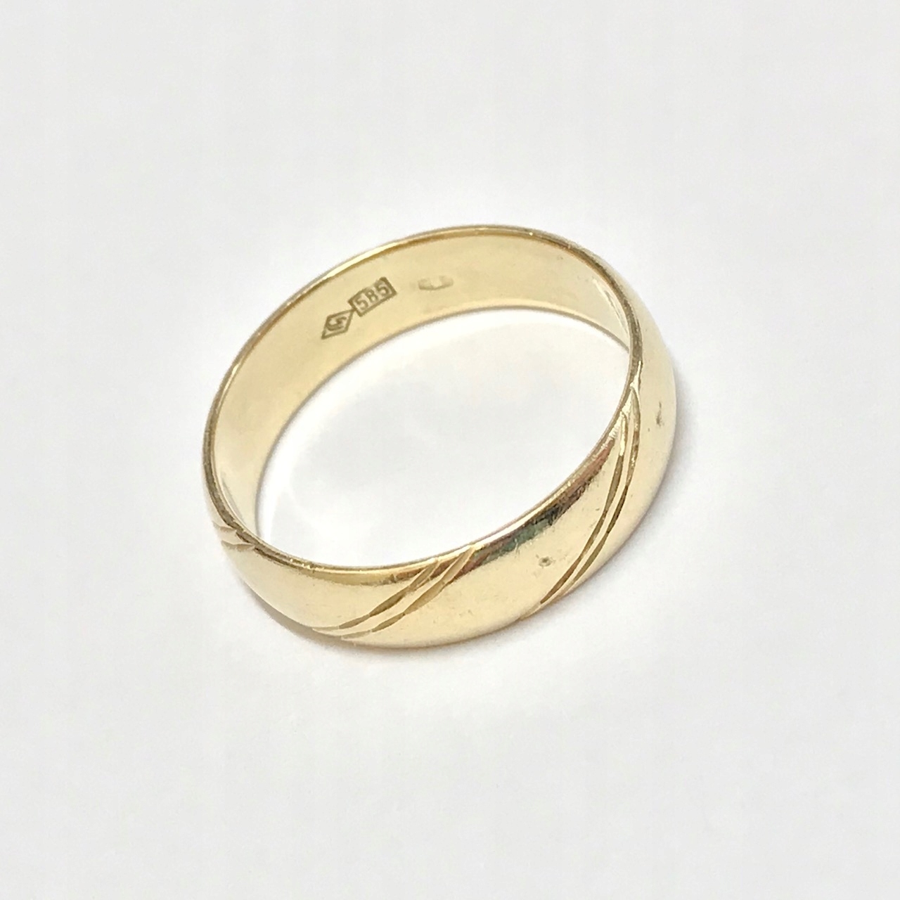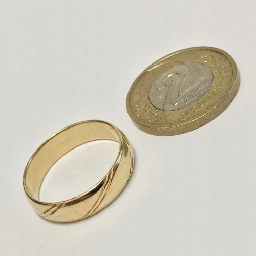 - Piękna obrączka wykonana z żółtego 14-karatowego złota.
