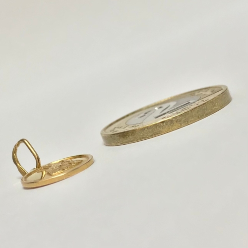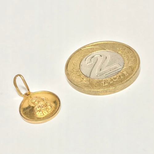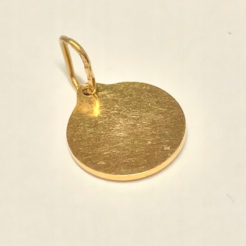 - Piękny medalik wykonany z żółtego 14-karatowego złota.