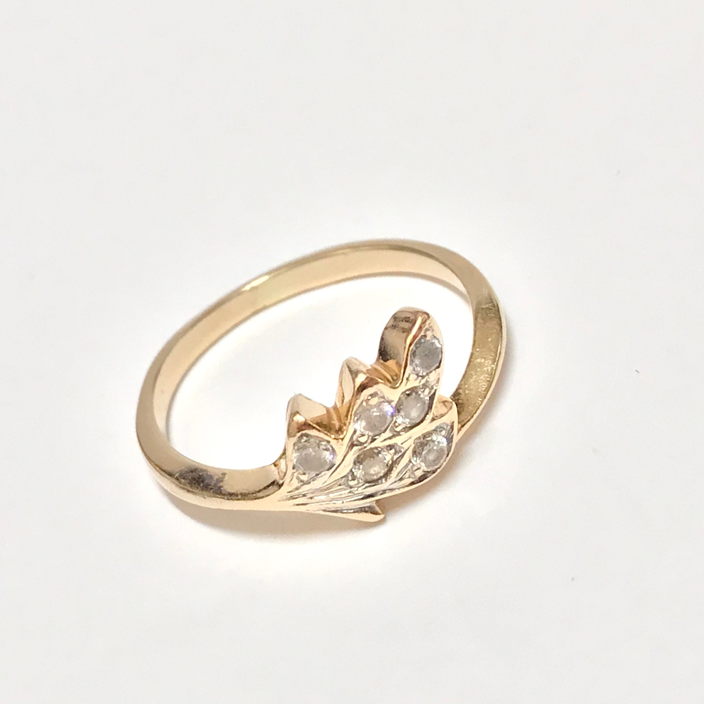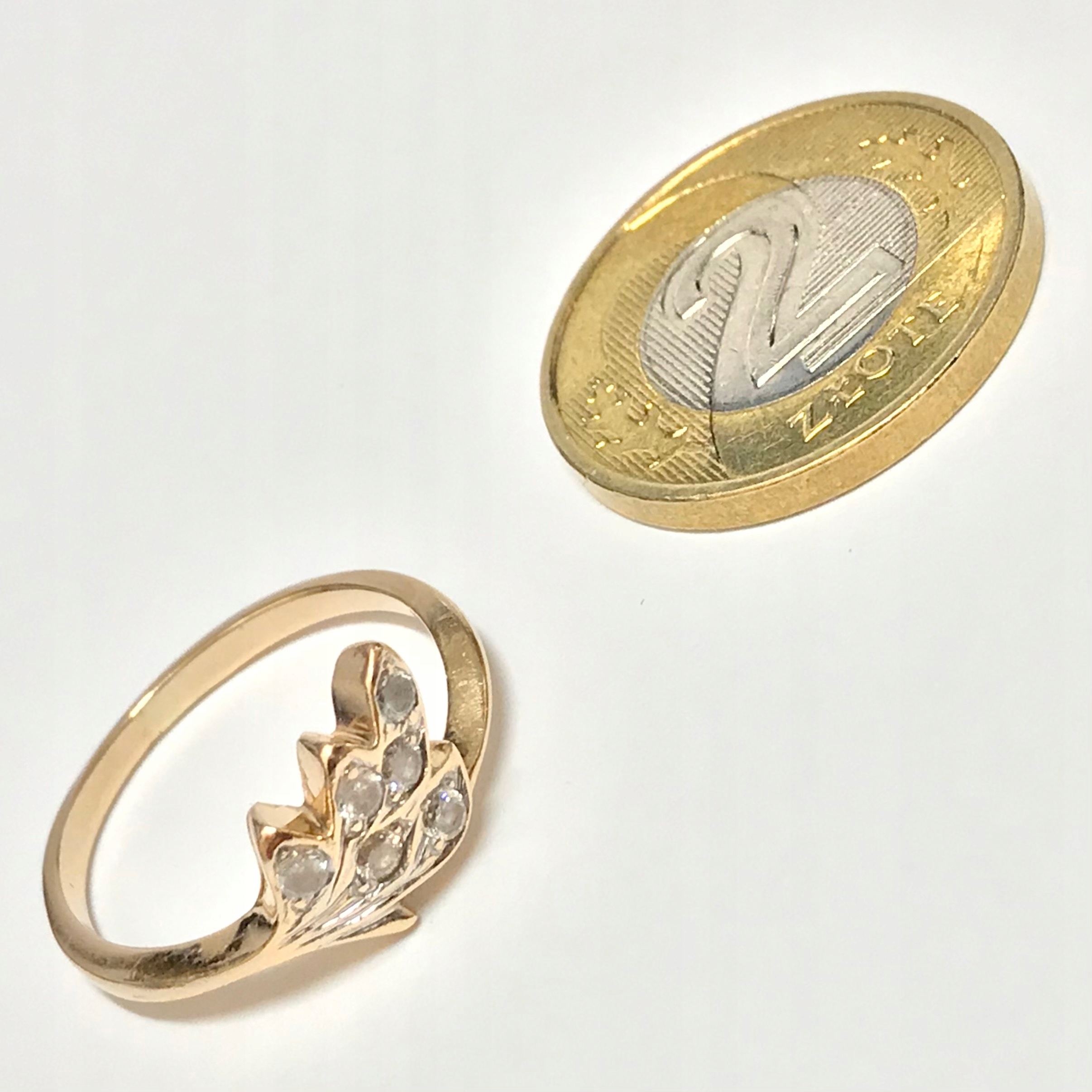Złoty PIERŚCIONEK 14K 585 cudowny WZÓR jak LIŚĆ kwiat r. 12
