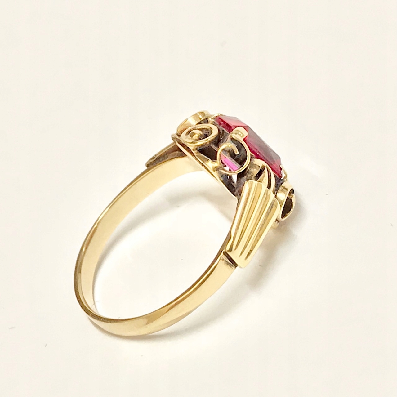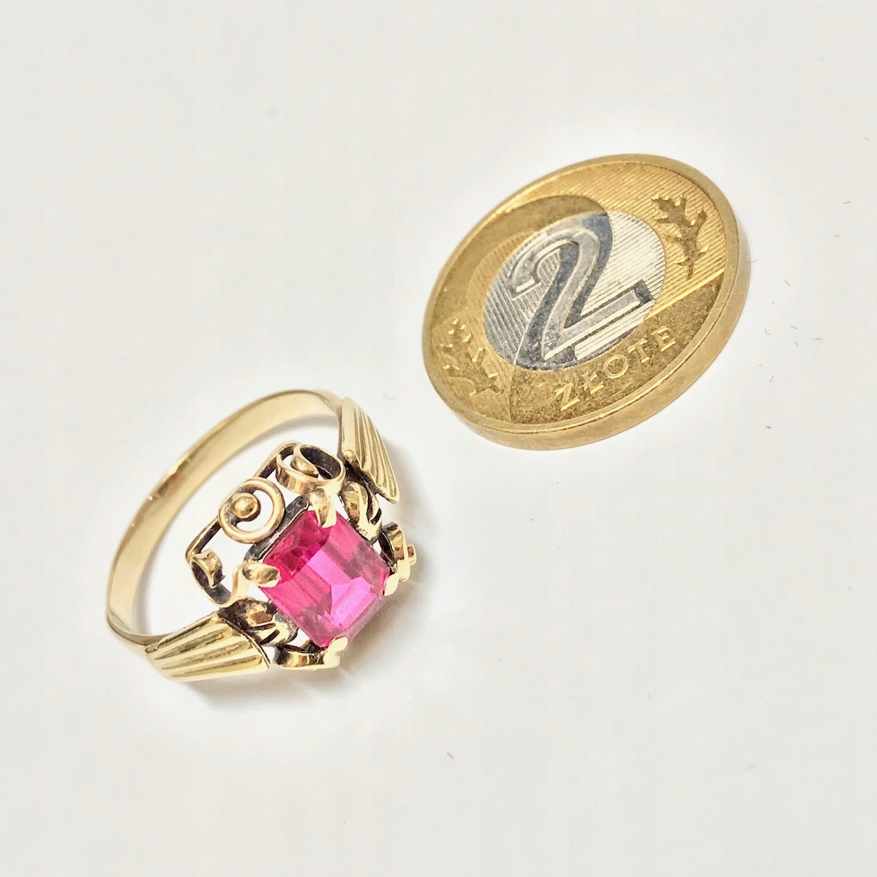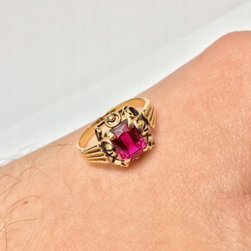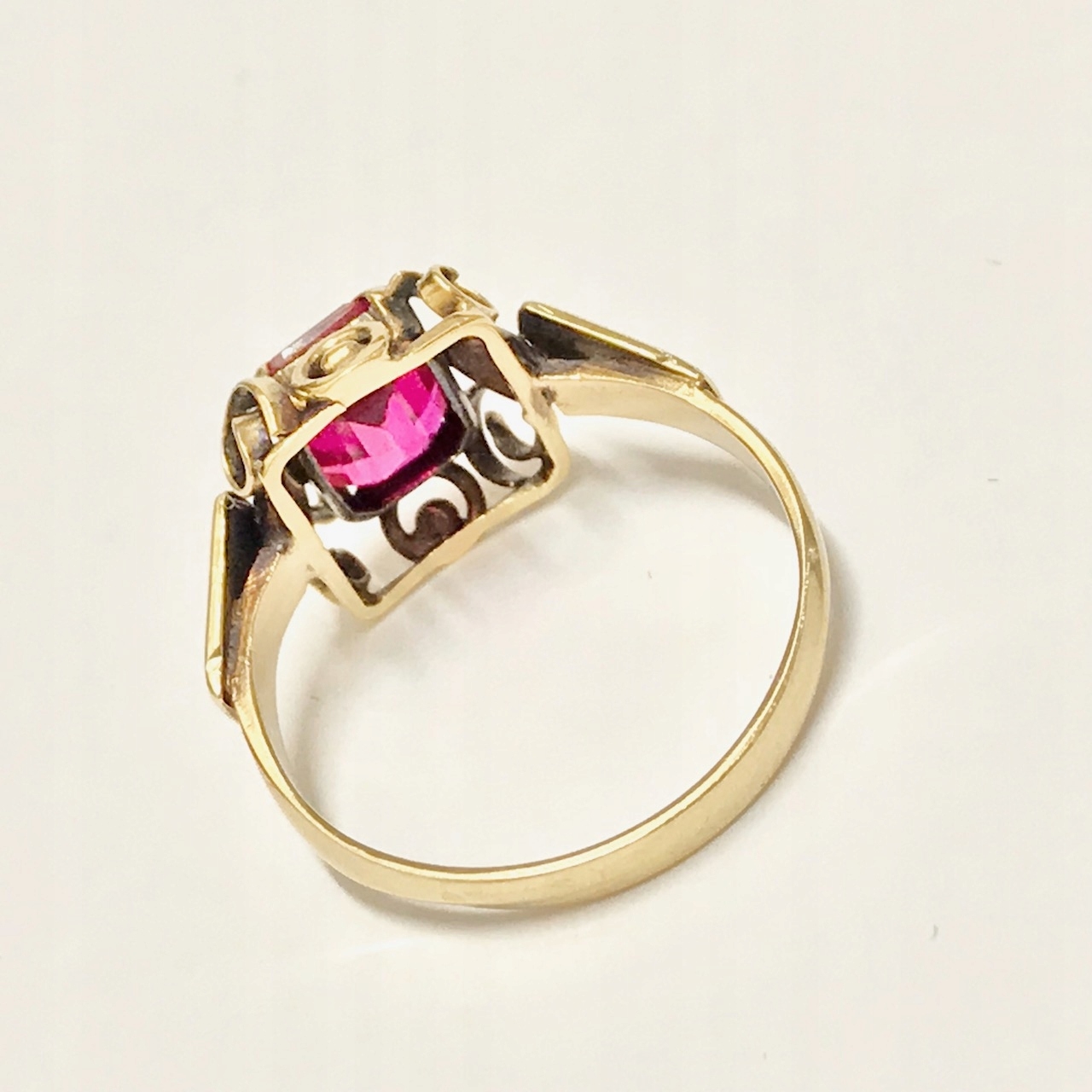 Złoty PIERŚCIONEK 14K SUBTELNY czerwony KAMIEŃ cud