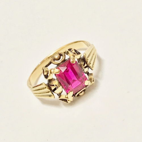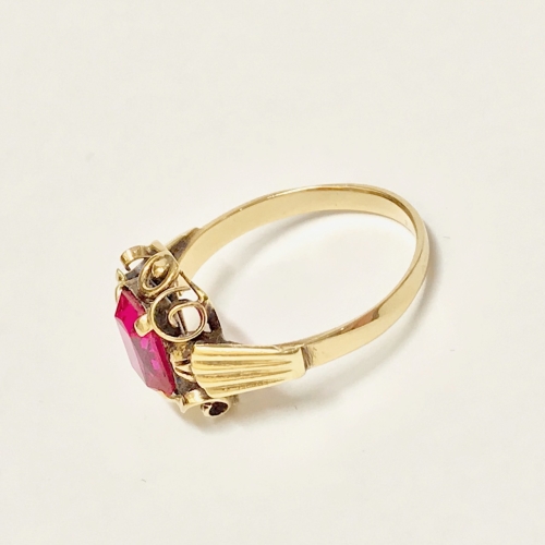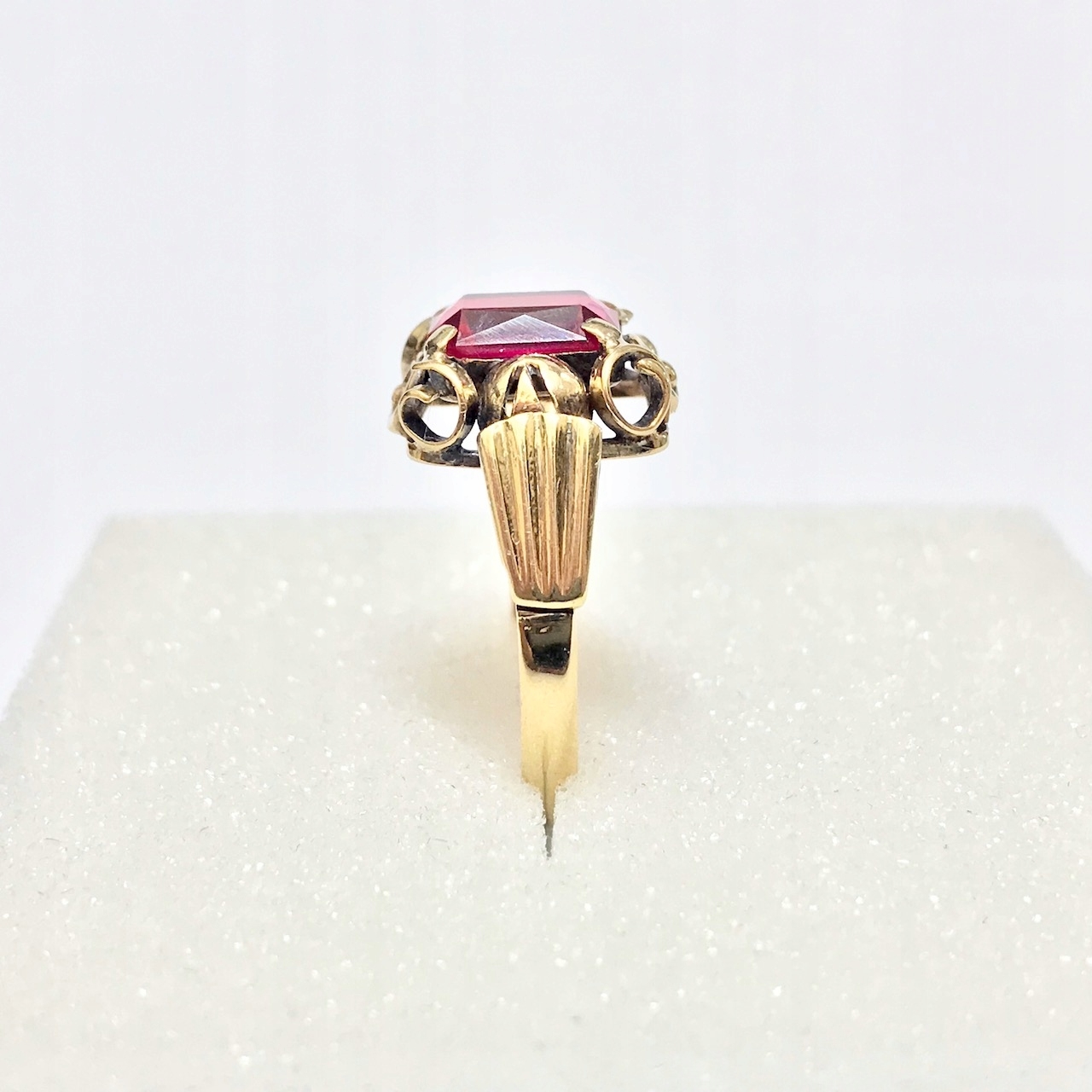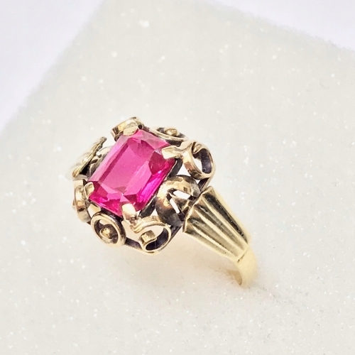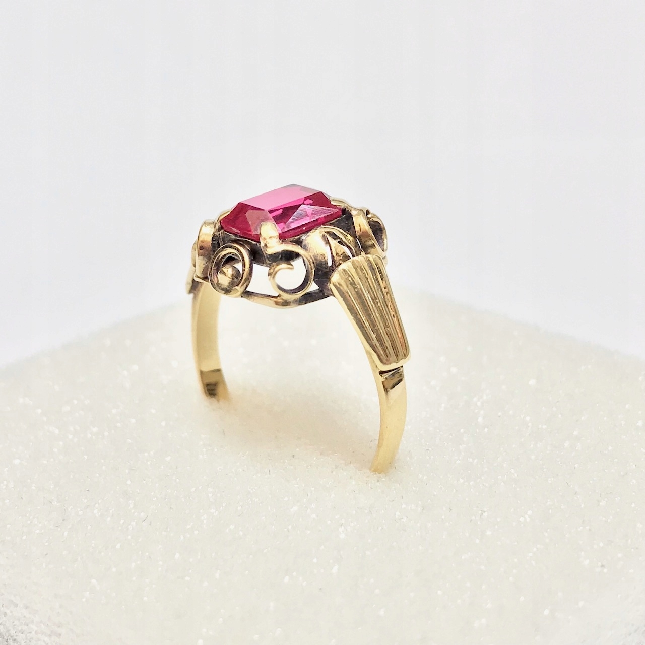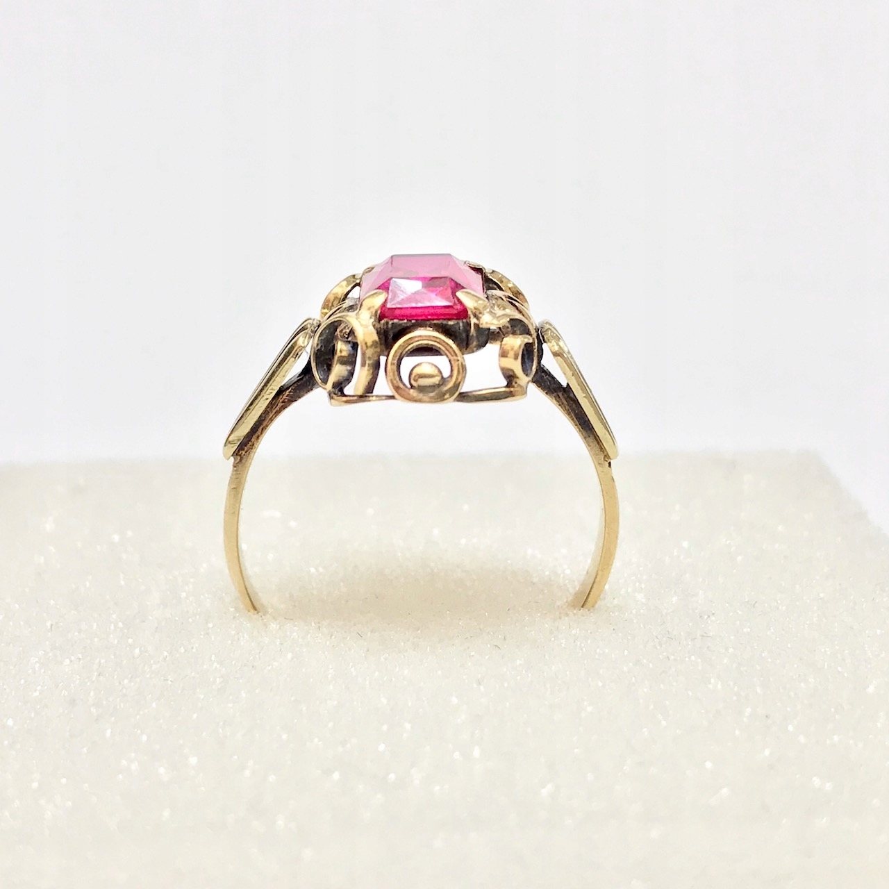 Złoty PIERŚCIONEK 14K SUBTELNY czerwony KAMIEŃ cud