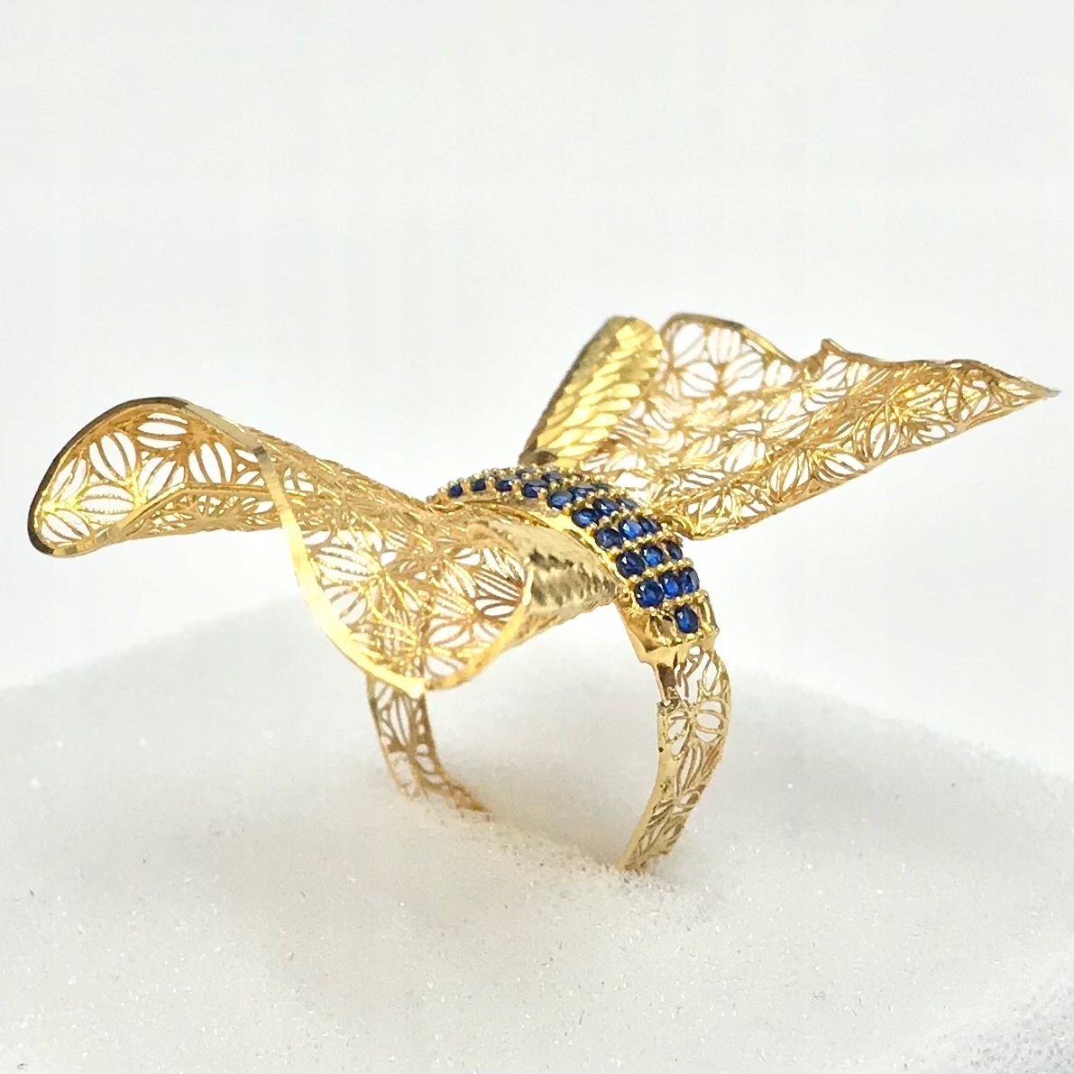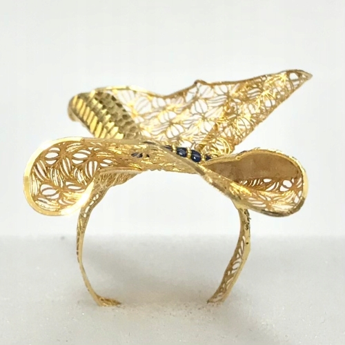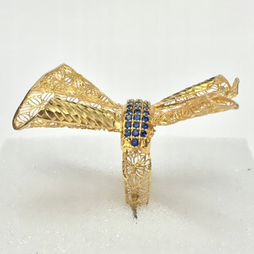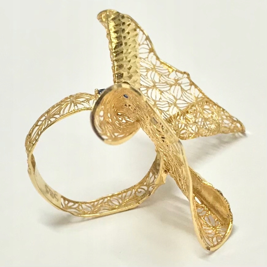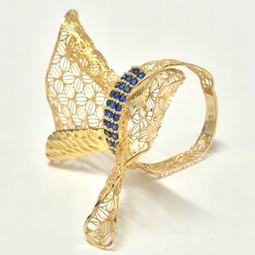 Złoty PIERŚCIONEK 14K ażurowy MOTYL i SZAFIRY r13