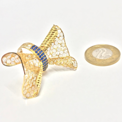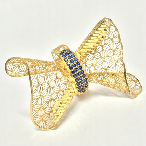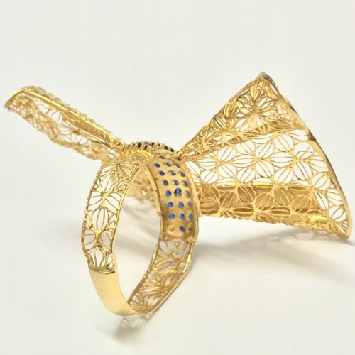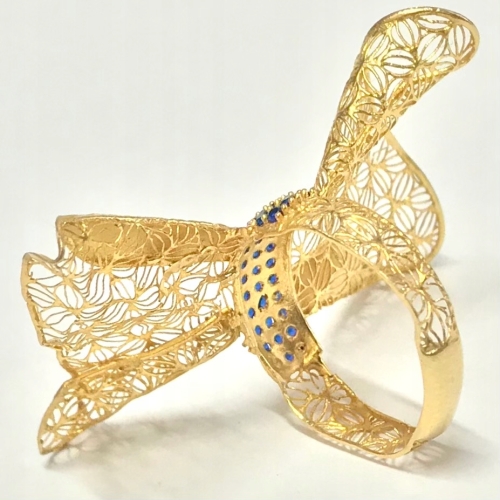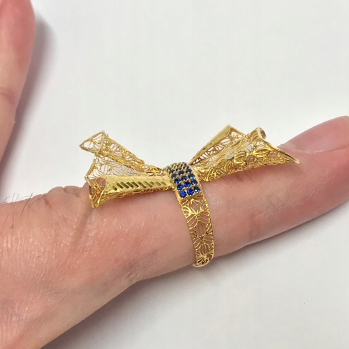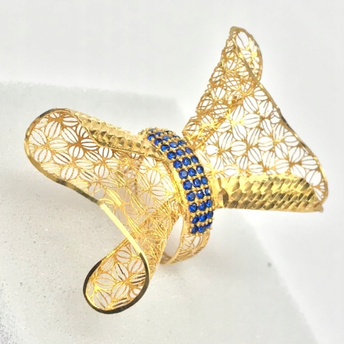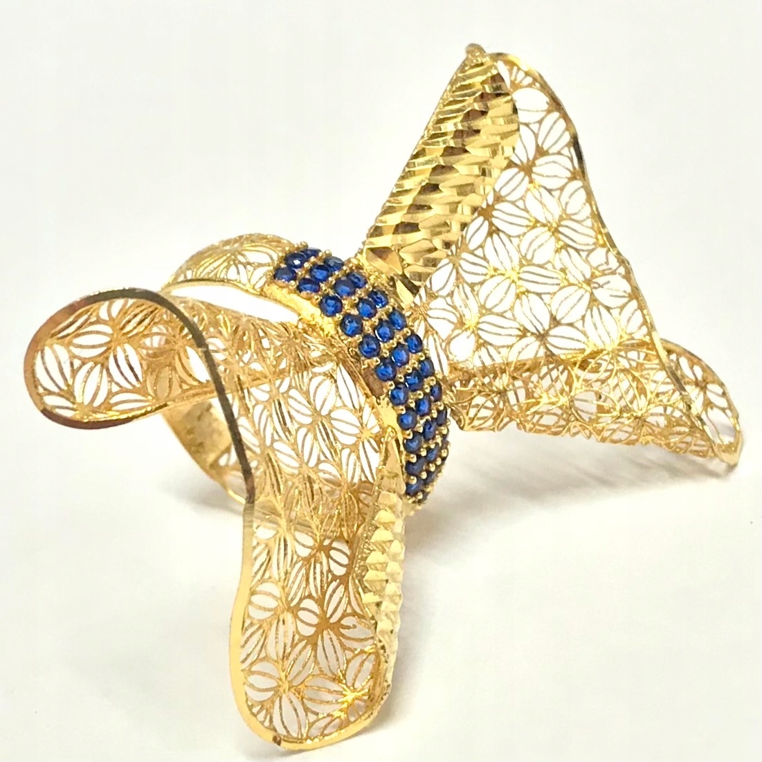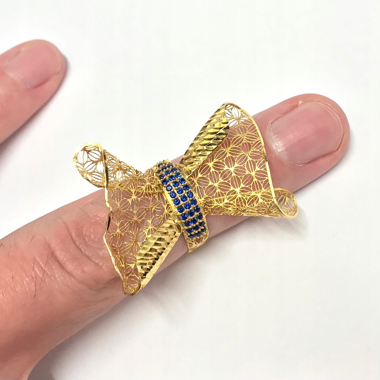 Złoty PIERŚCIONEK 14K ażurowy MOTYL i SZAFIRY r13