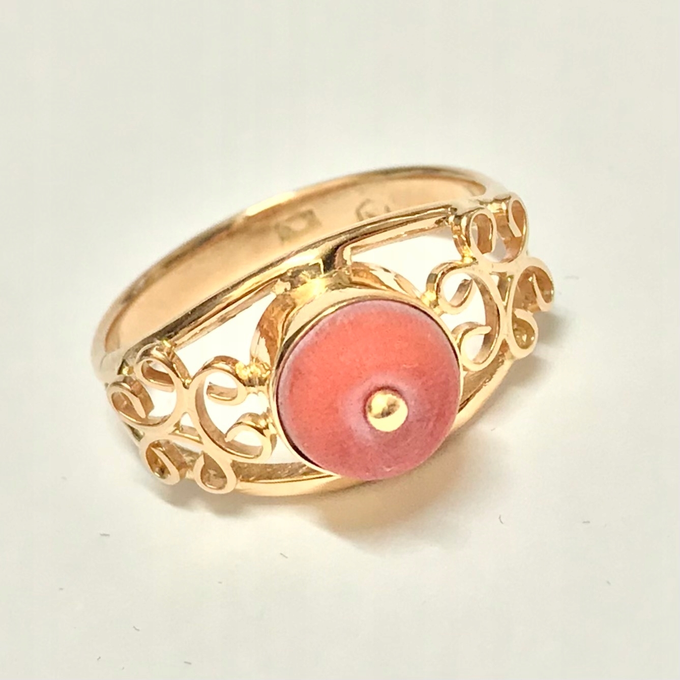 Złoty PIERŚCIONEK 14K ażurowy piękny KORAL r. 15
