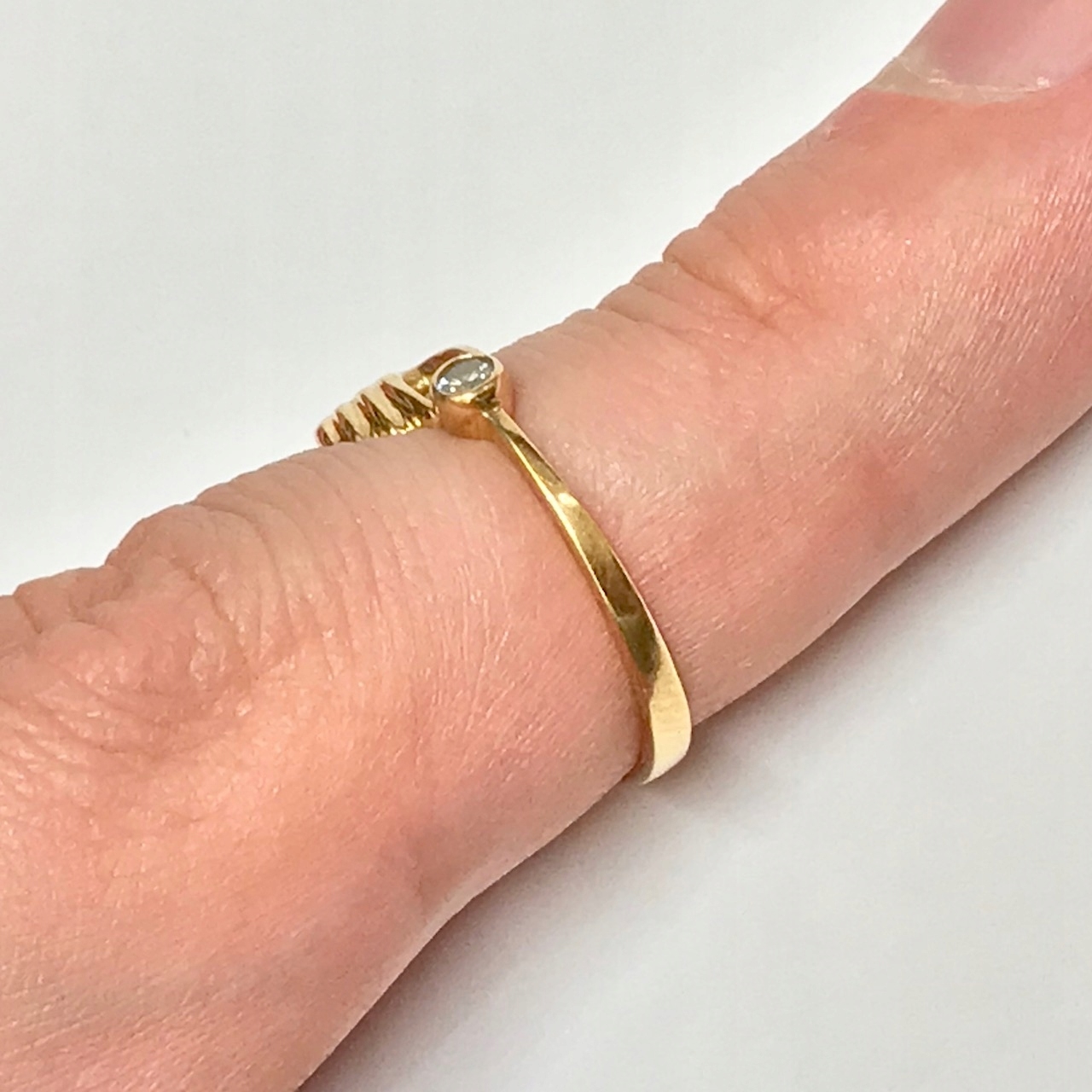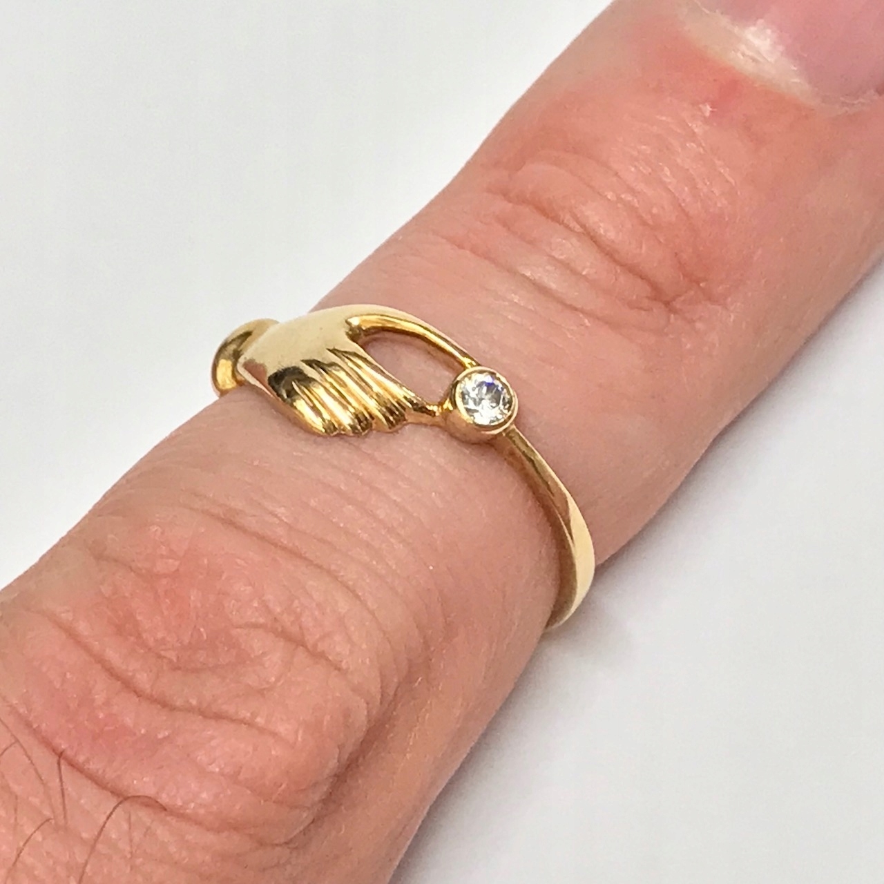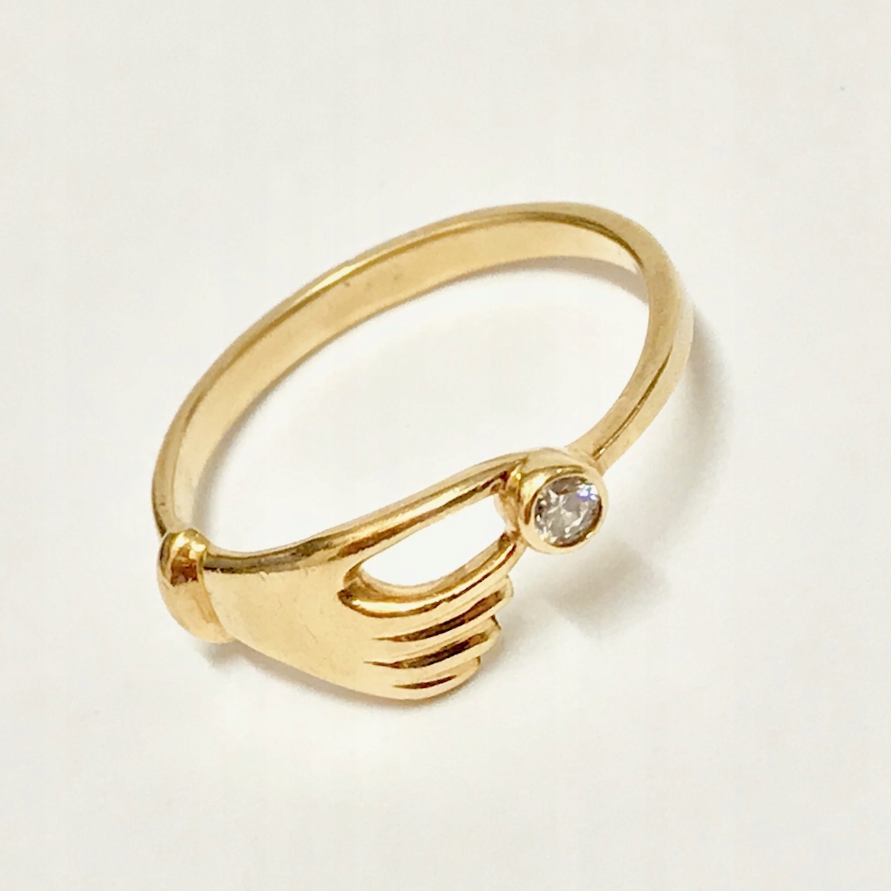 - Piękny pierścionek wykonany z żółtego 14-karatowego złota.