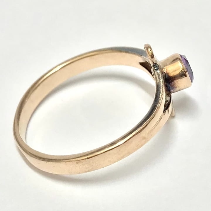 - Piękny pierścionek wykonany z różowego 14-karatowego złota.