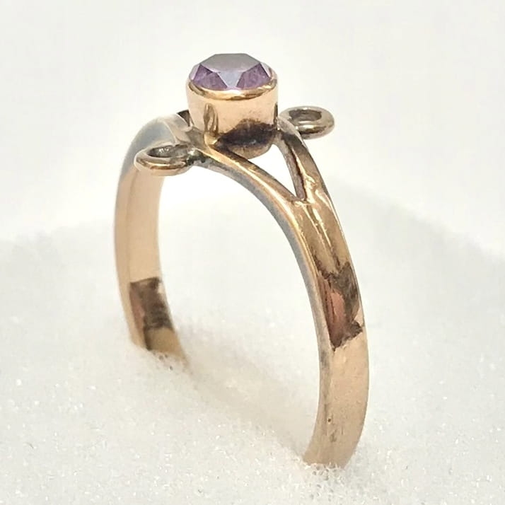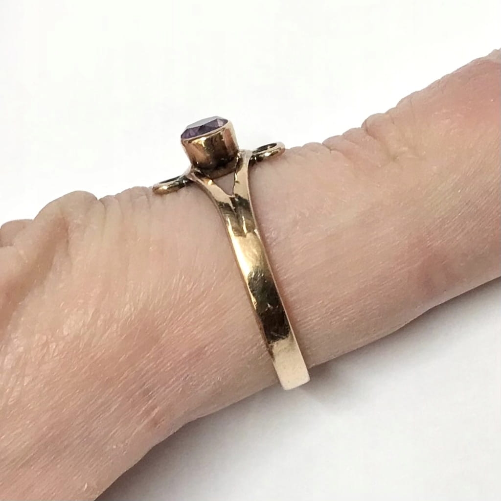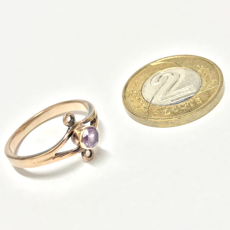 Złoty PIERŚCIONEK 14K cudny AMETYST FIOLETOWY r.14