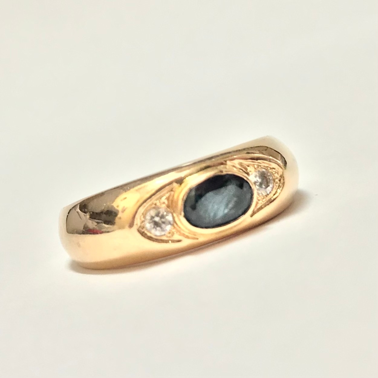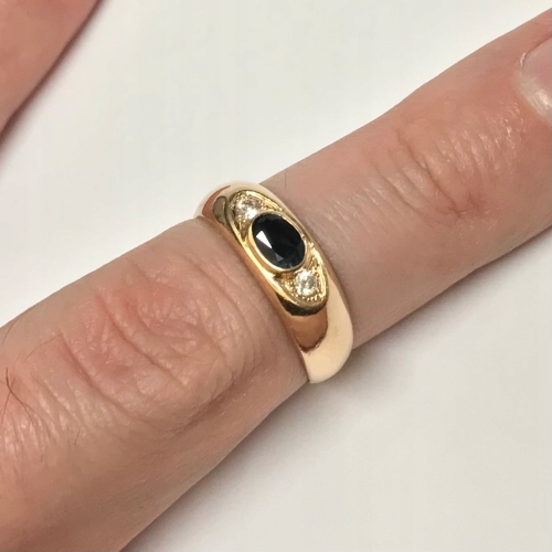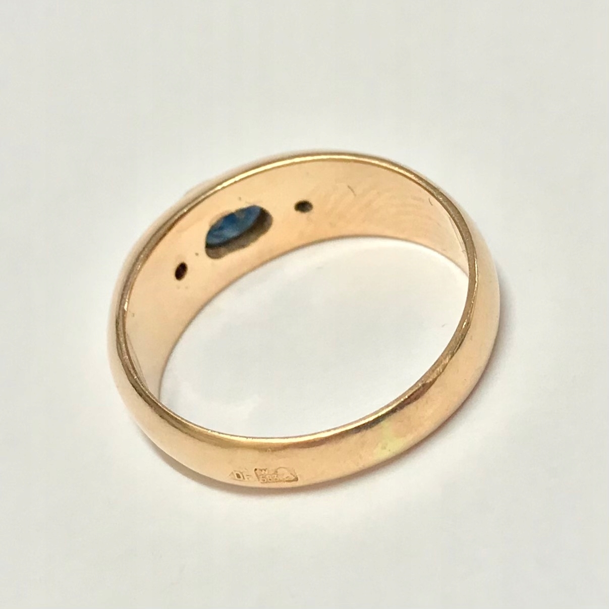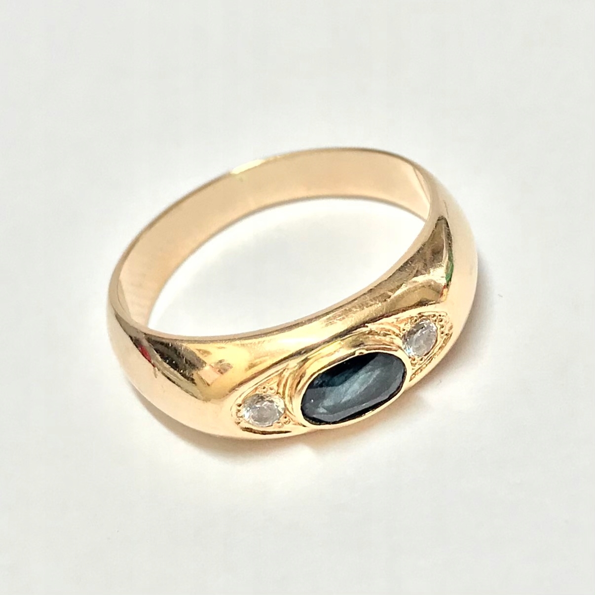 Złoty PIERŚCIONEK 14K cudny SZAFIR i KAMIENIE r.17