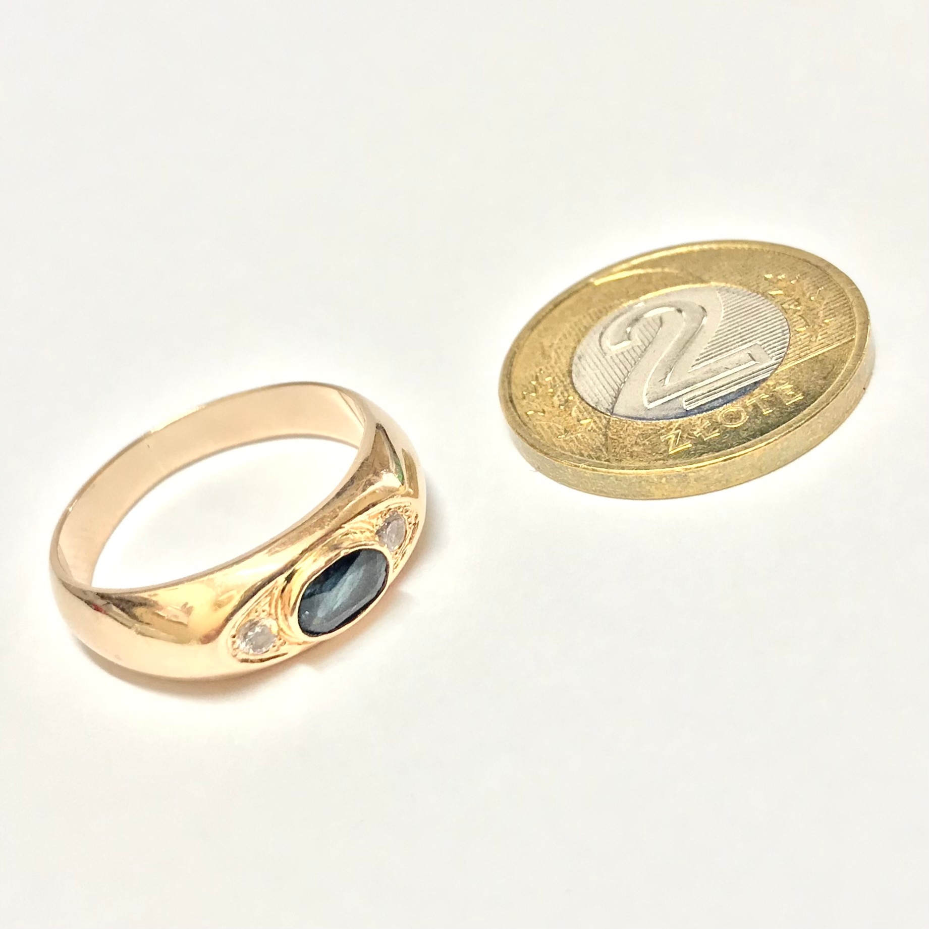 - Żółte złoto / 5.87g / 585, tj. 14 karatów / 17, tj. 18.2mm.