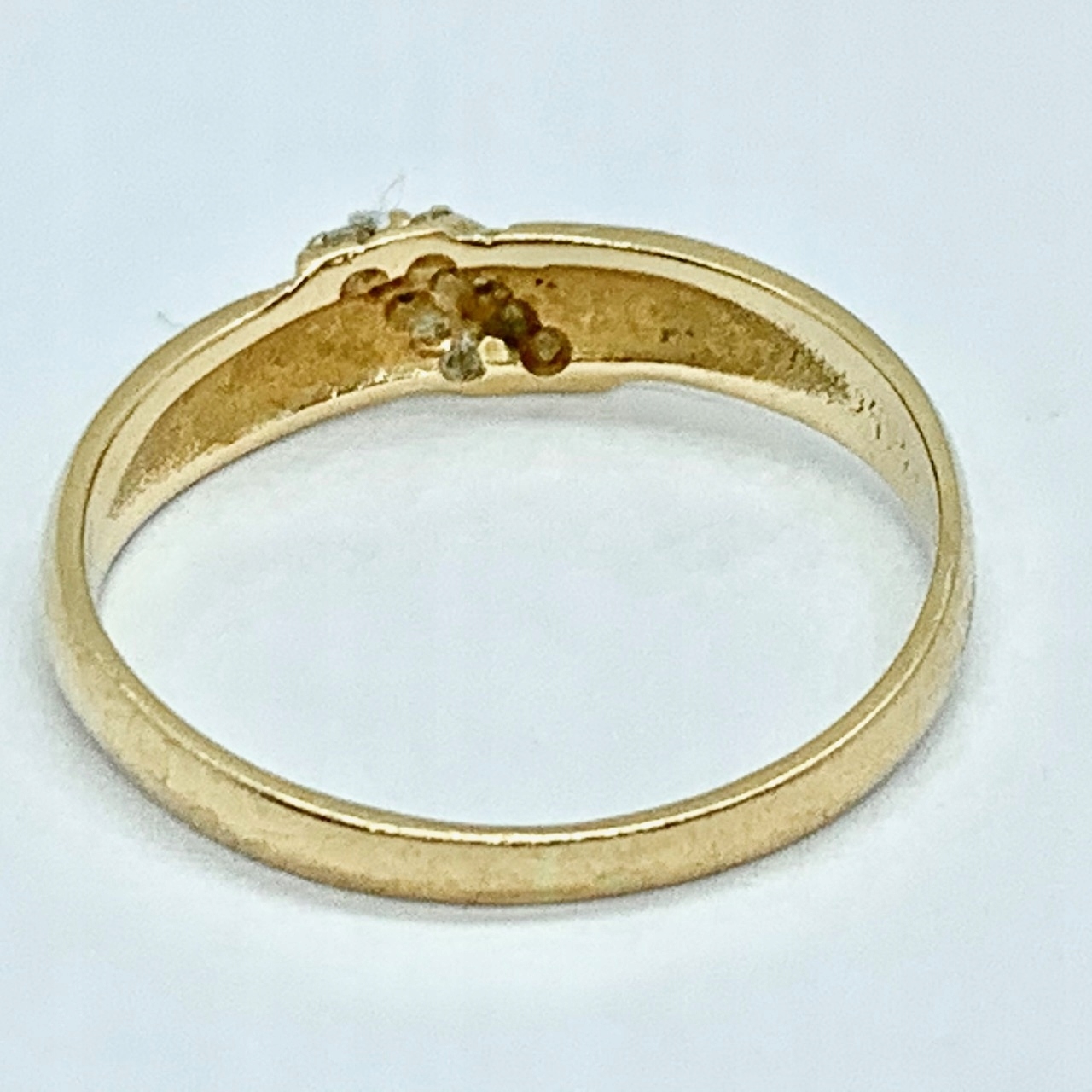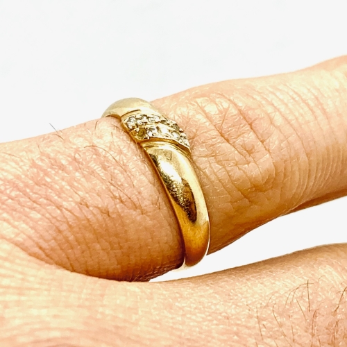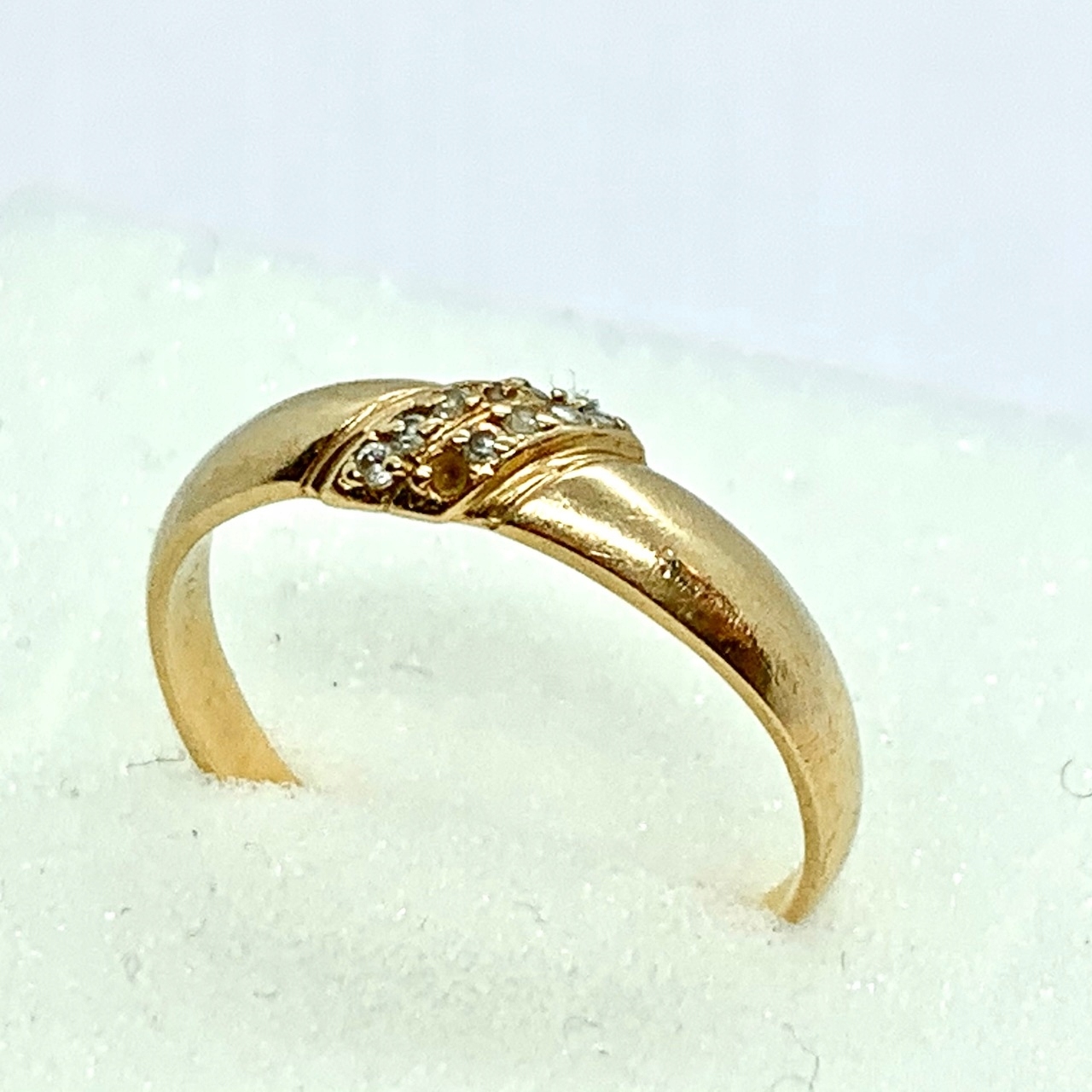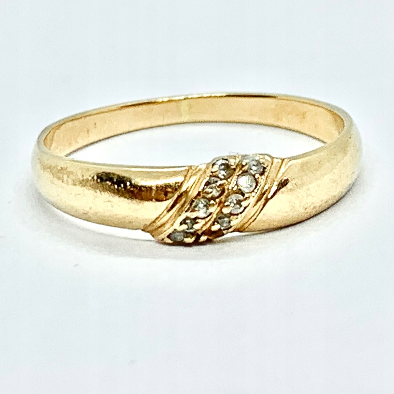 - Piękny pierścionek wykonany z żółtego 14-karatowego złota.