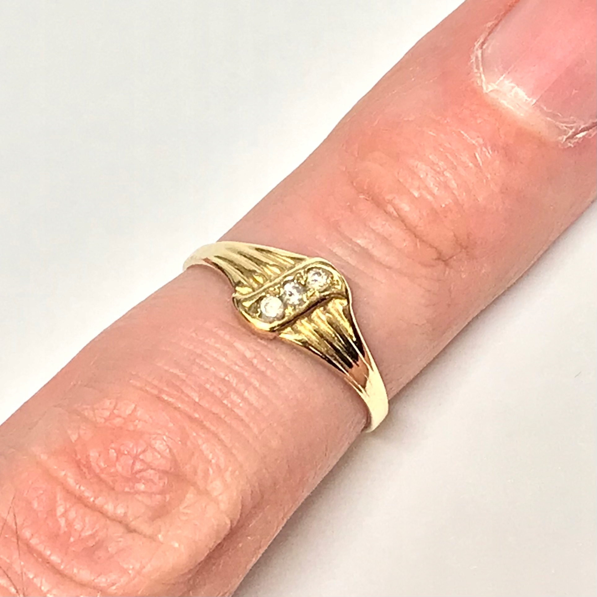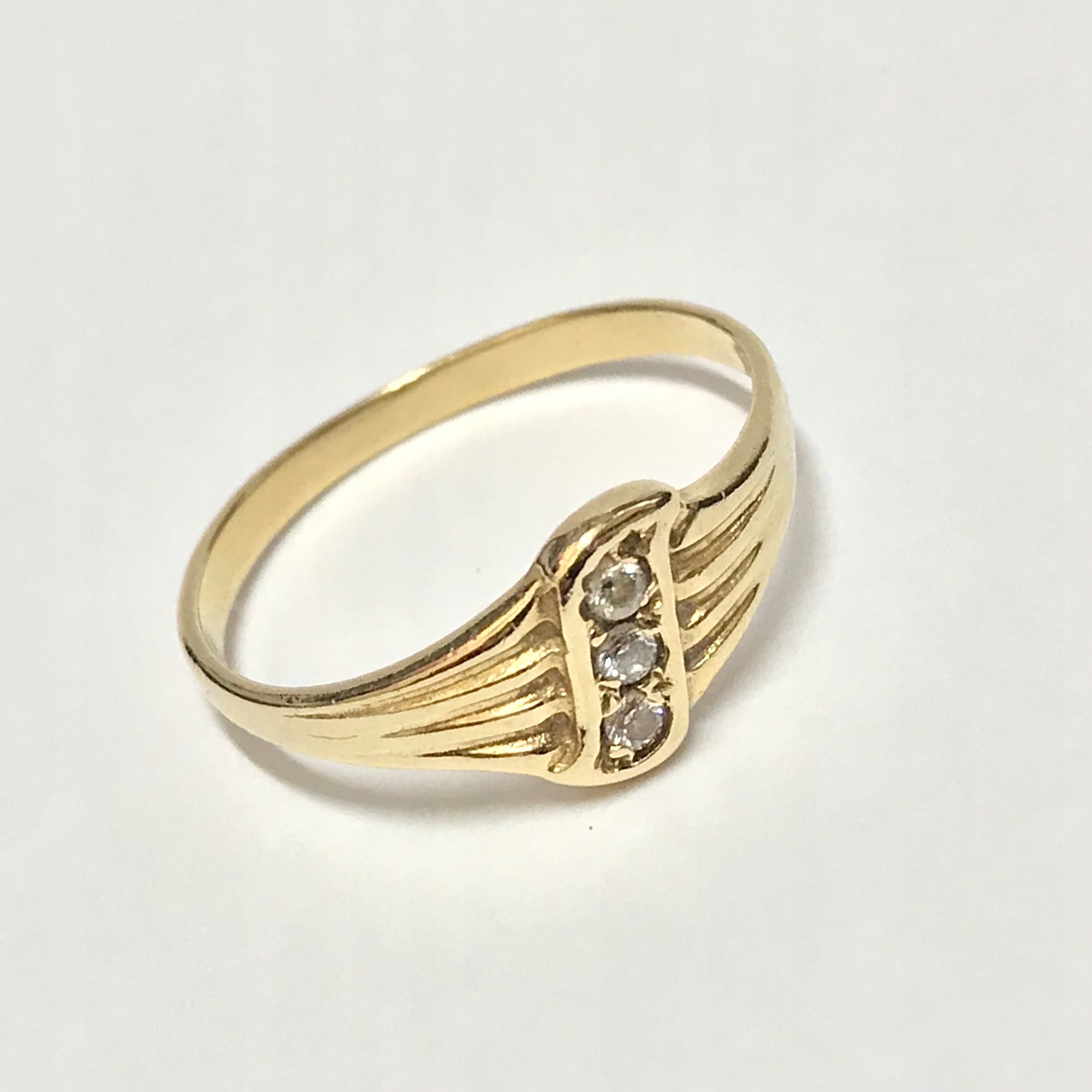 - Piękny pierścionek wykonany z żółtego 14-karatowego złota.