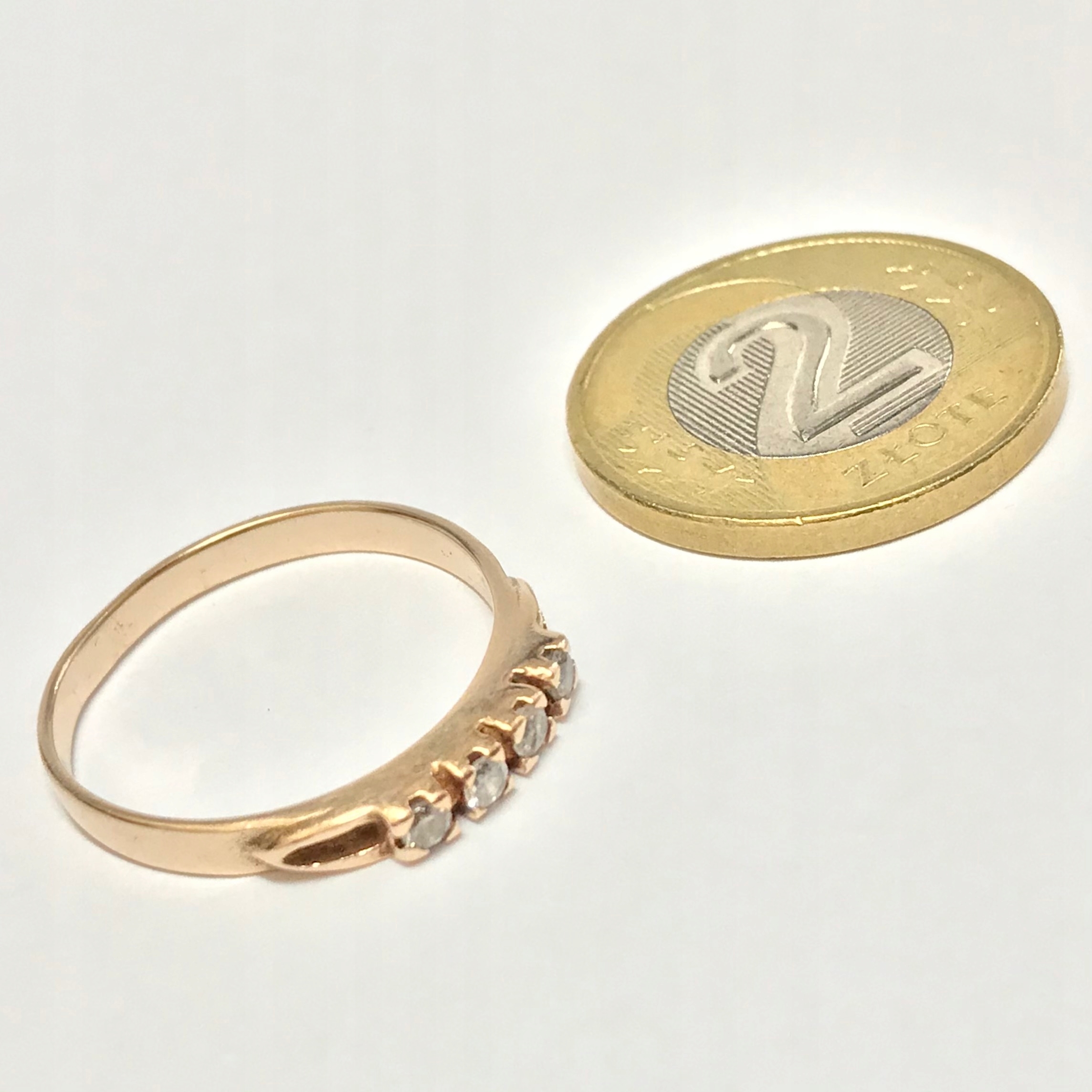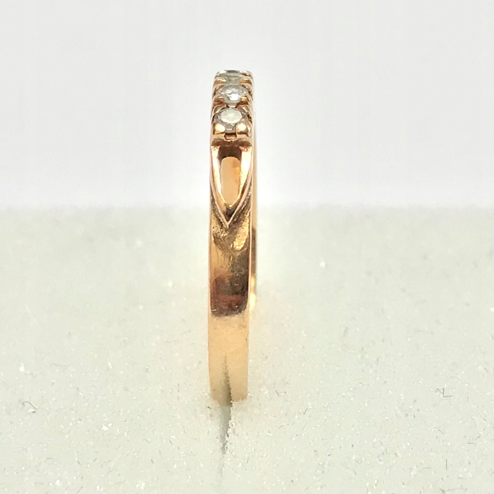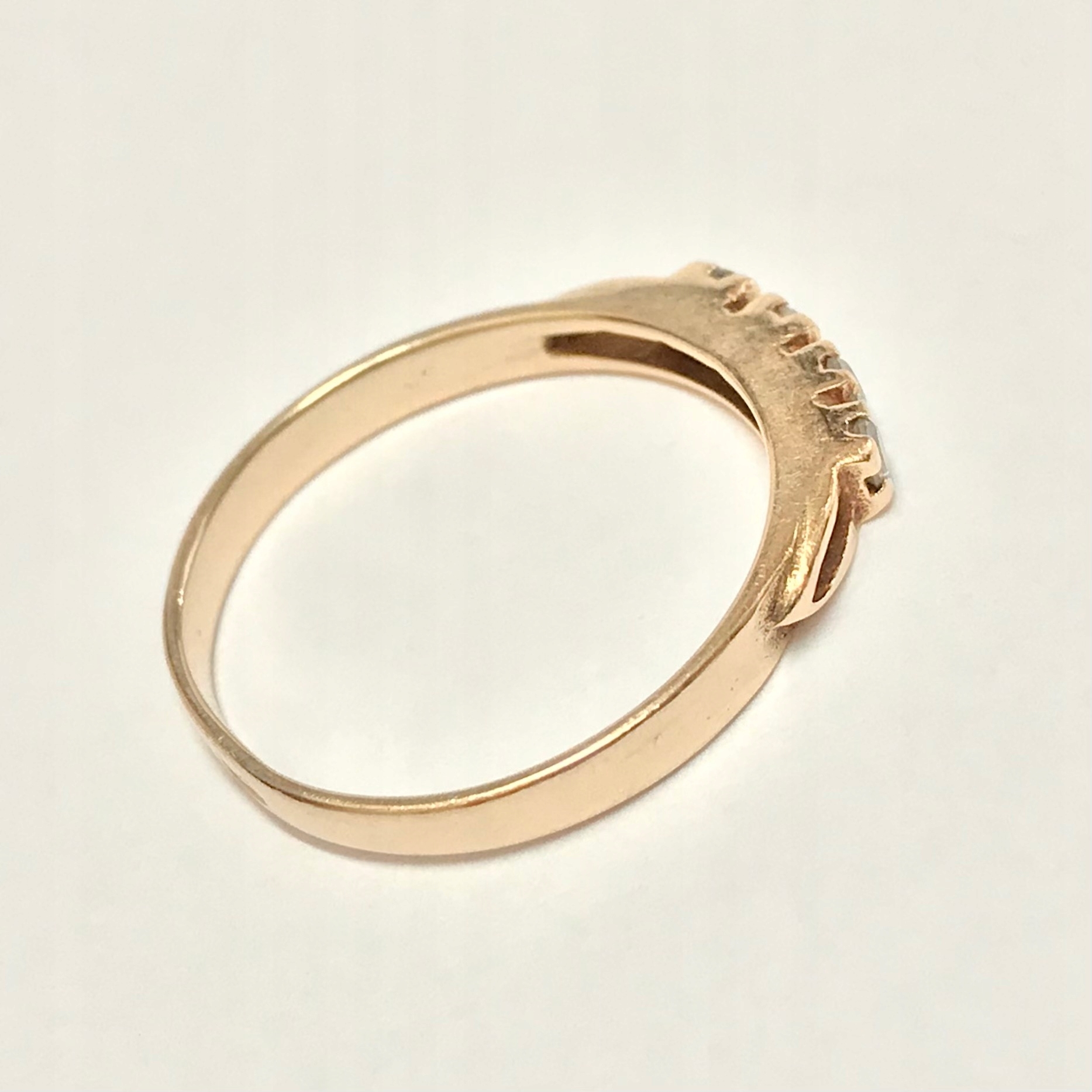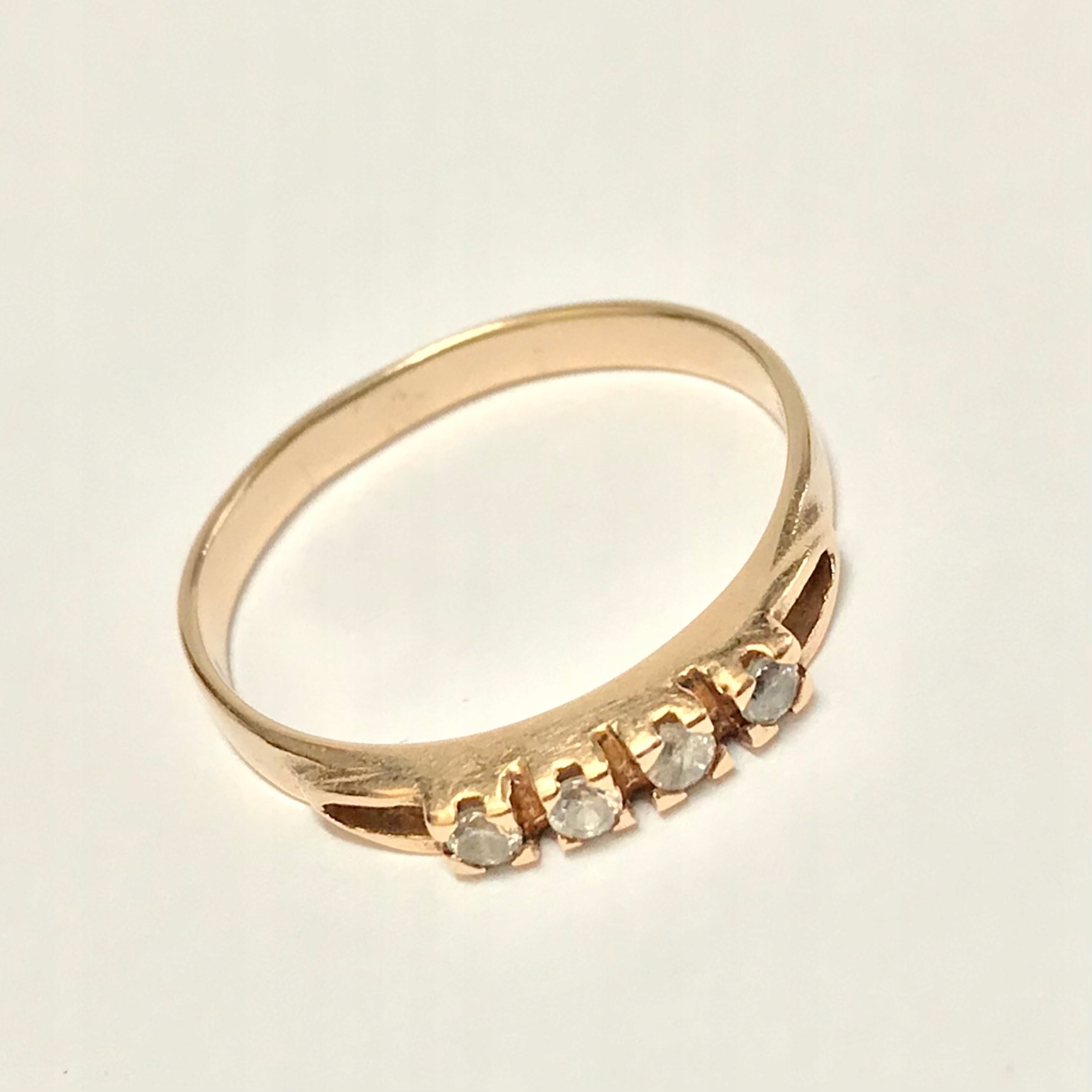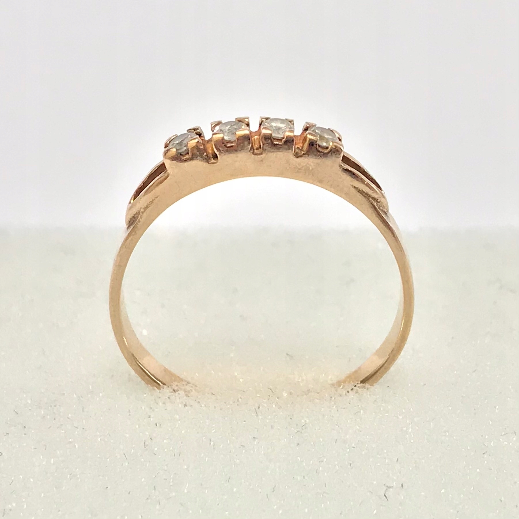 - Piękny pierścionek wykonany z różowego 14-karatowego złota.