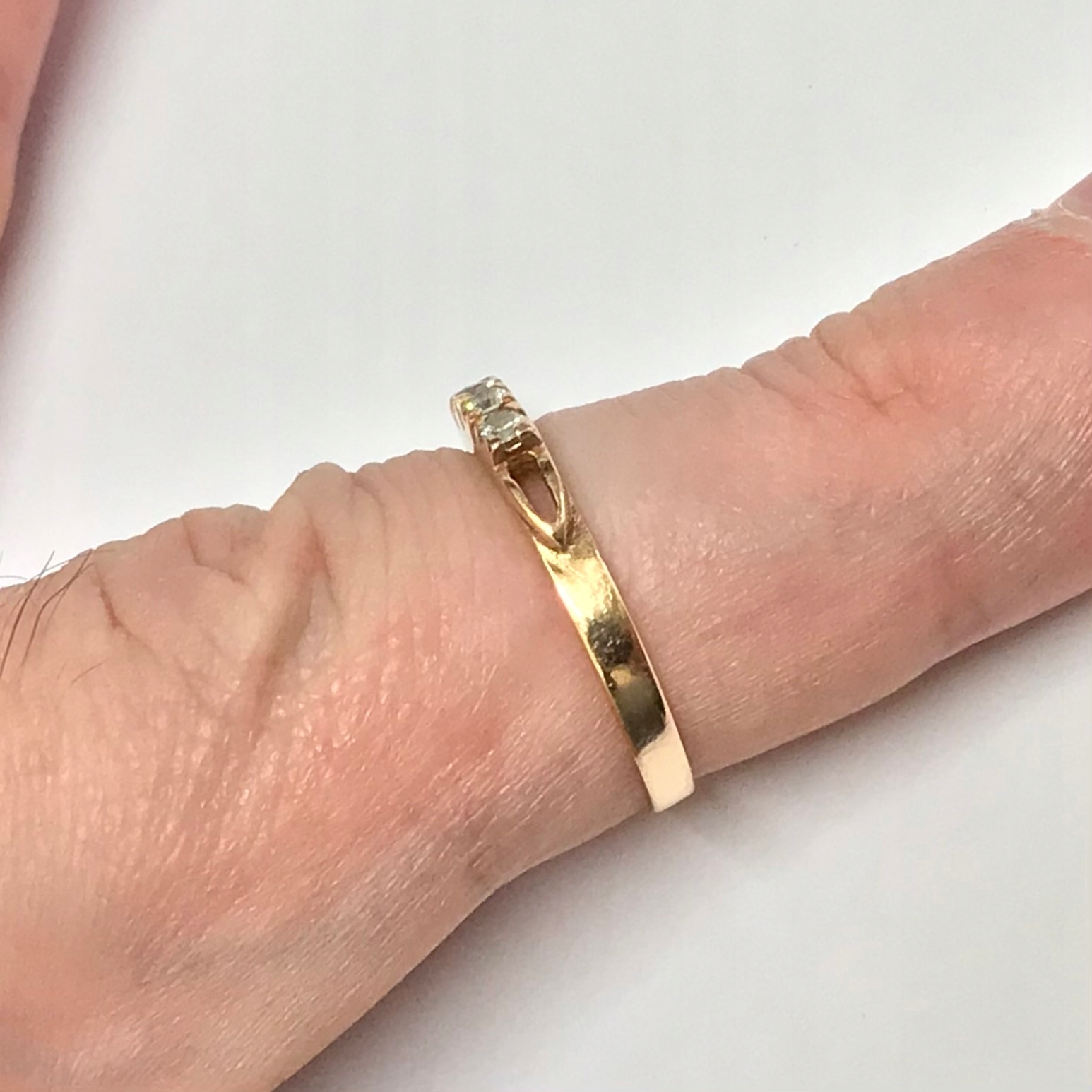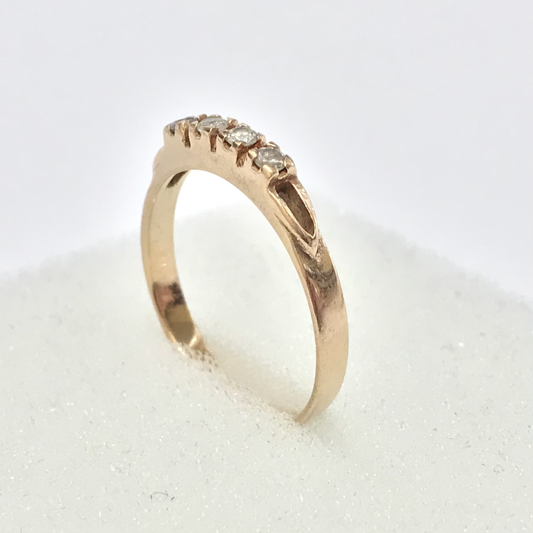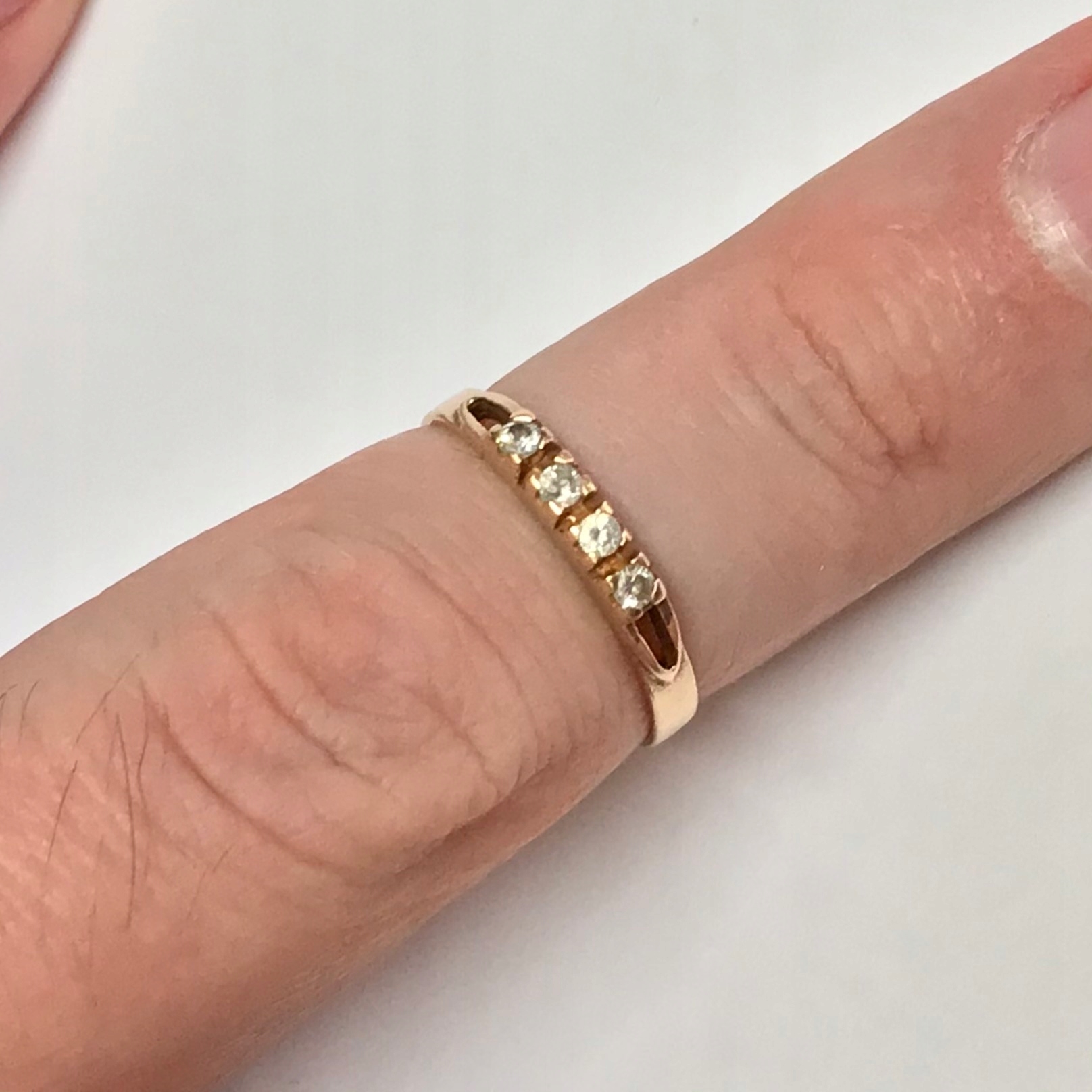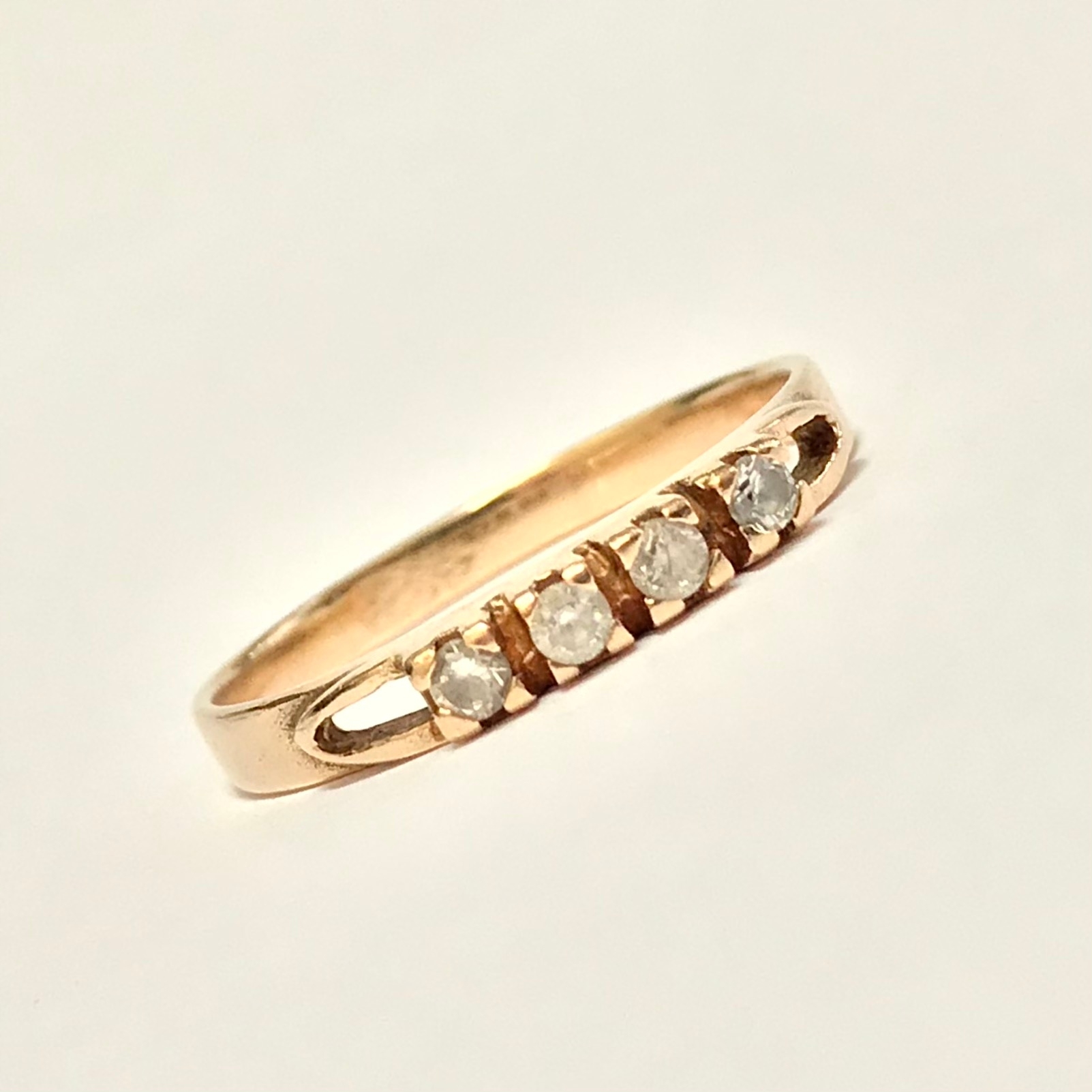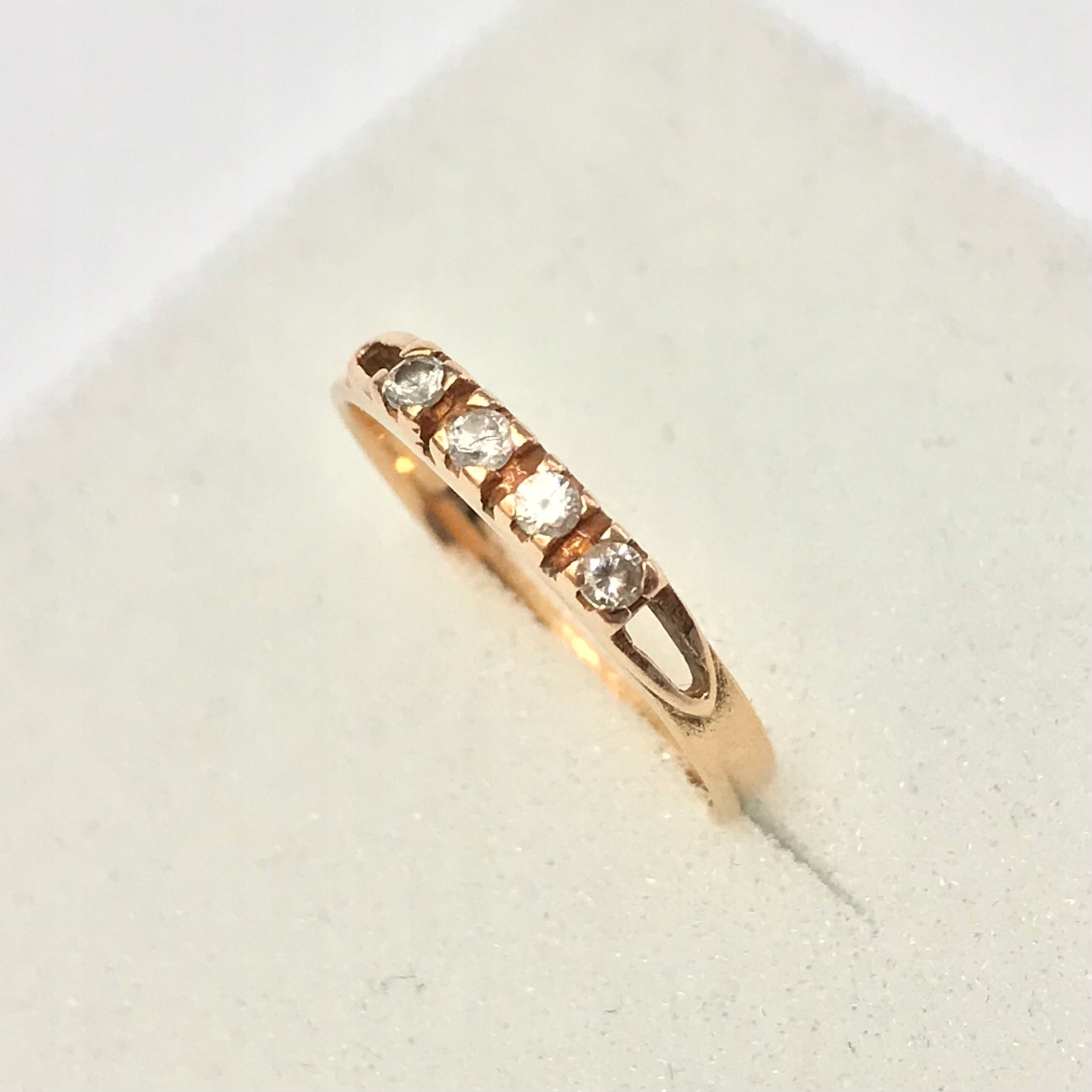 - Piękny pierścionek wykonany z różowego 14-karatowego złota.