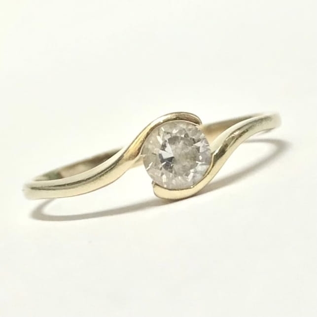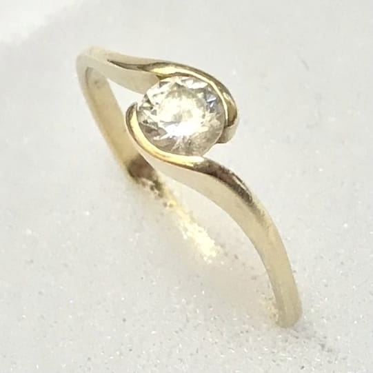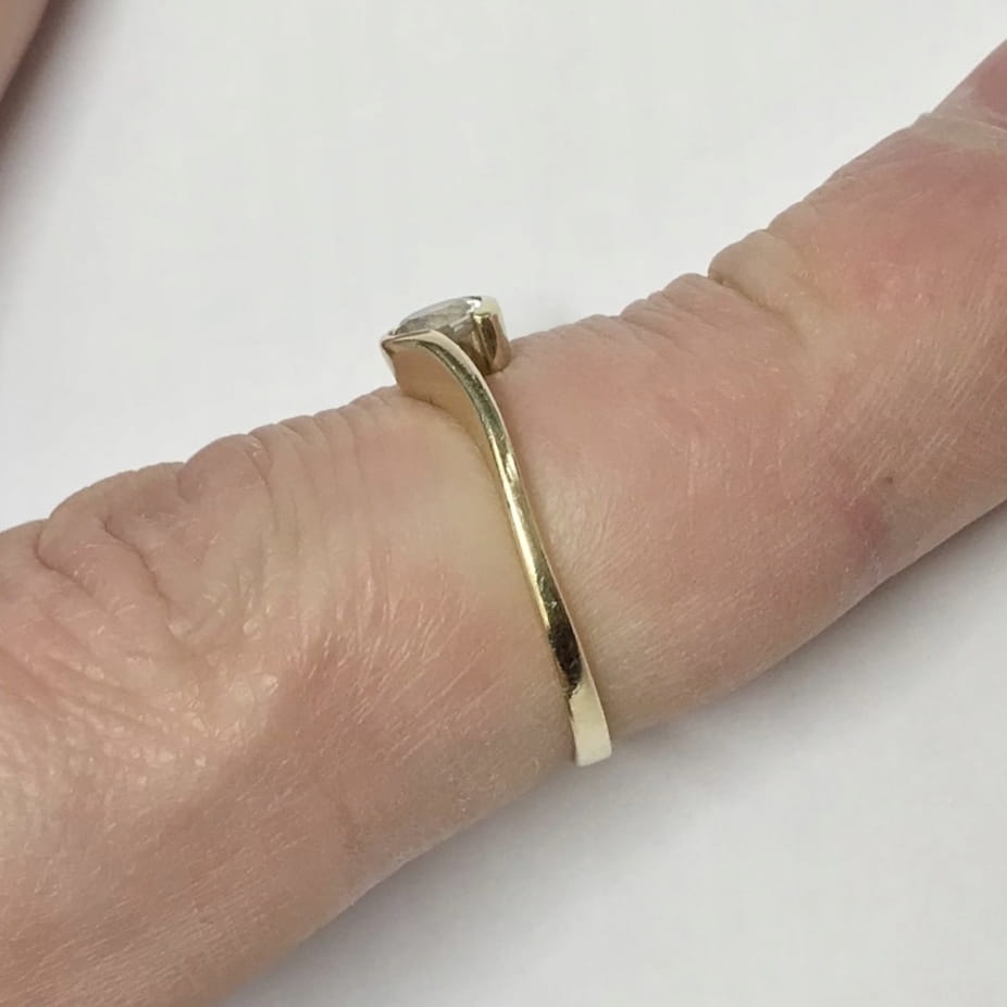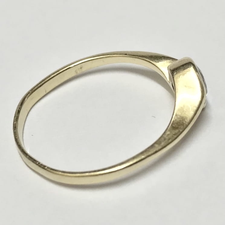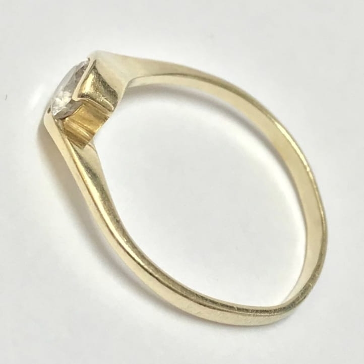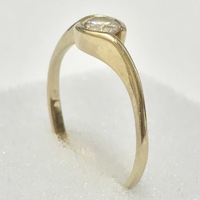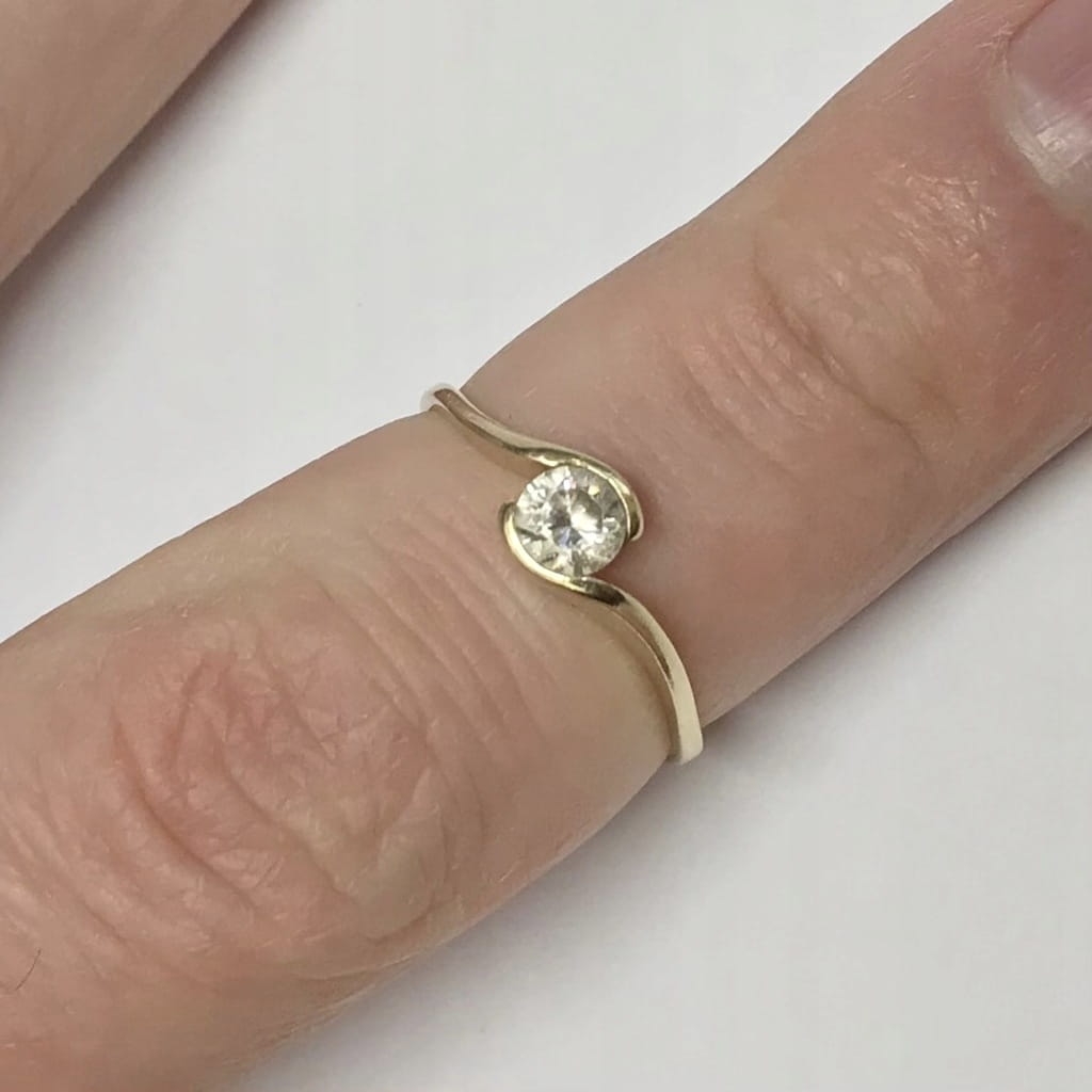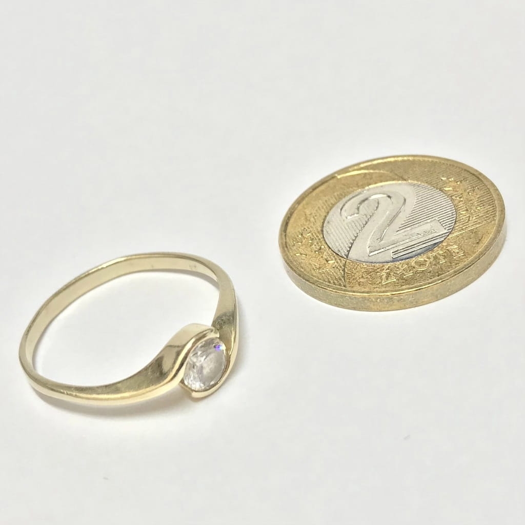 - Piękny pierścionek wykonany z żółtego 14-karatowego złota.