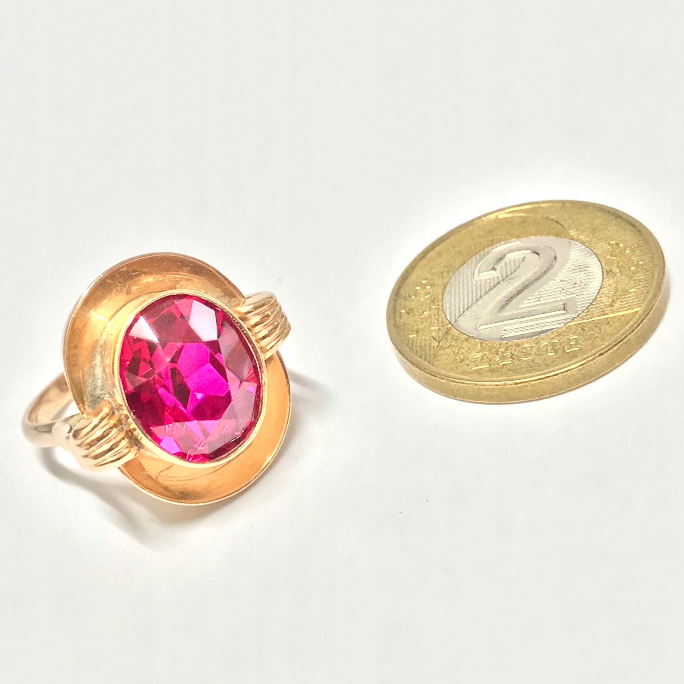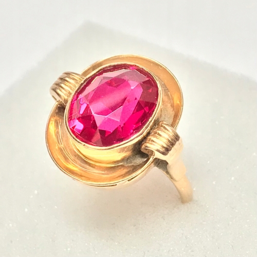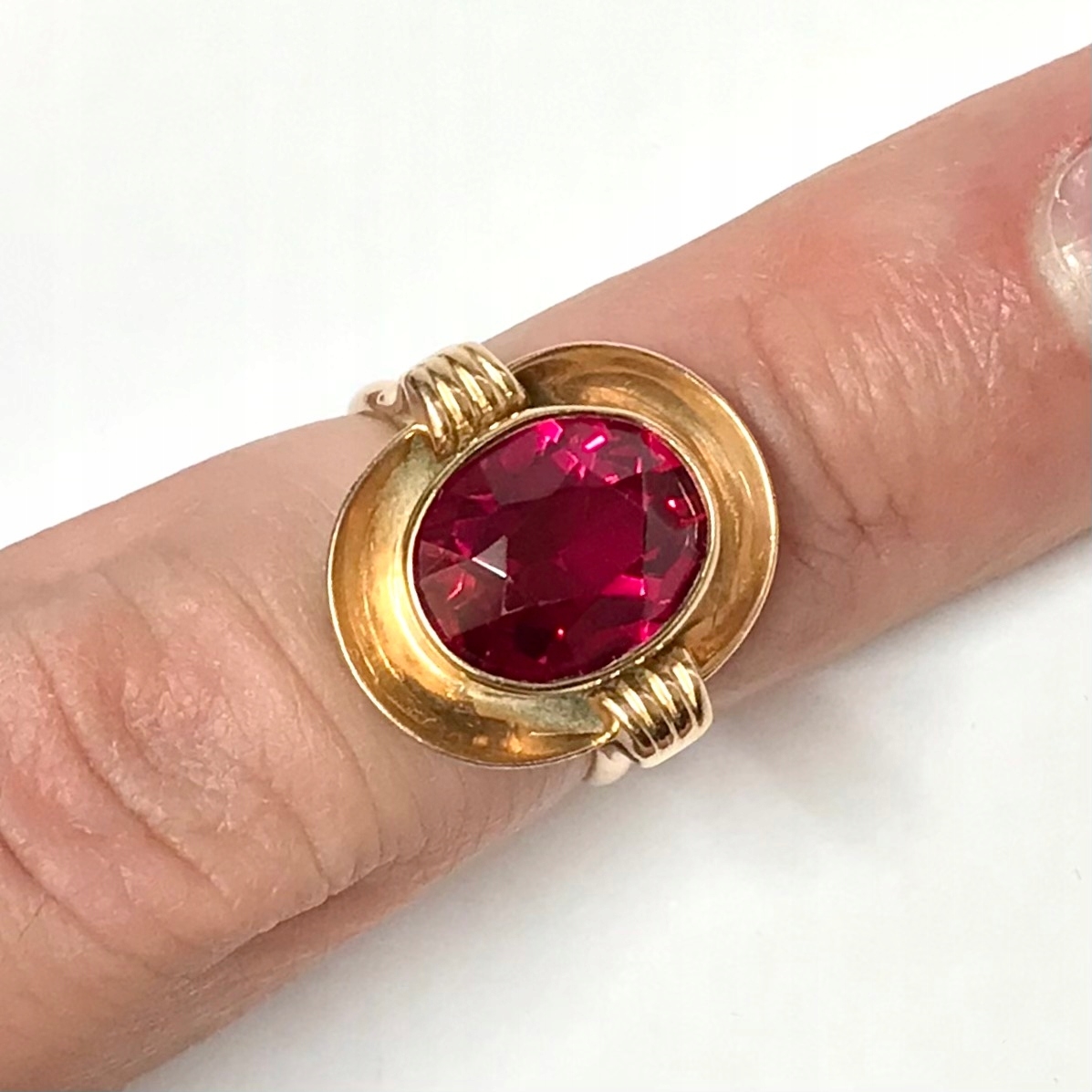 Złoty PIERŚCIONEK 14K cudowny RUBIN czerwony r. 14
