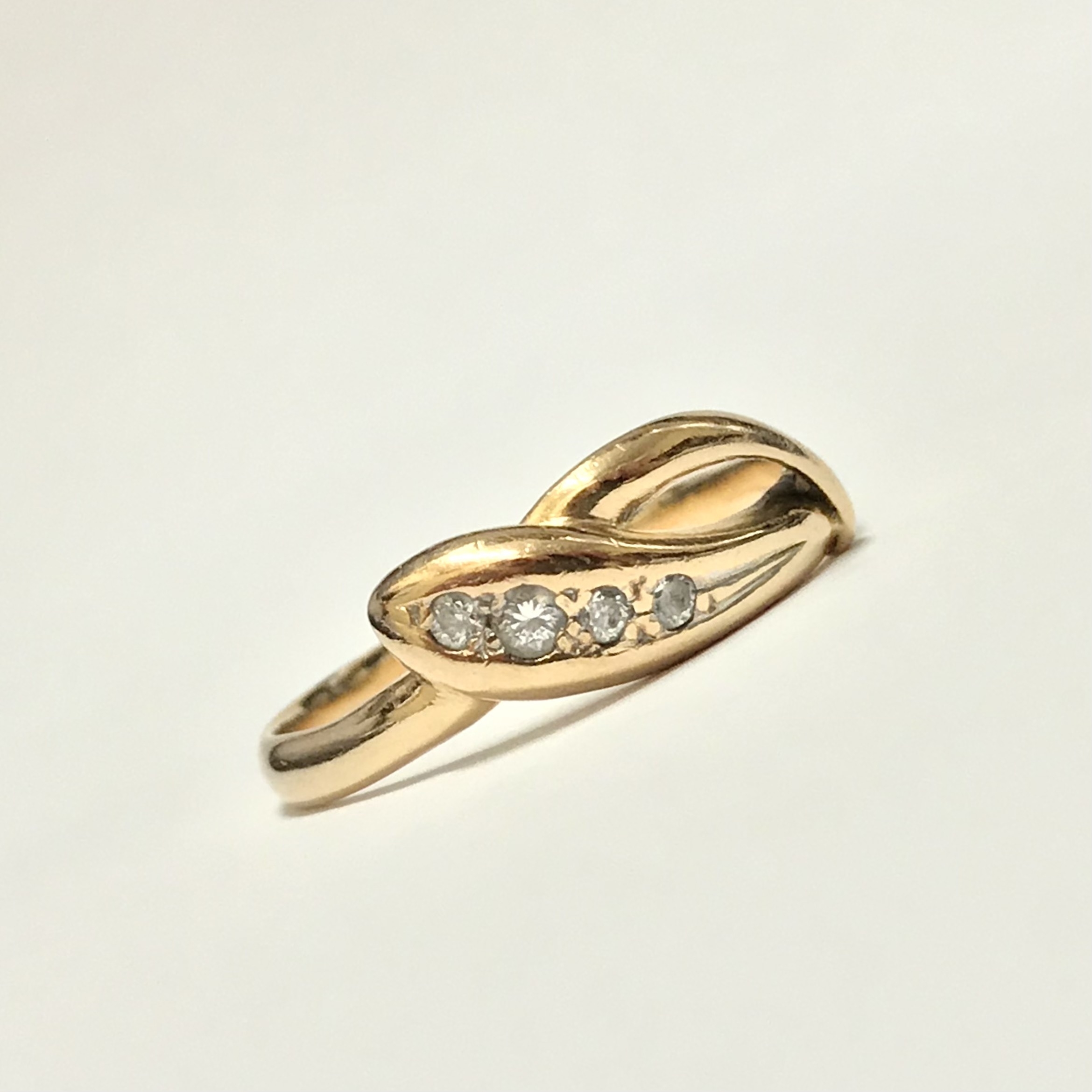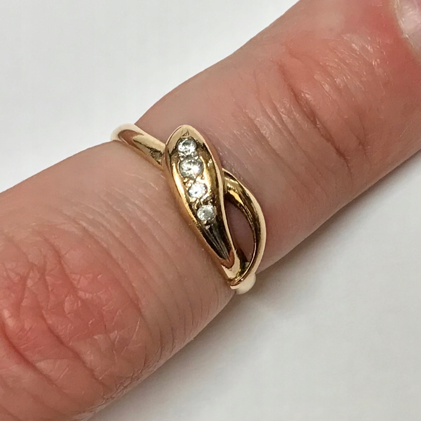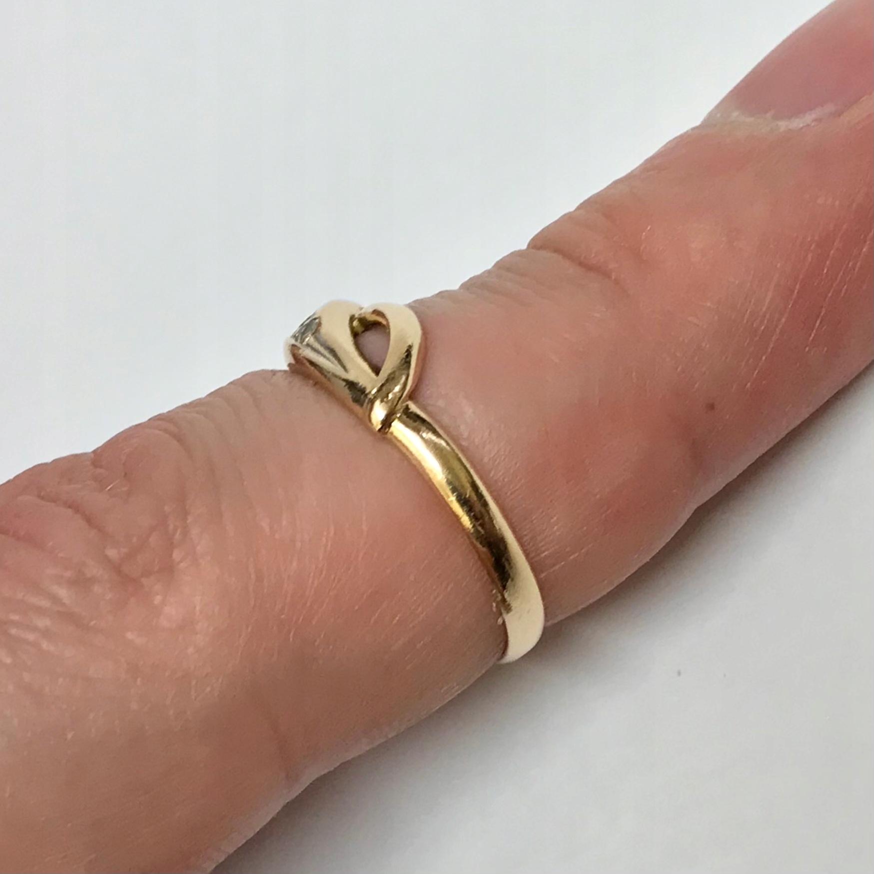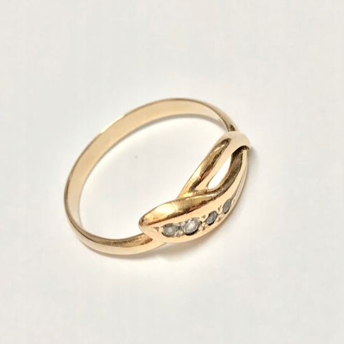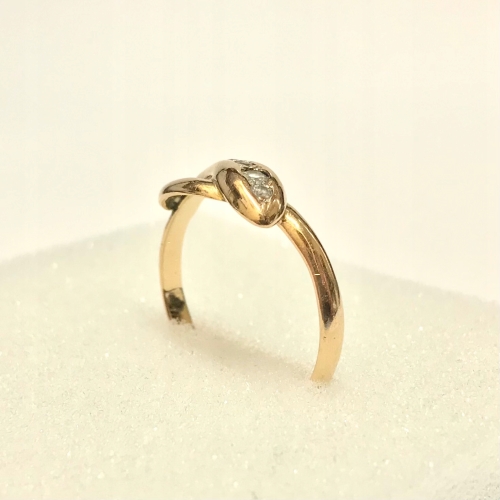- Piękny pierścionek wykonany z żółtego 14-karatowego złota.