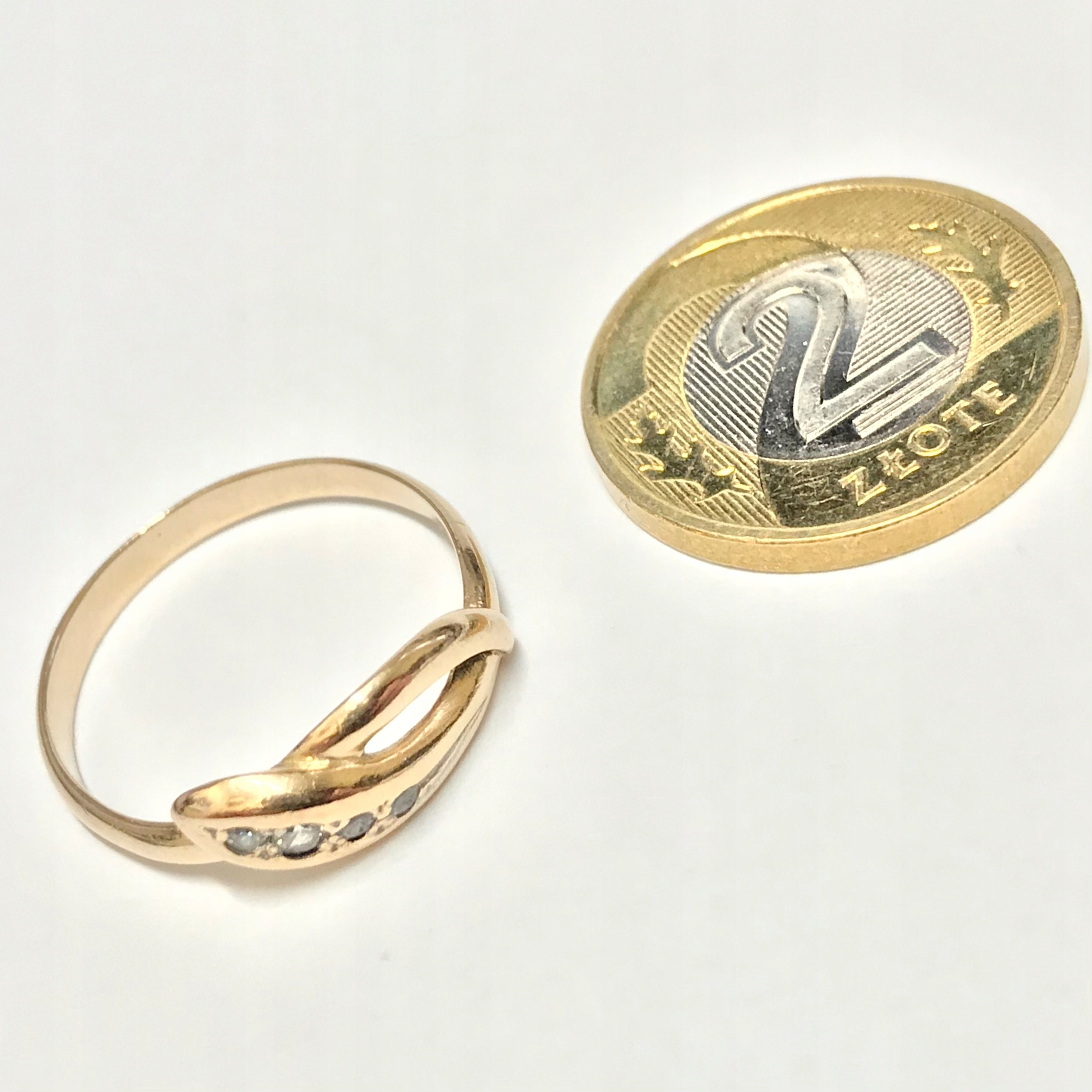 Złoty PIERŚCIONEK 14K cudowny WZÓR KAMIENIE r. 18