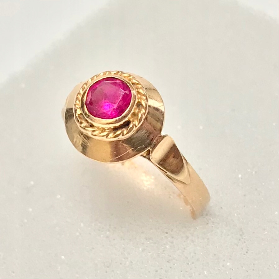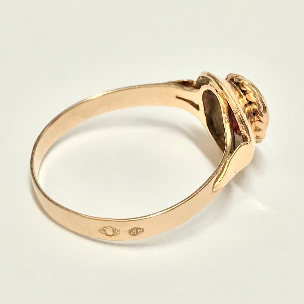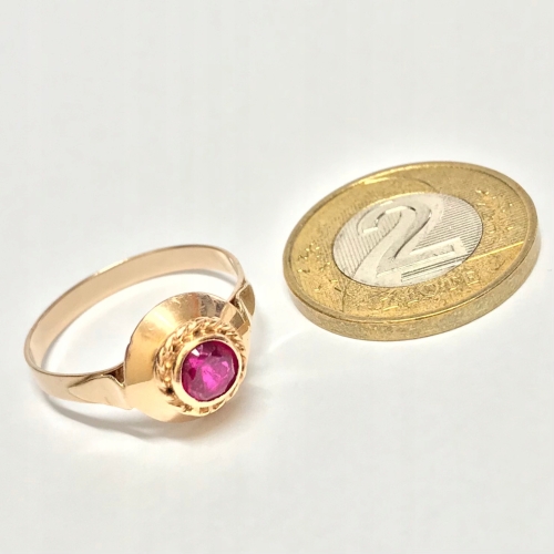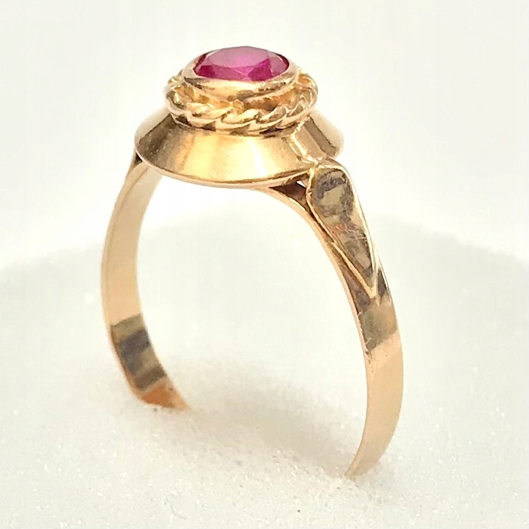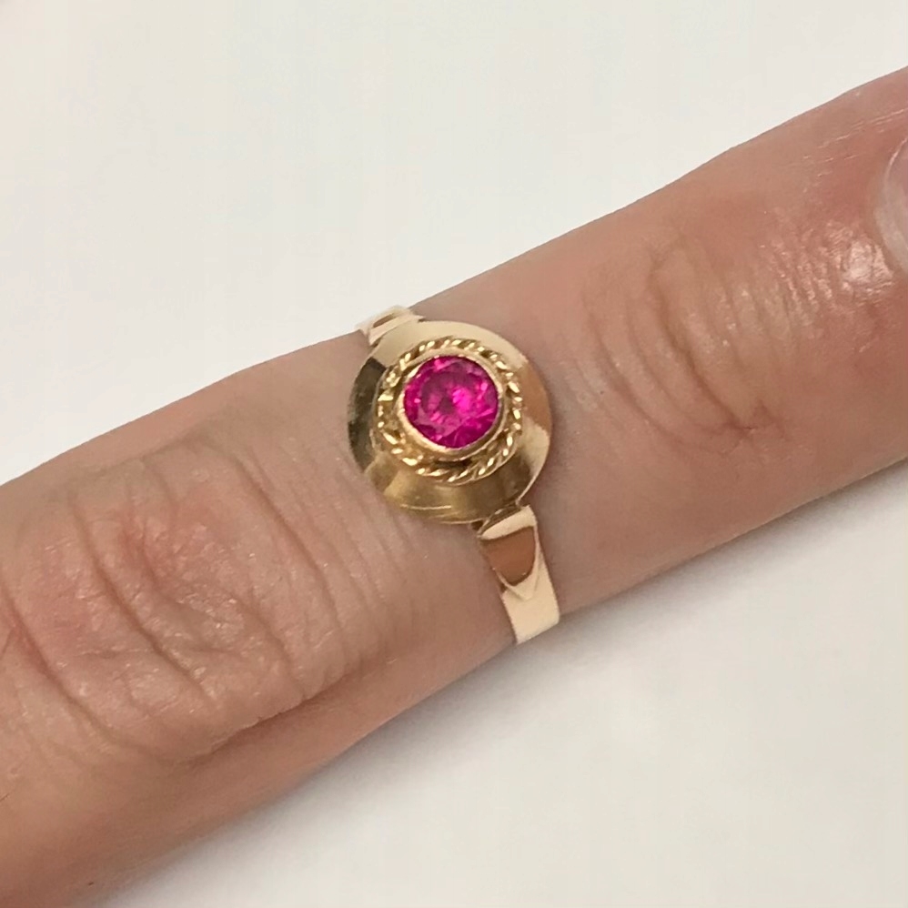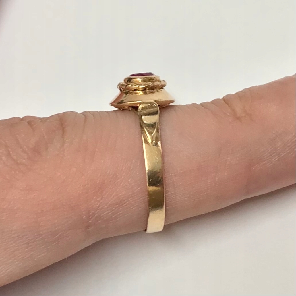 - Piękny pierścionek wykonany z żółtego 14-karatowego złota.