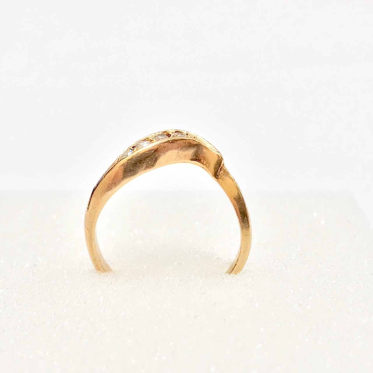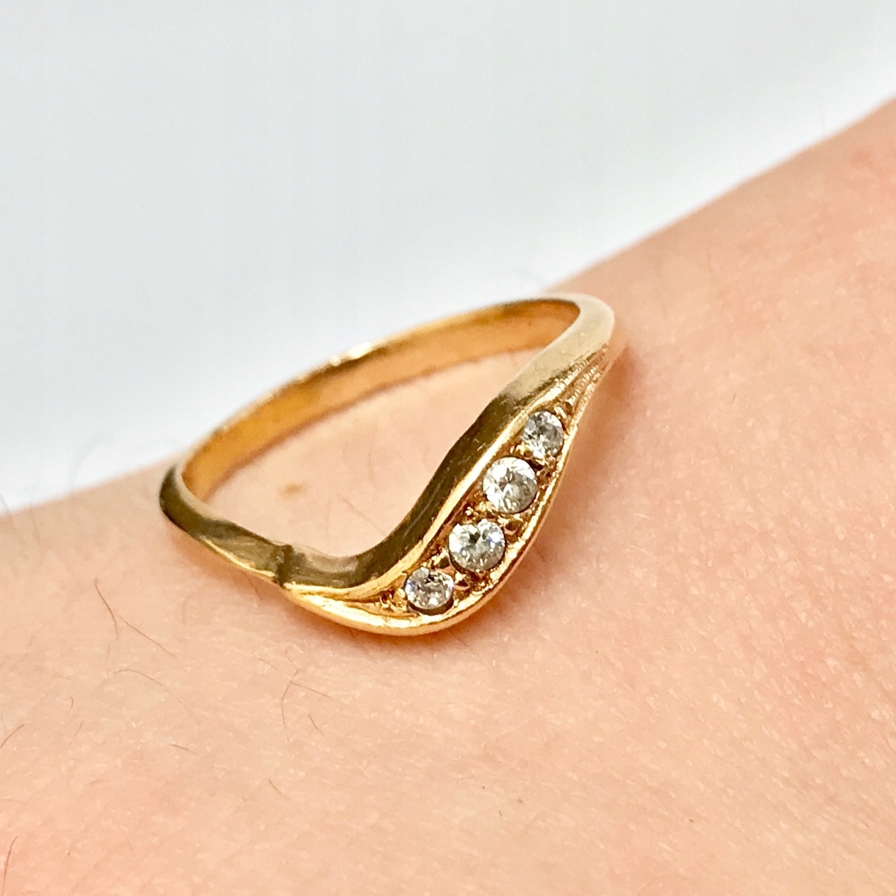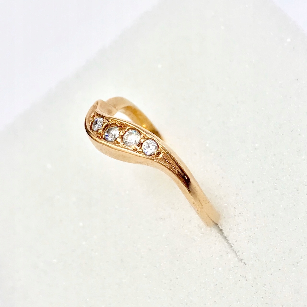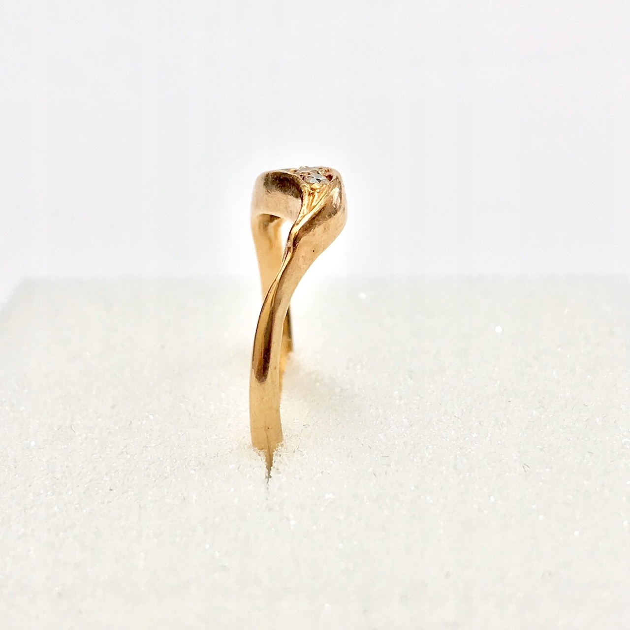 - Piękny pierścionek wykonany z żółtego 14-karatowego złota.