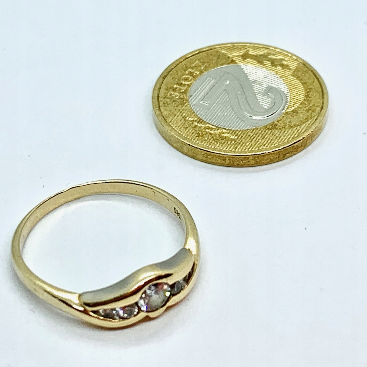 Złoty PIERŚCIONEK 14K dla KRÓLEWNY CYRKONIE r. 16
