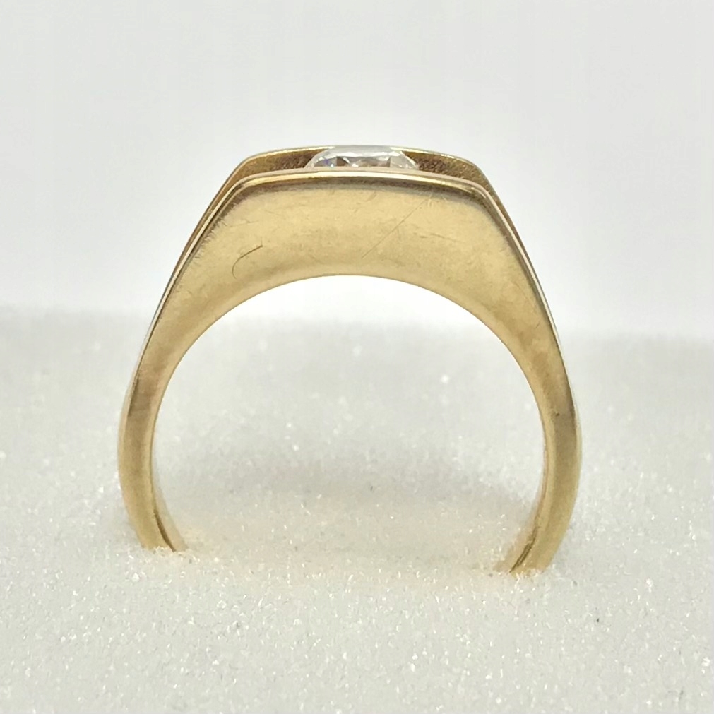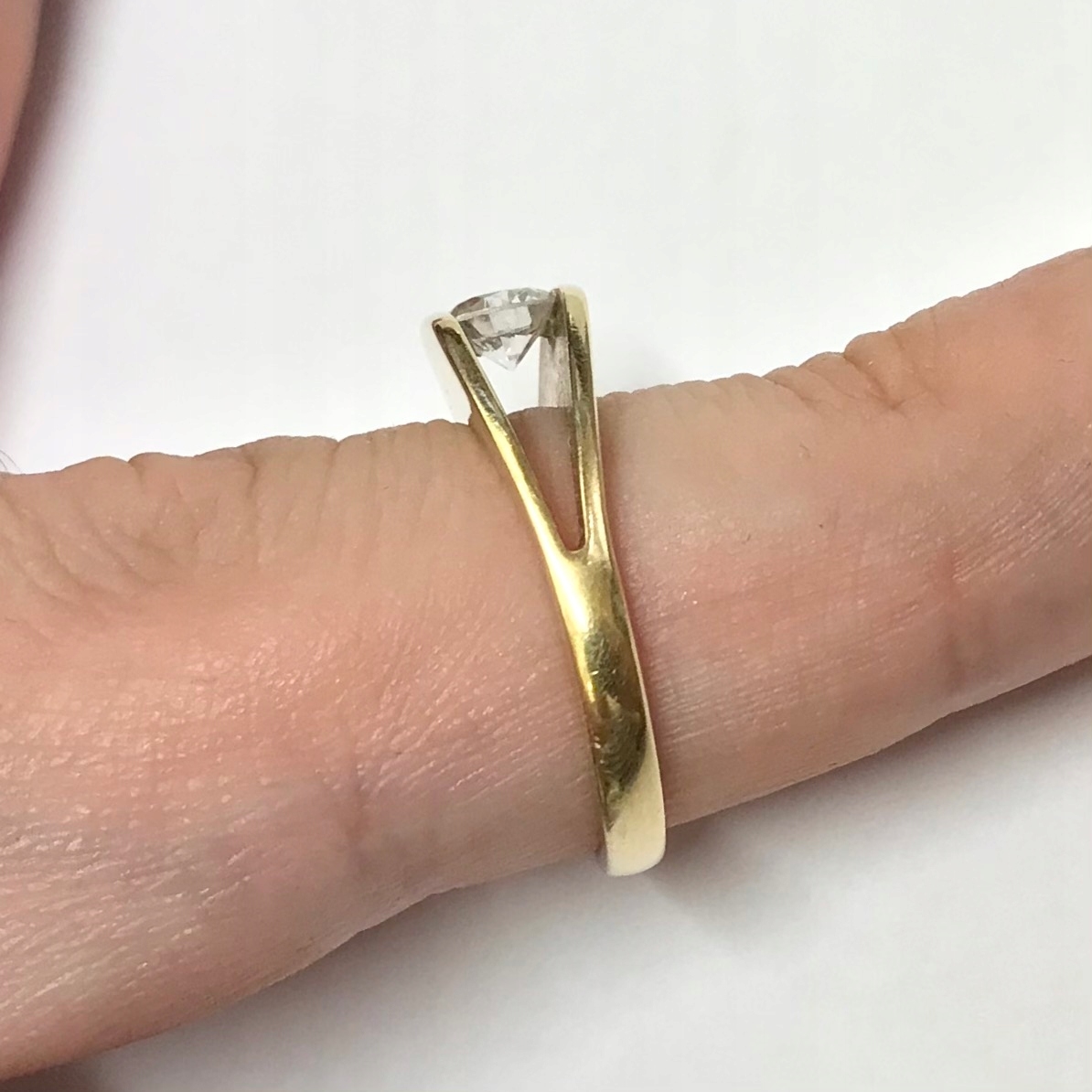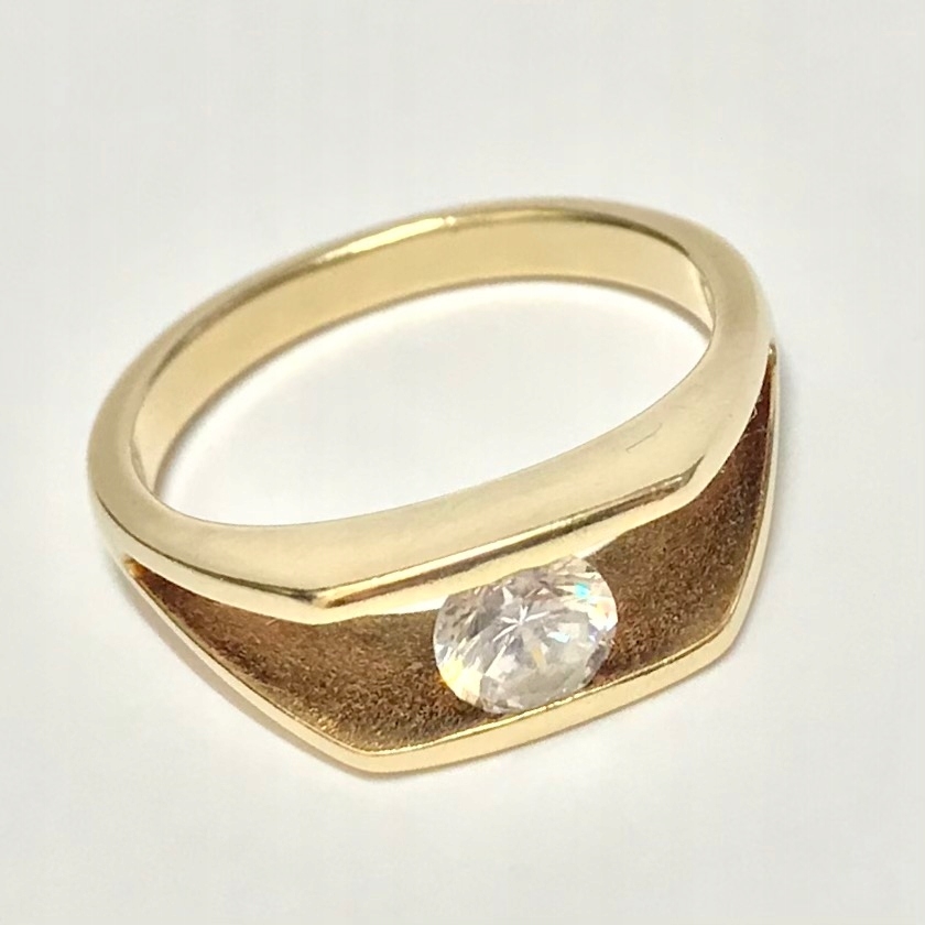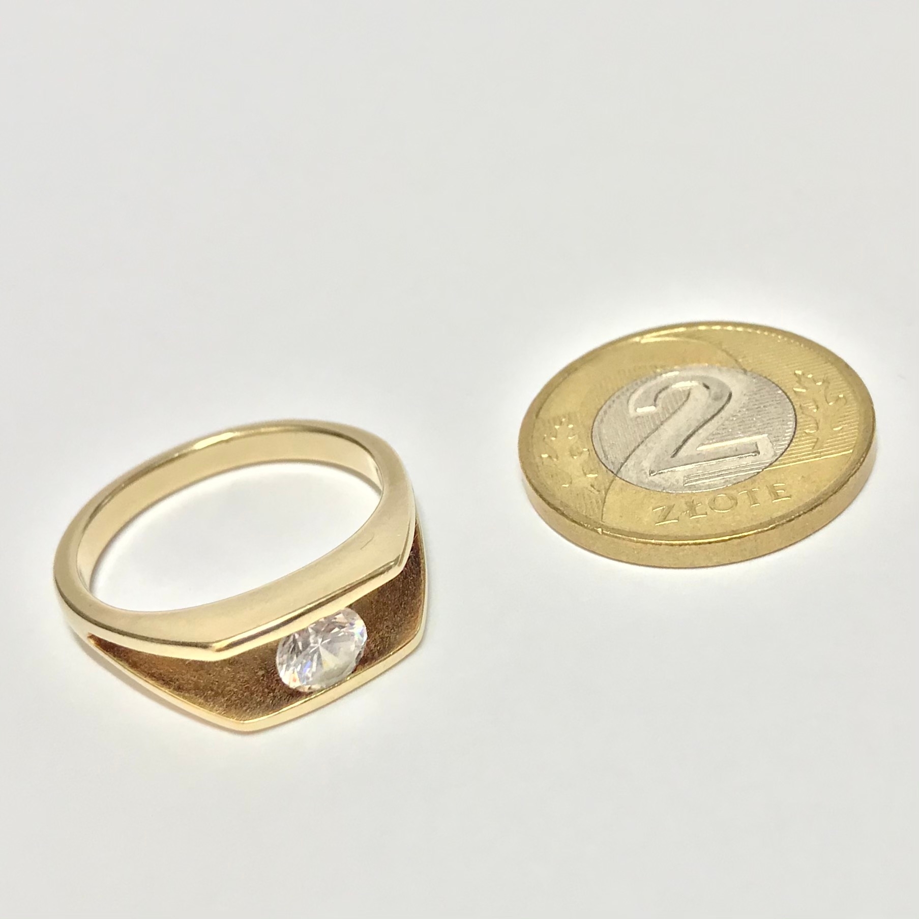 - Piękny pierścionek wykonany z żółtego 14-karatowego złota.