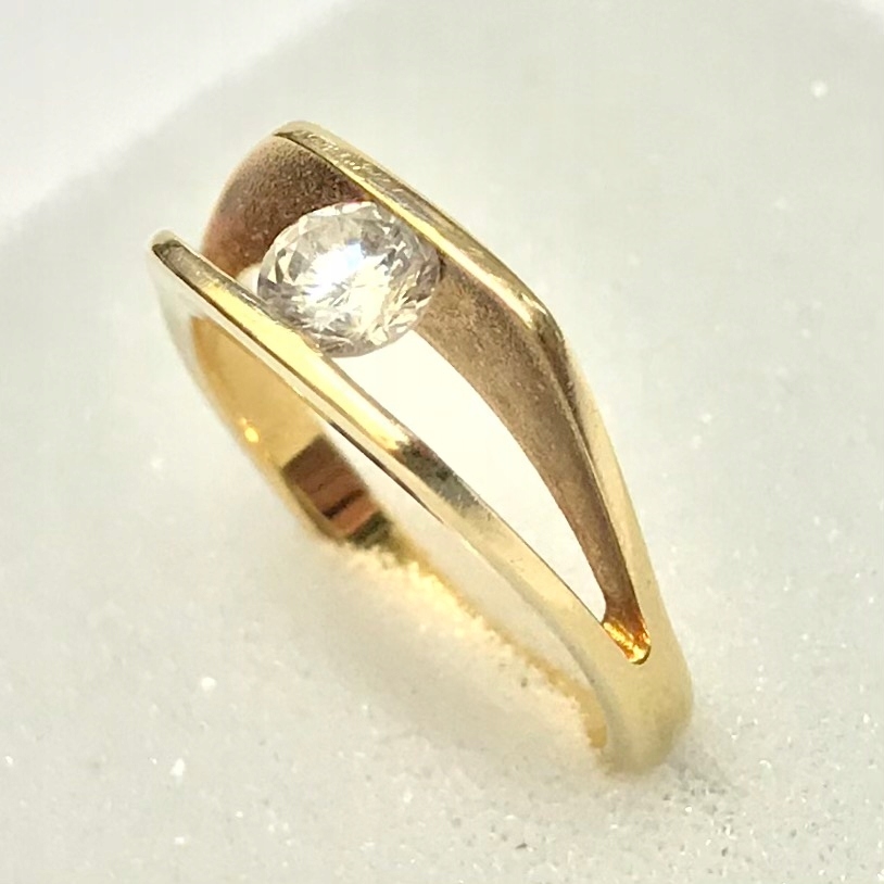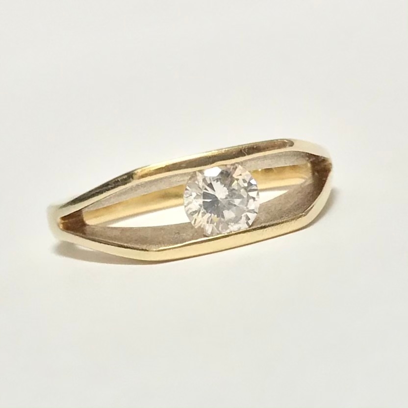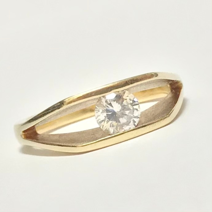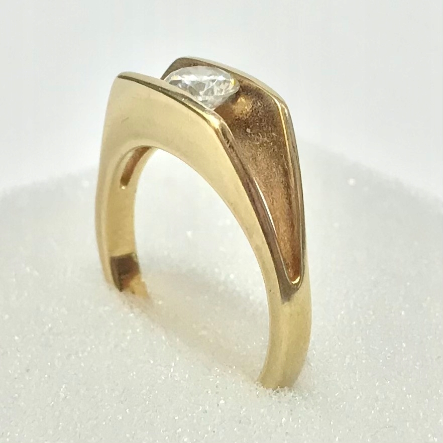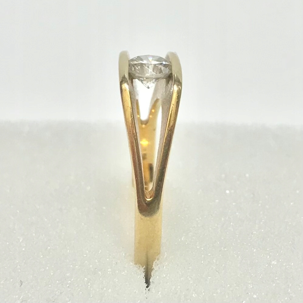 - Piękny pierścionek wykonany z żółtego 14-karatowego złota.
