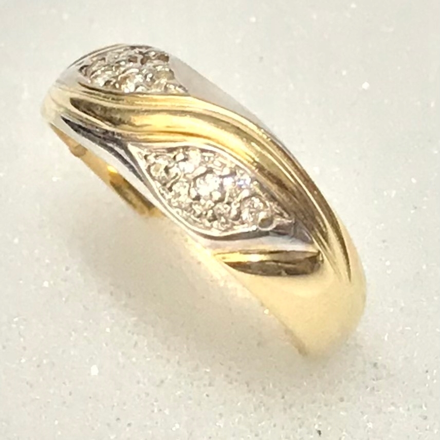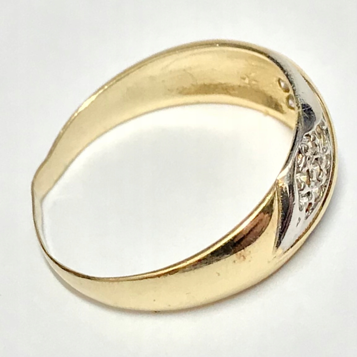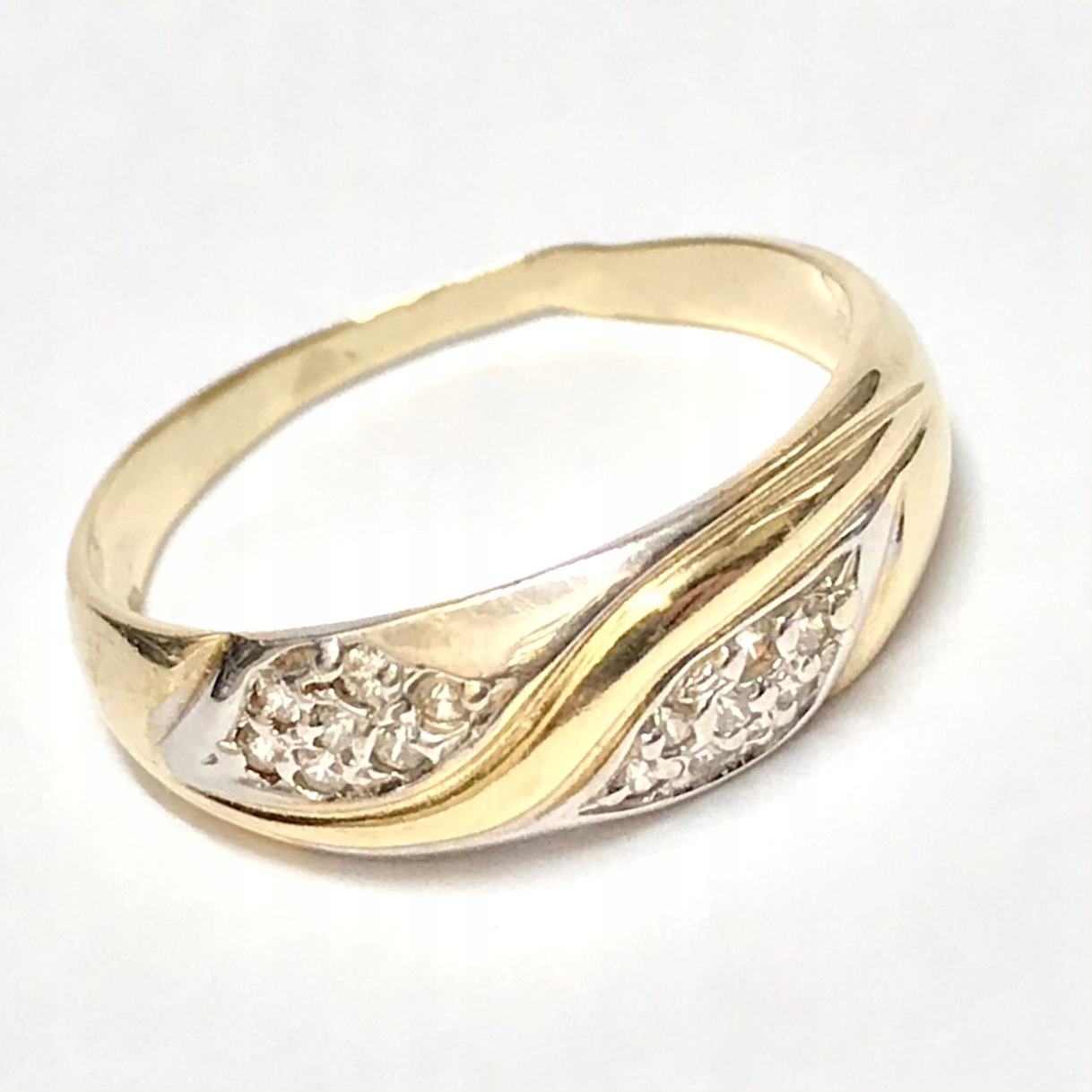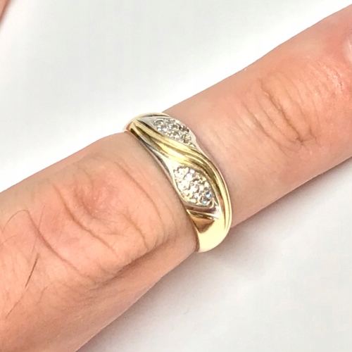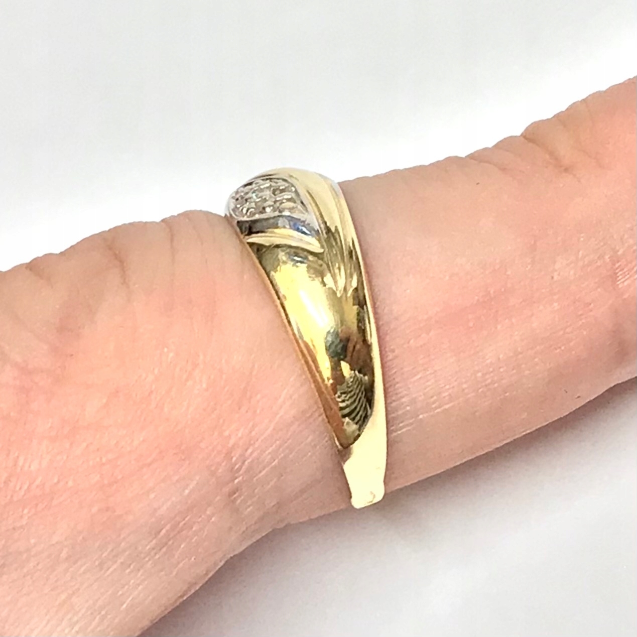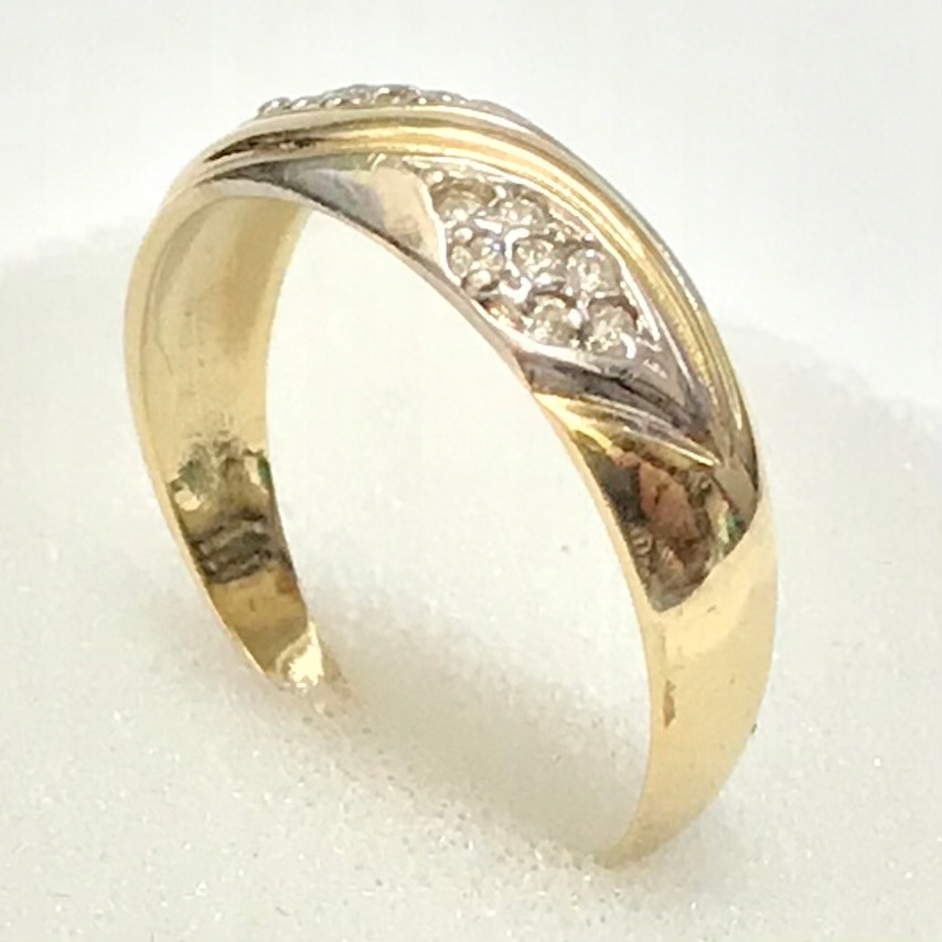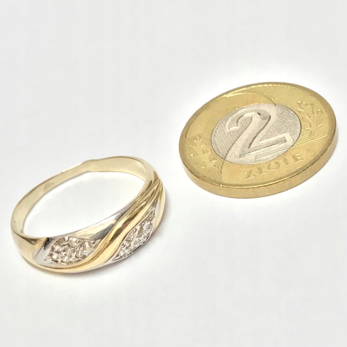 - Piękny pierścionek wykonany z żółtego 14-karatowego złota.