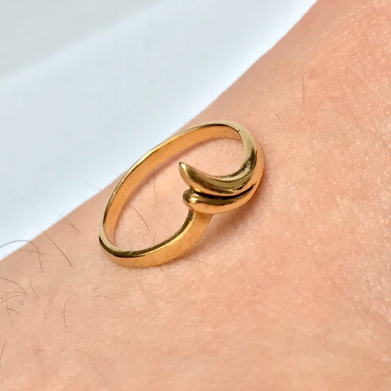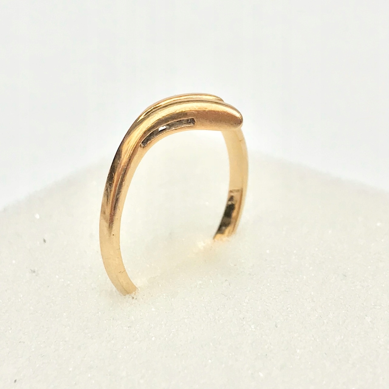 - Piękny pierścionek wykonany z żółtego 14-karatowego złota.