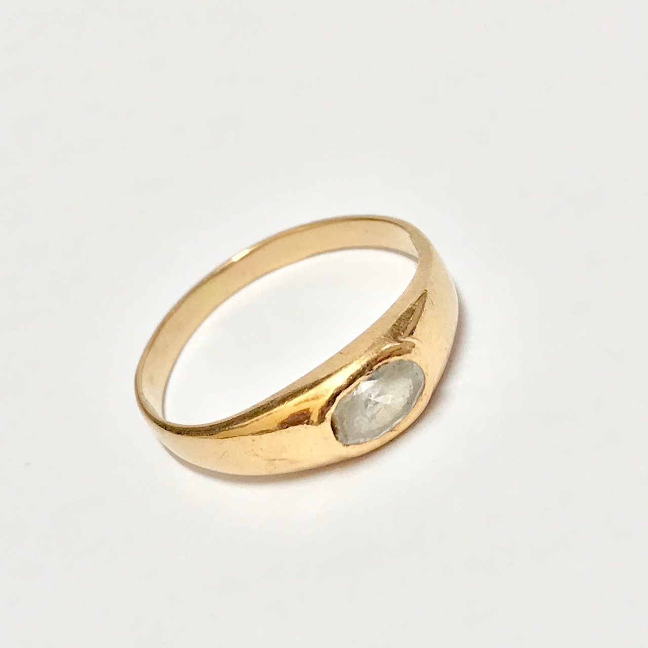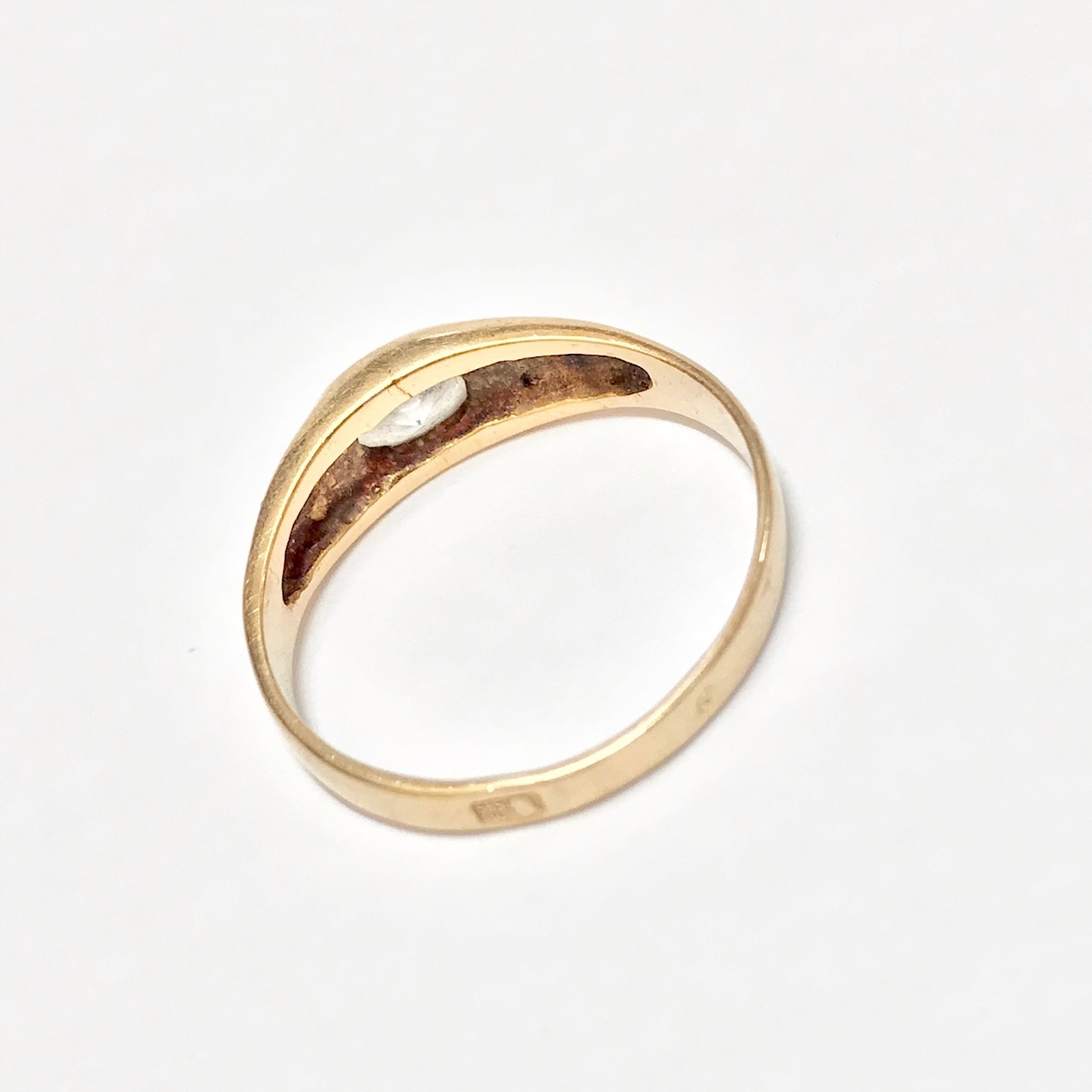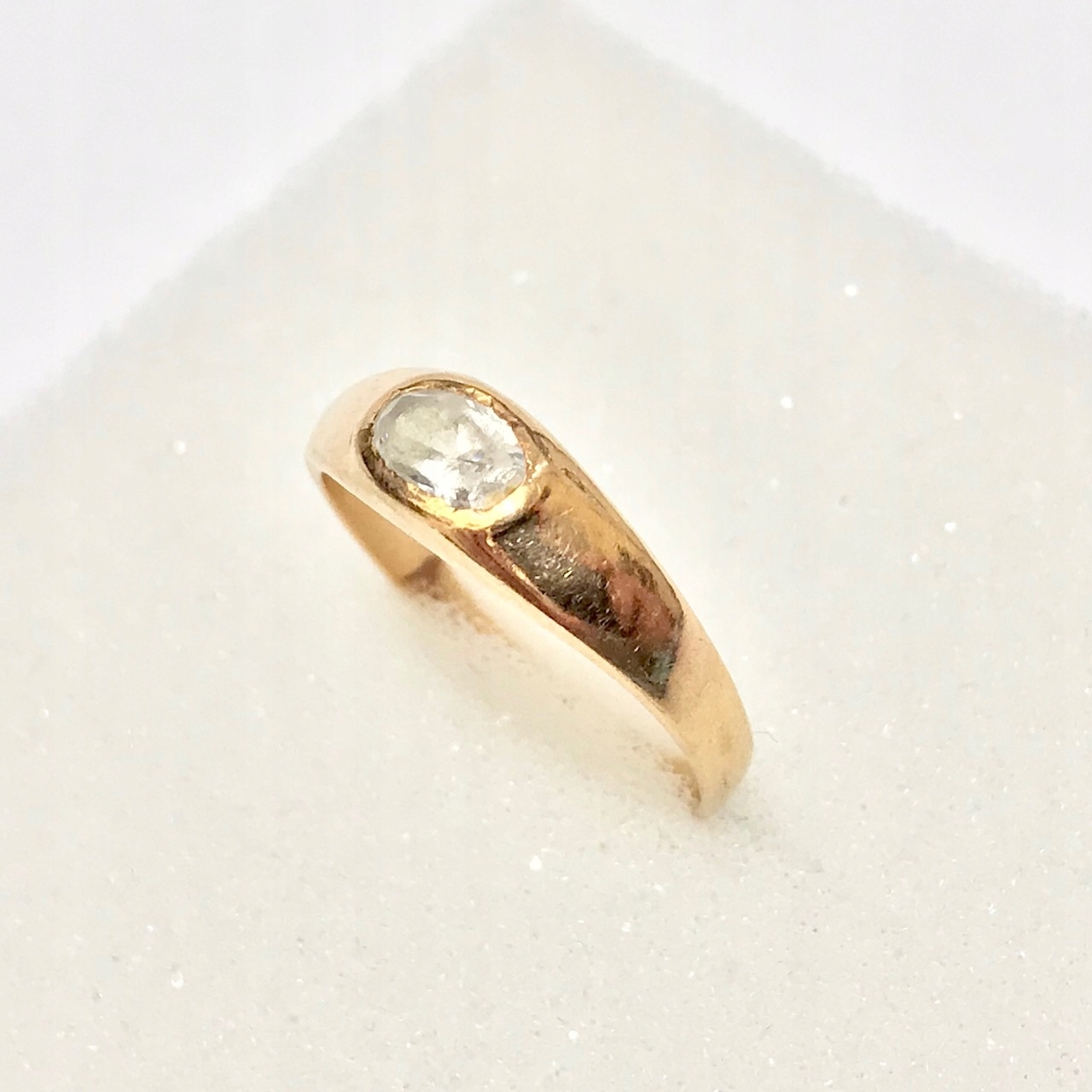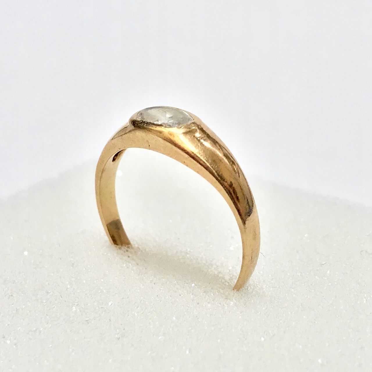 - Piękny pierścionek wykonany z żółtego 14-karatowego złota.
