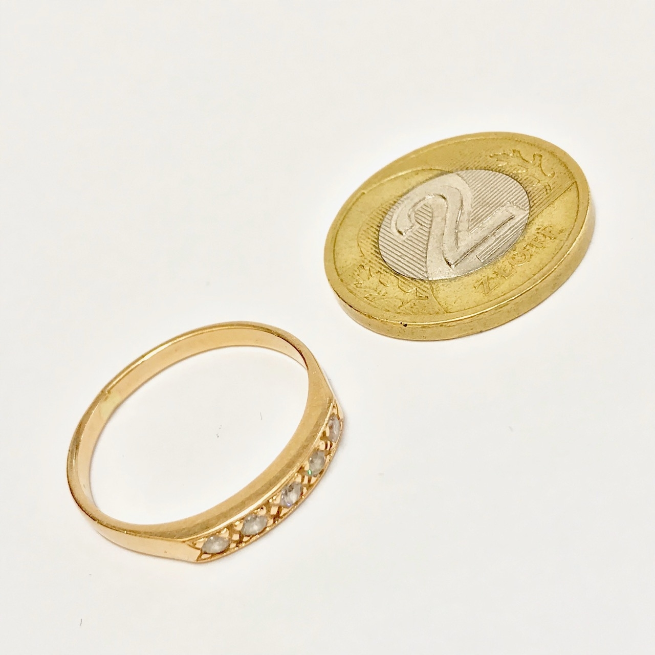 - Piękny pierścionek wykonany z żółtego 14-karatowego złota.