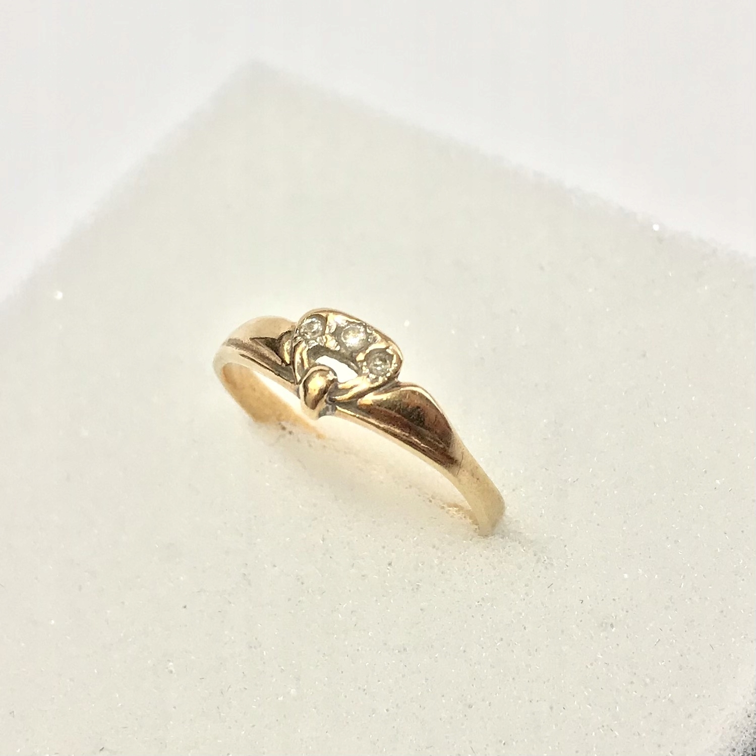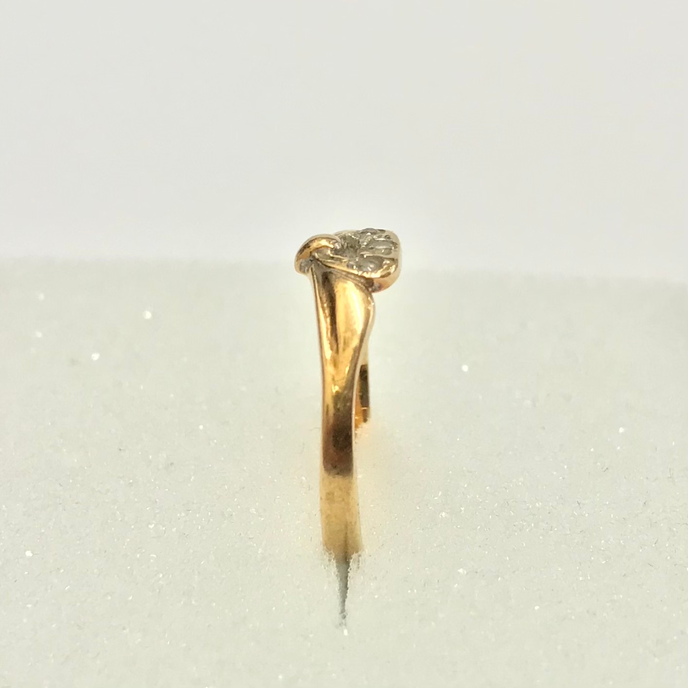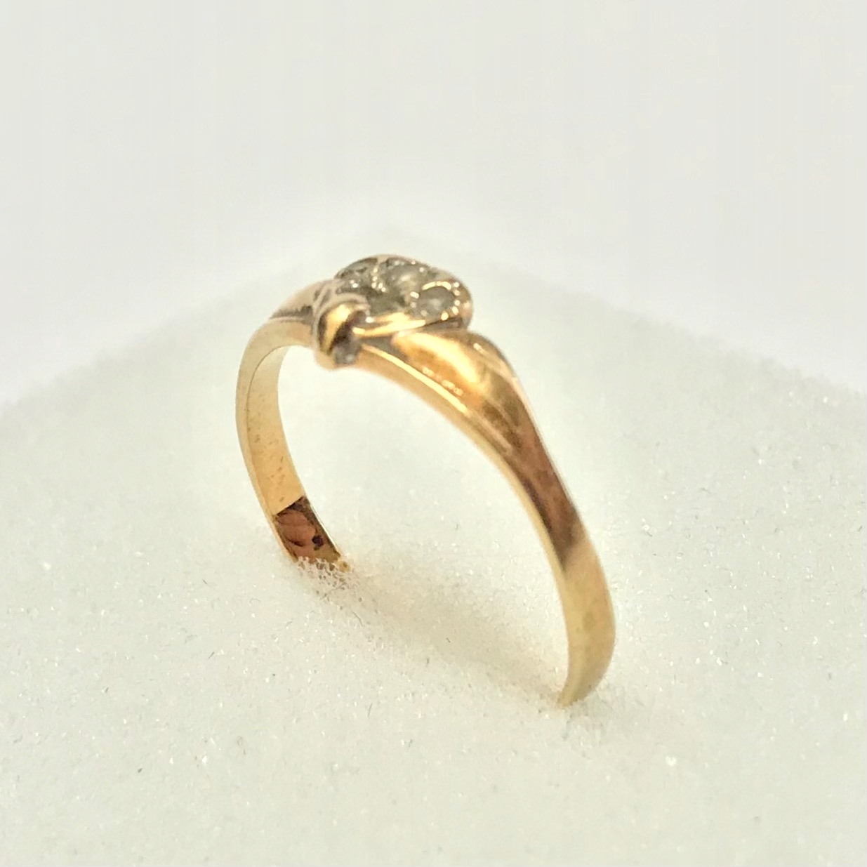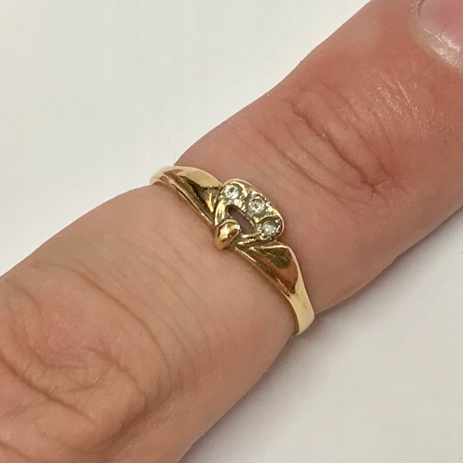 - Piękny pierścionek wykonany z żółtego 14-karatowego złota.
