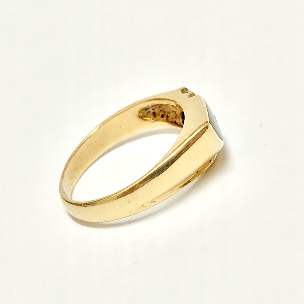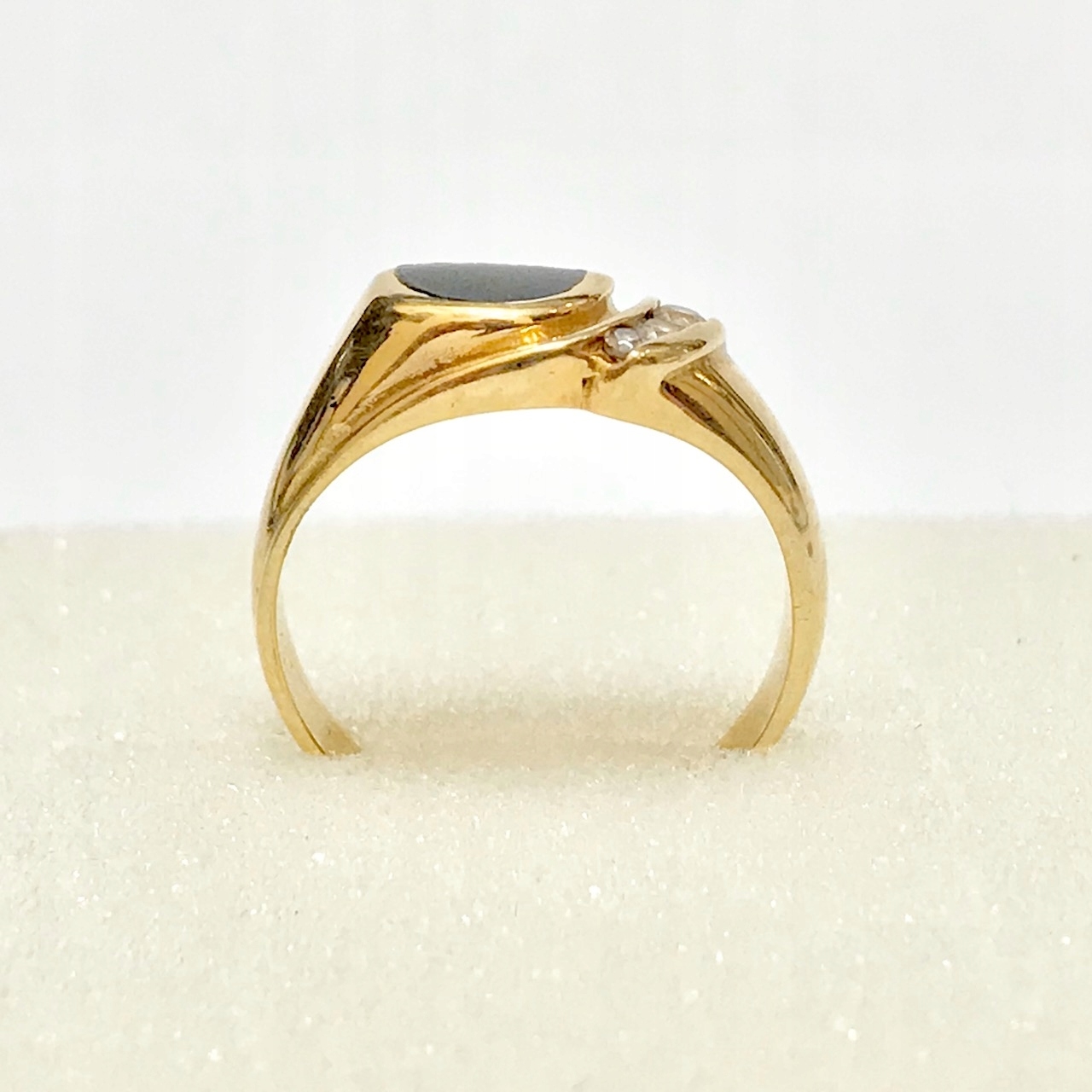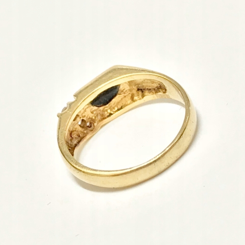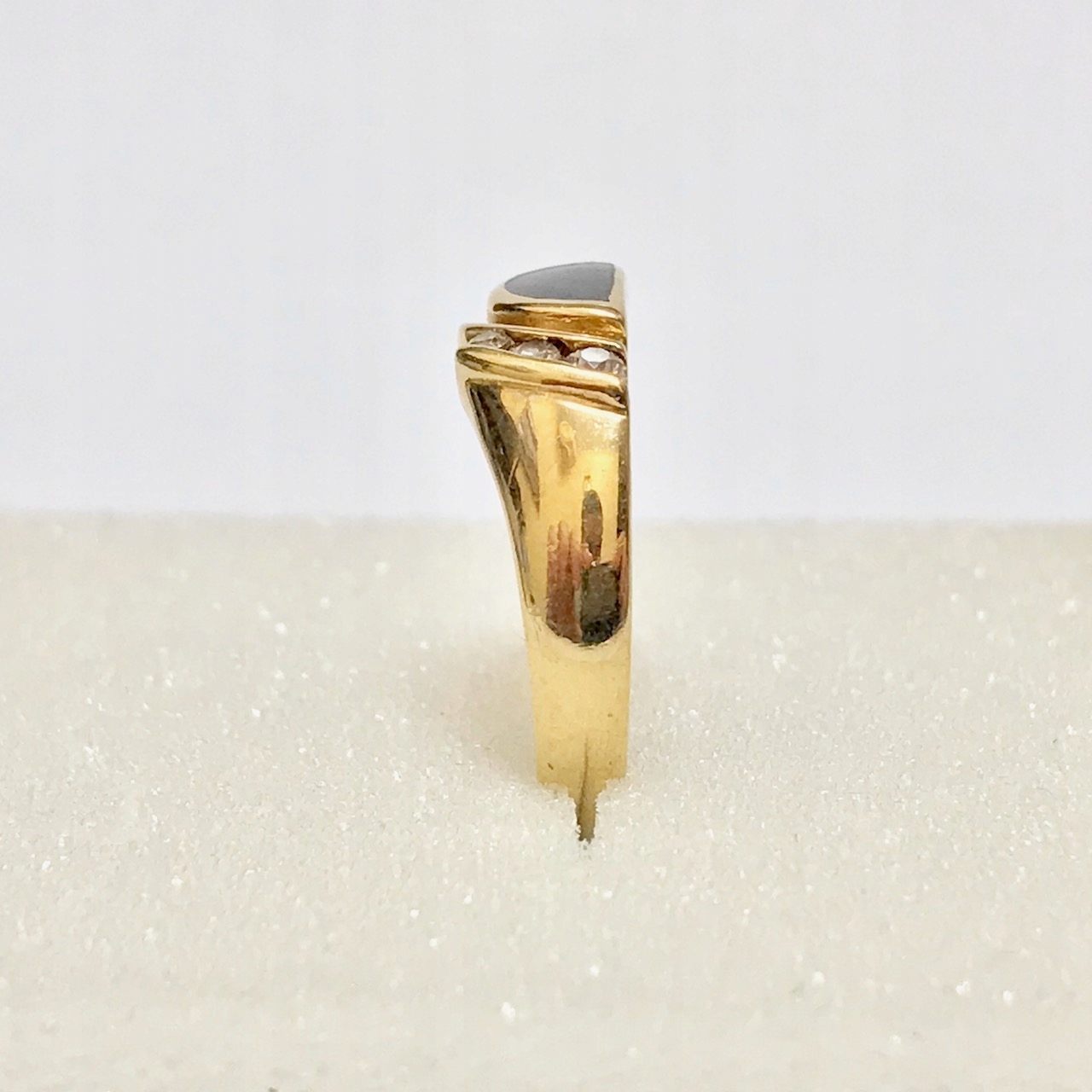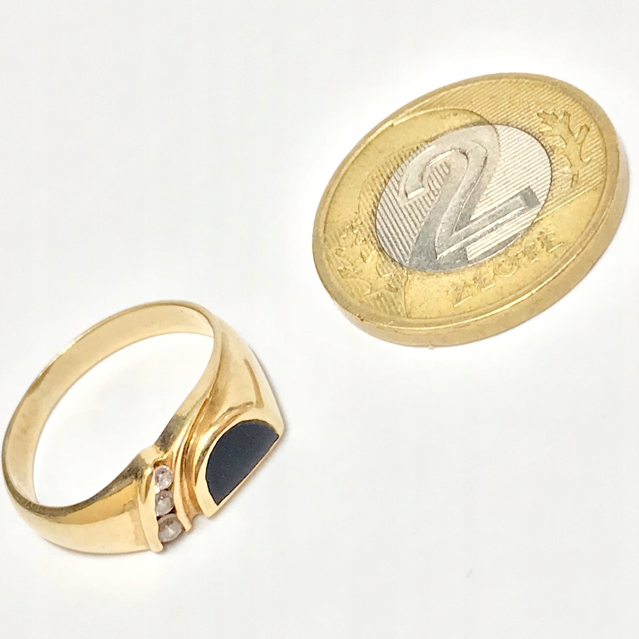 Złoty PIERŚCIONEK 14K piękny ONYKS i CYRKONIE cud r. 10