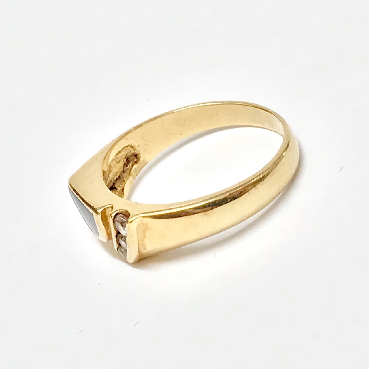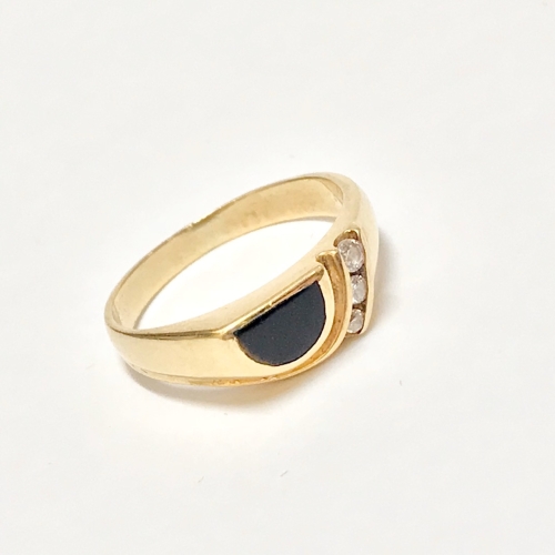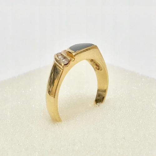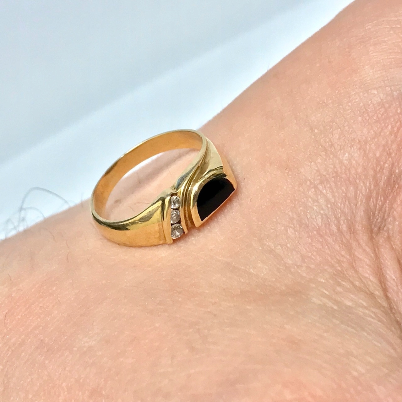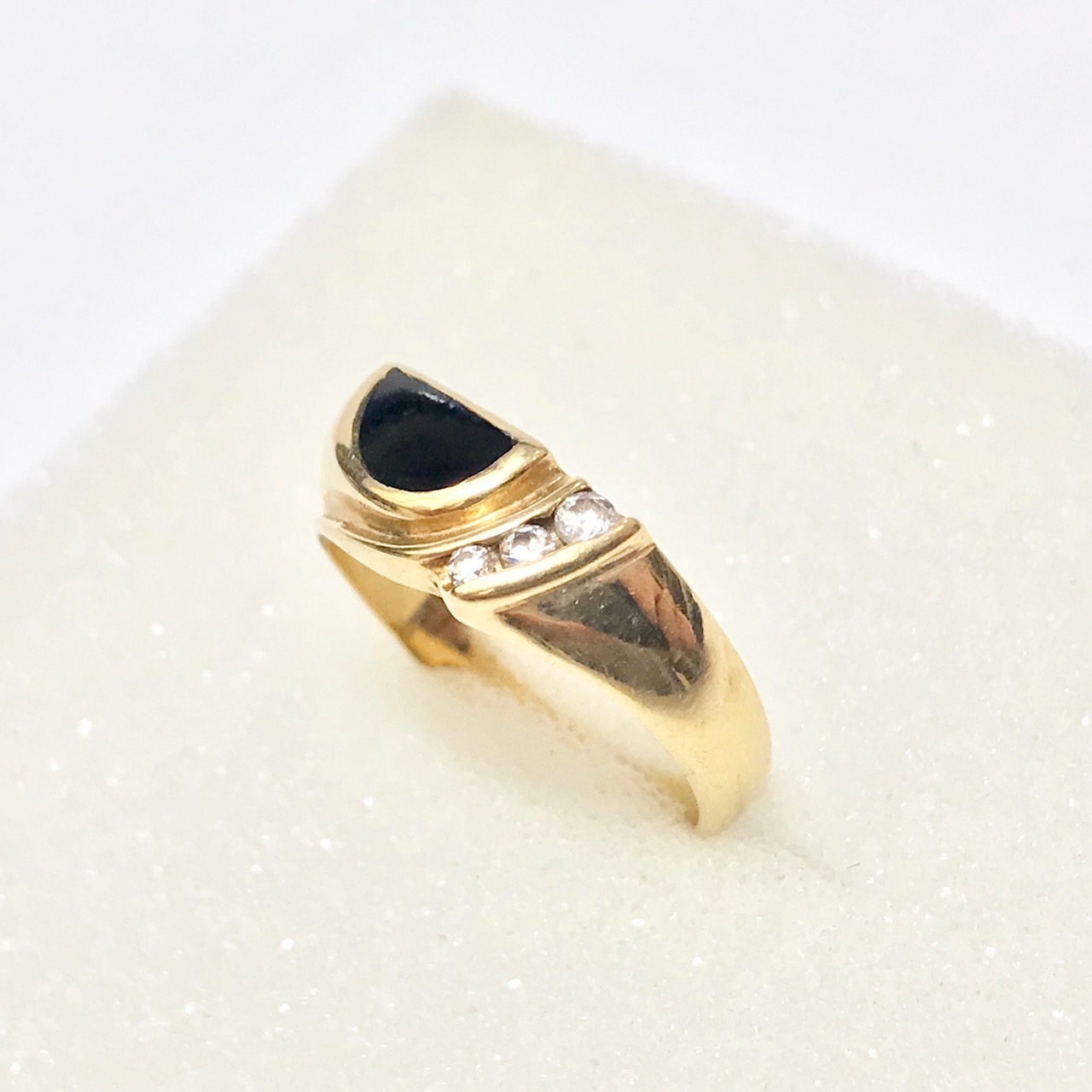 Złoty PIERŚCIONEK 14K piękny ONYKS i CYRKONIE cud r. 10