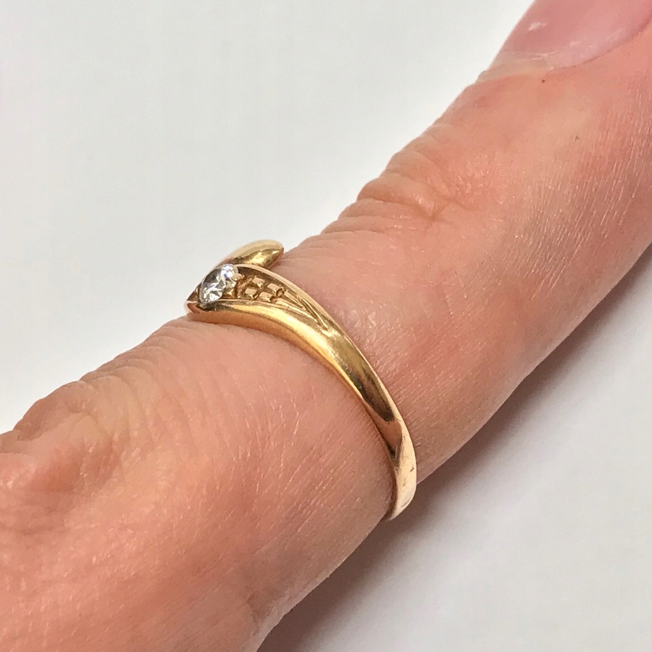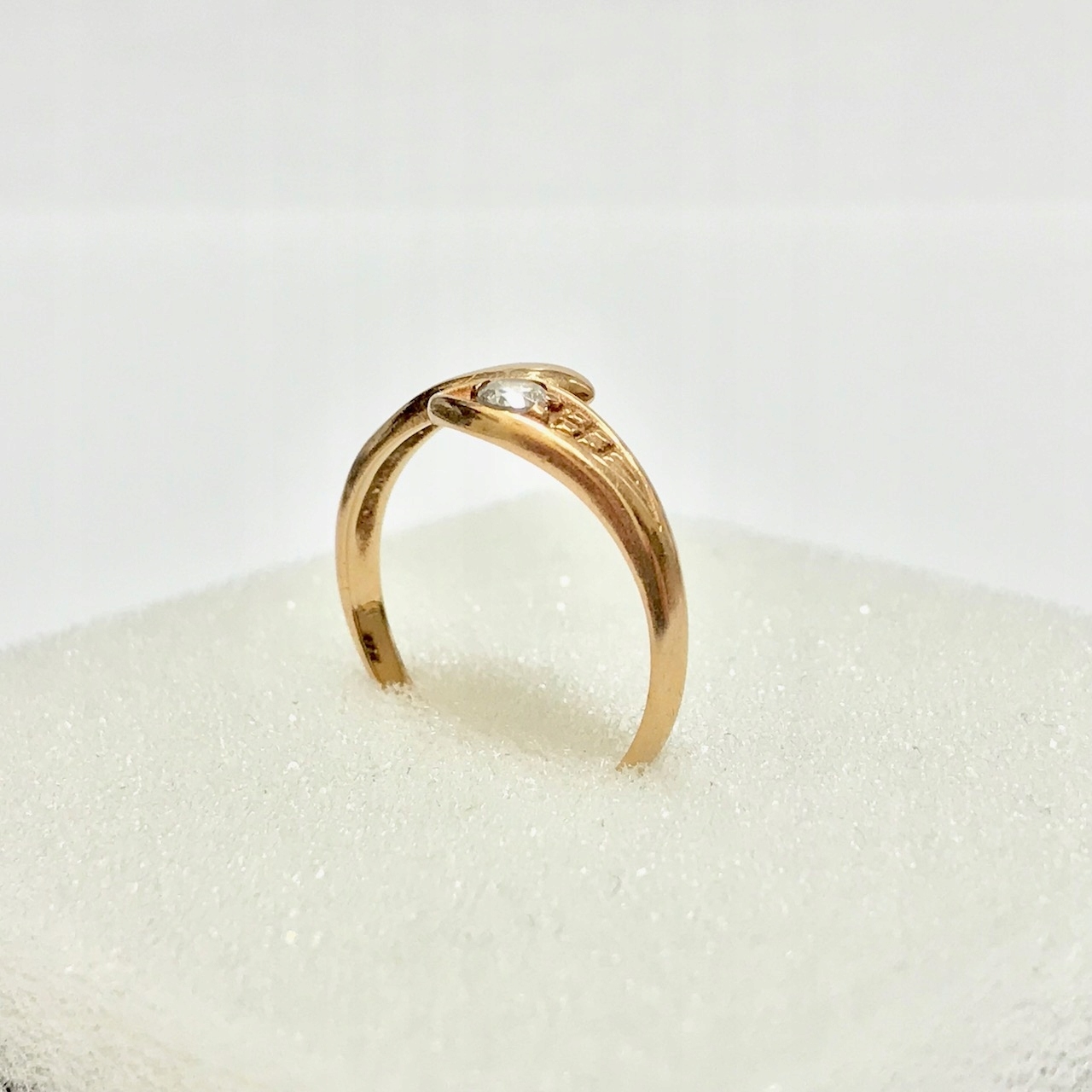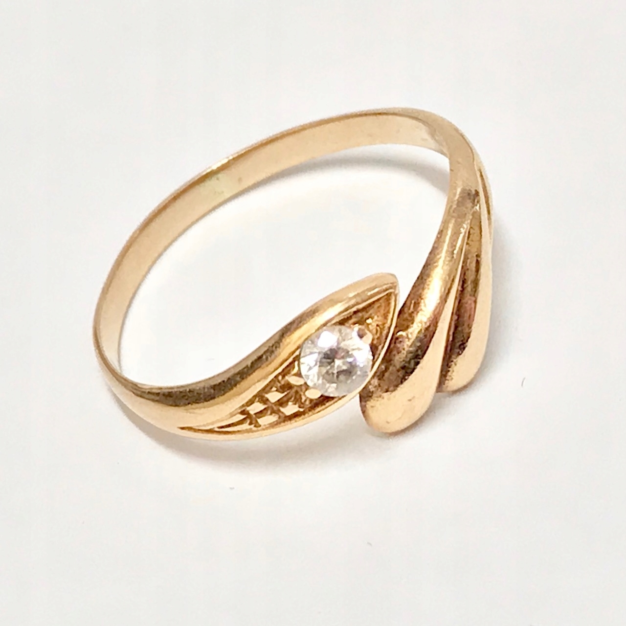 - Piękny pierścionek wykonany z żółtego 14-karatowego złota.