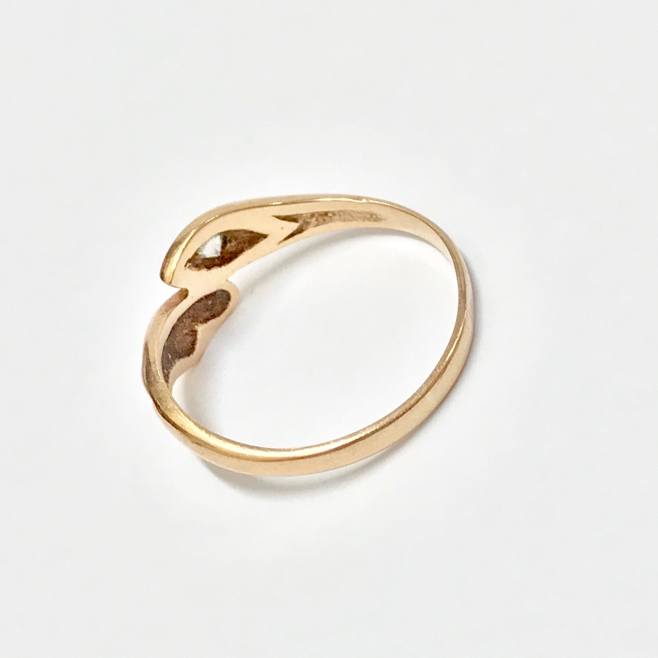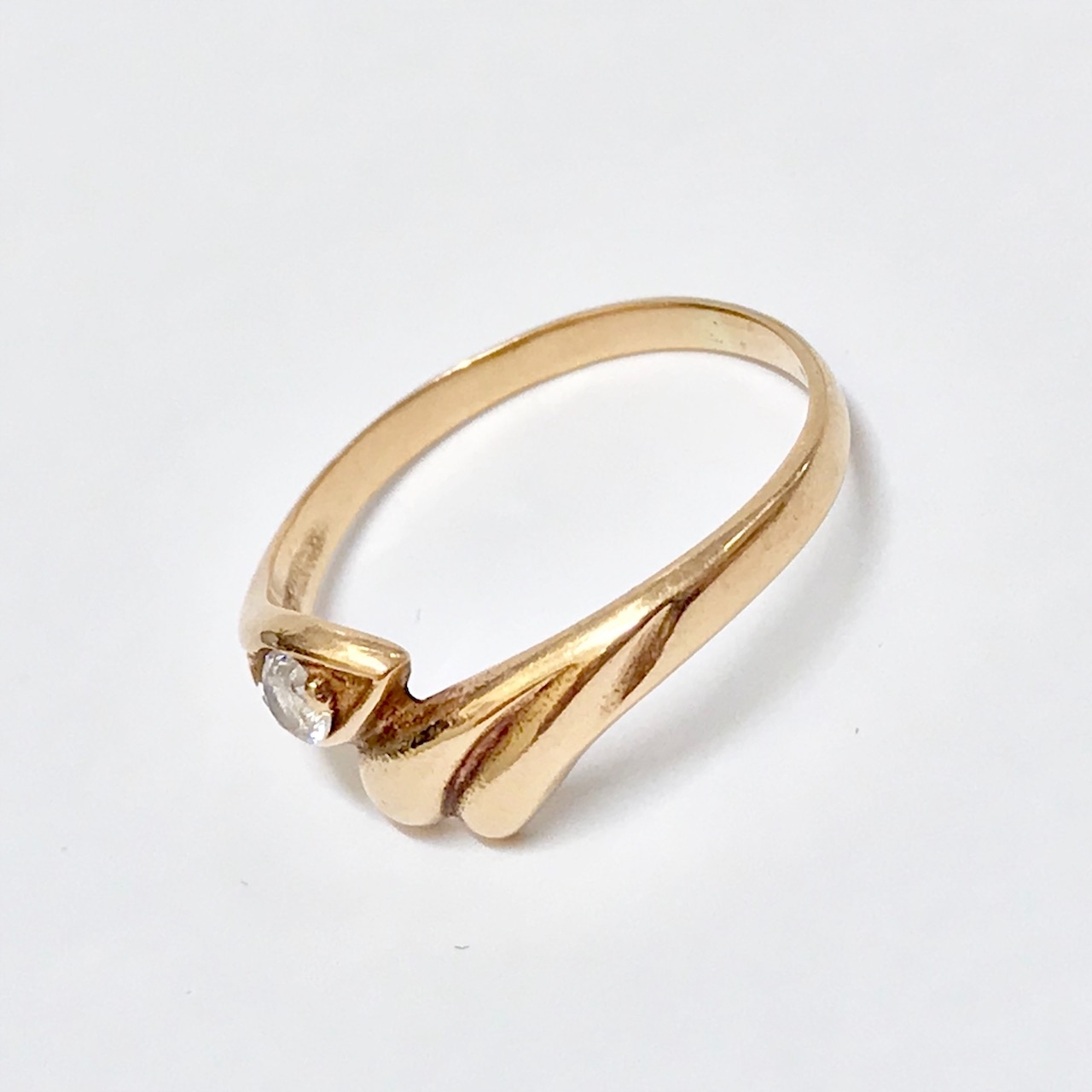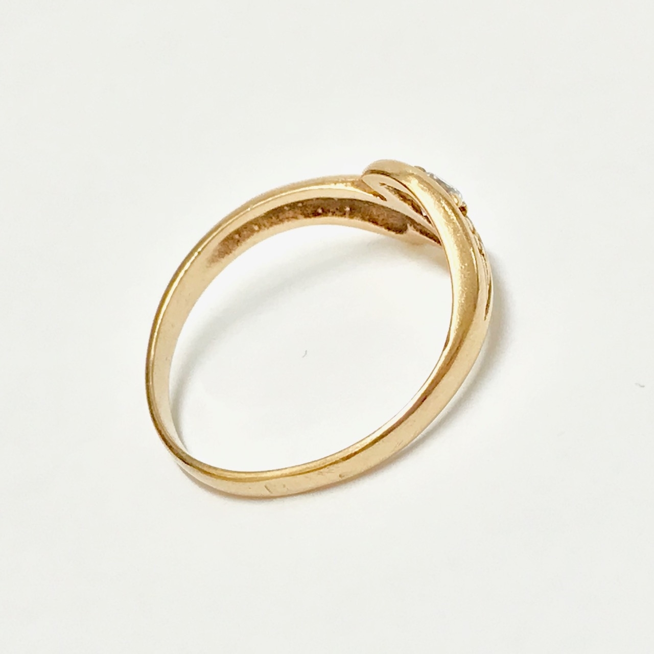 - Piękny pierścionek wykonany z żółtego 14-karatowego złota.
