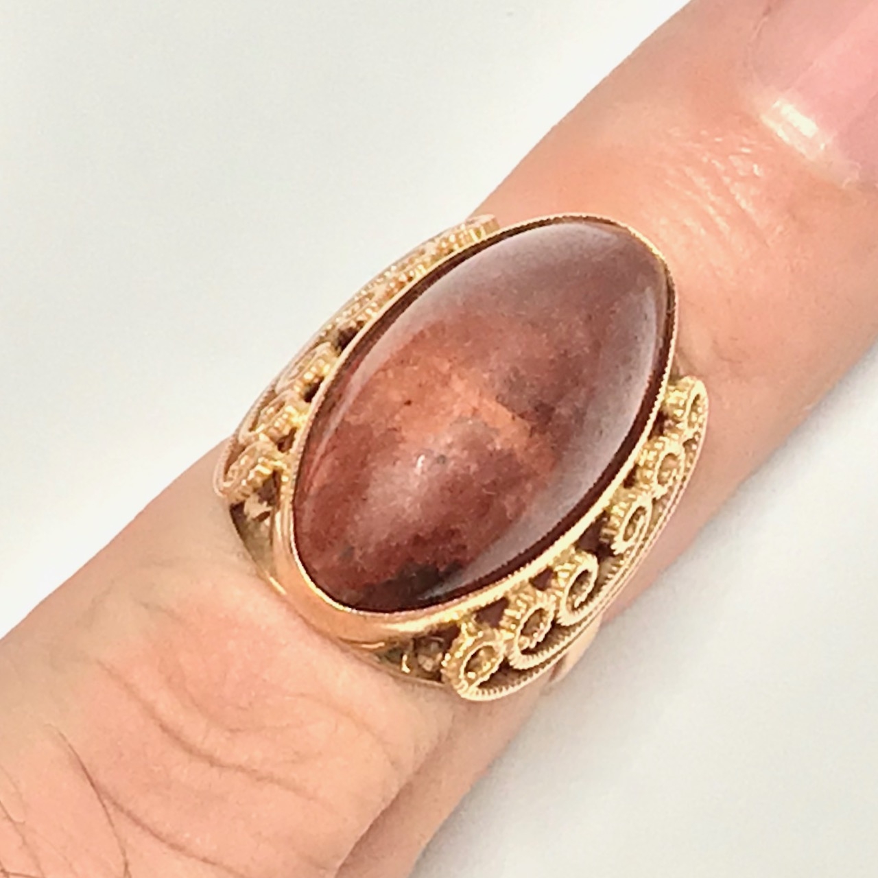 Złoty PIERŚCIONEK 14K piękny kamień TYGRYSIE OKO