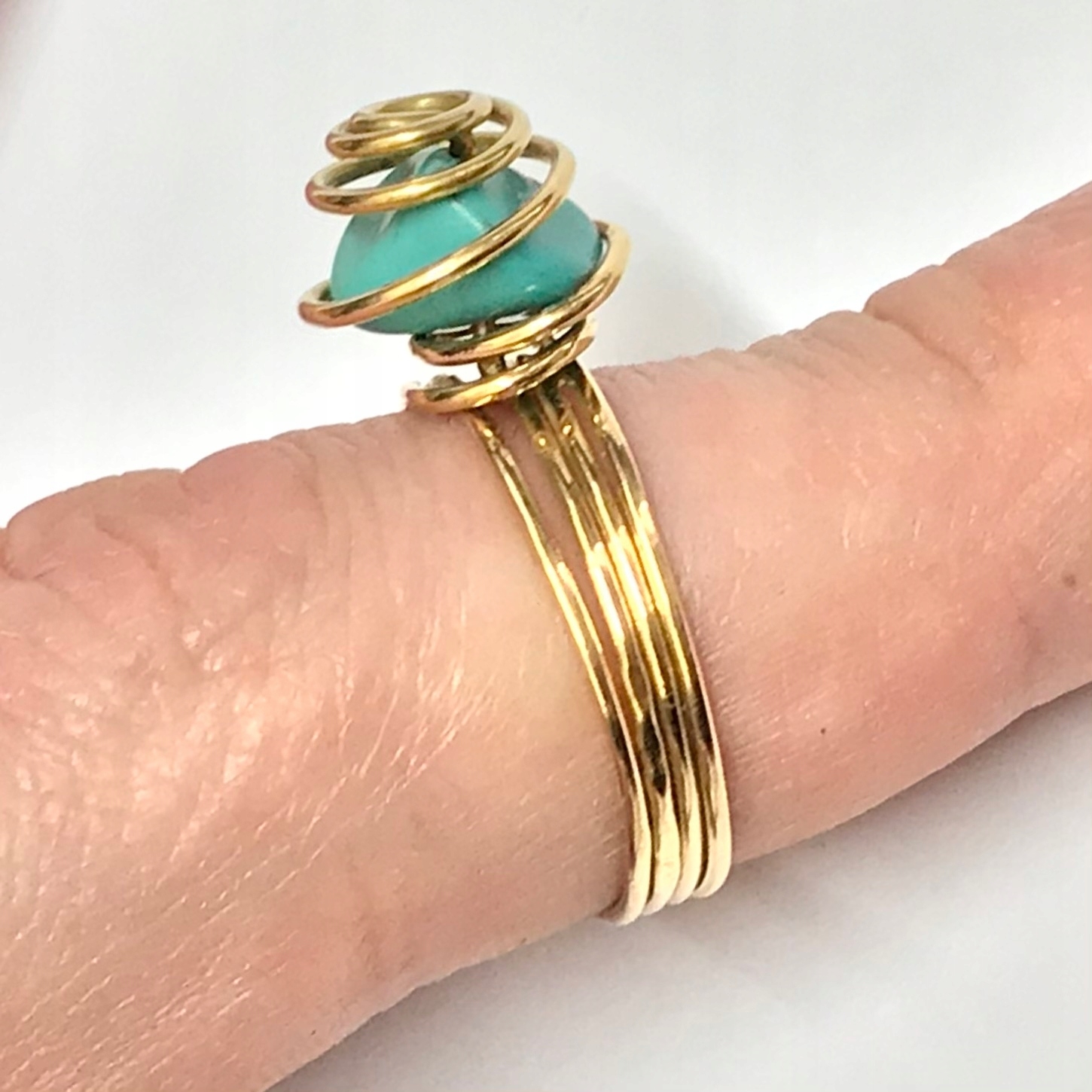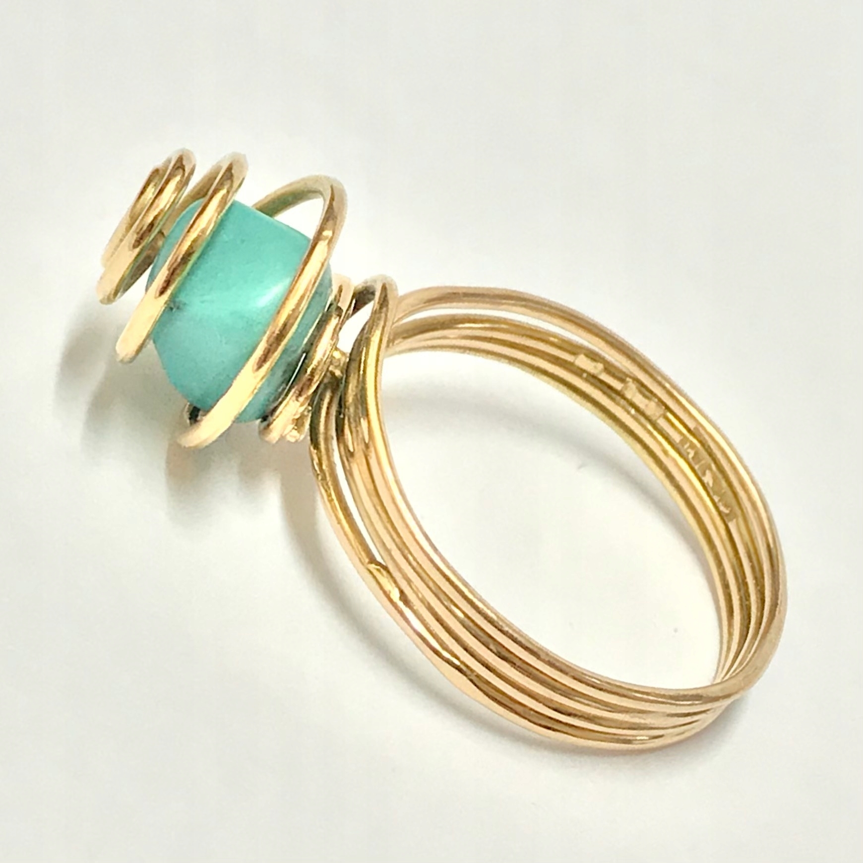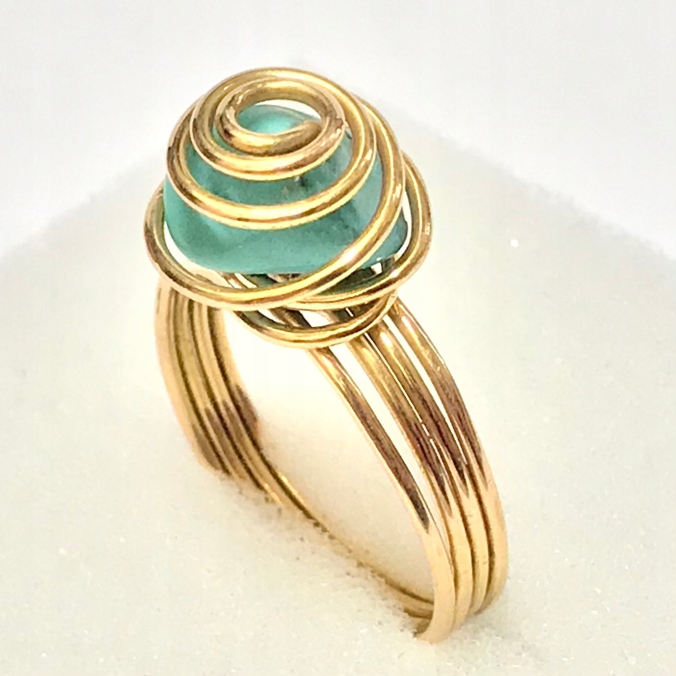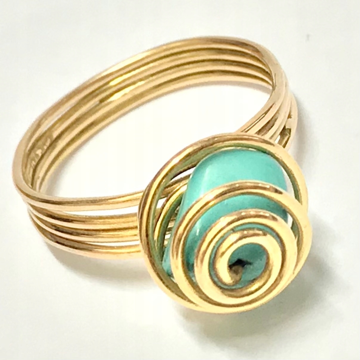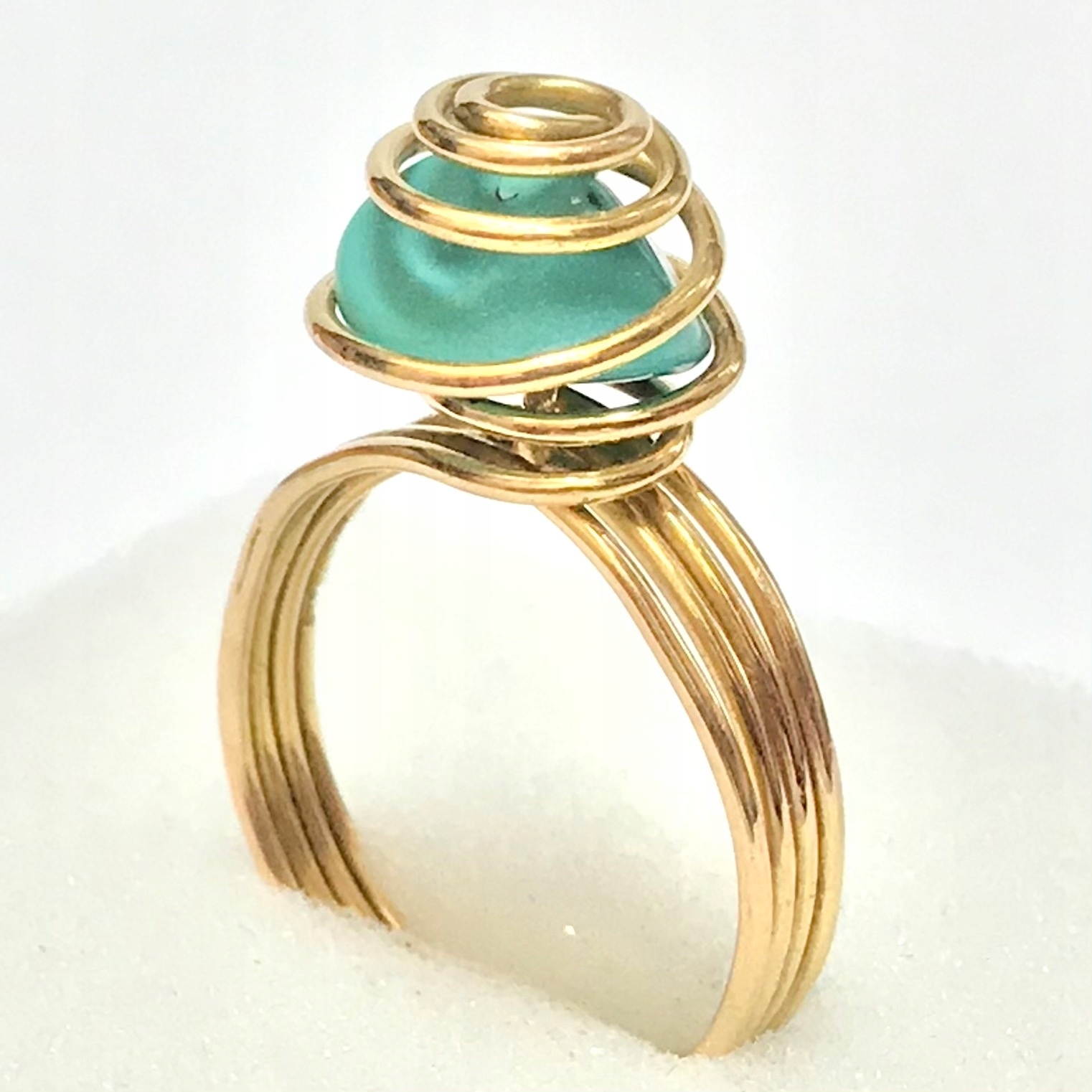 Złoty PIERŚCIONEK 18K zielony TURKUS Egipski wyrób