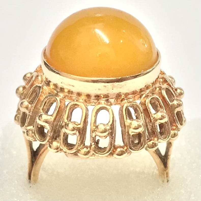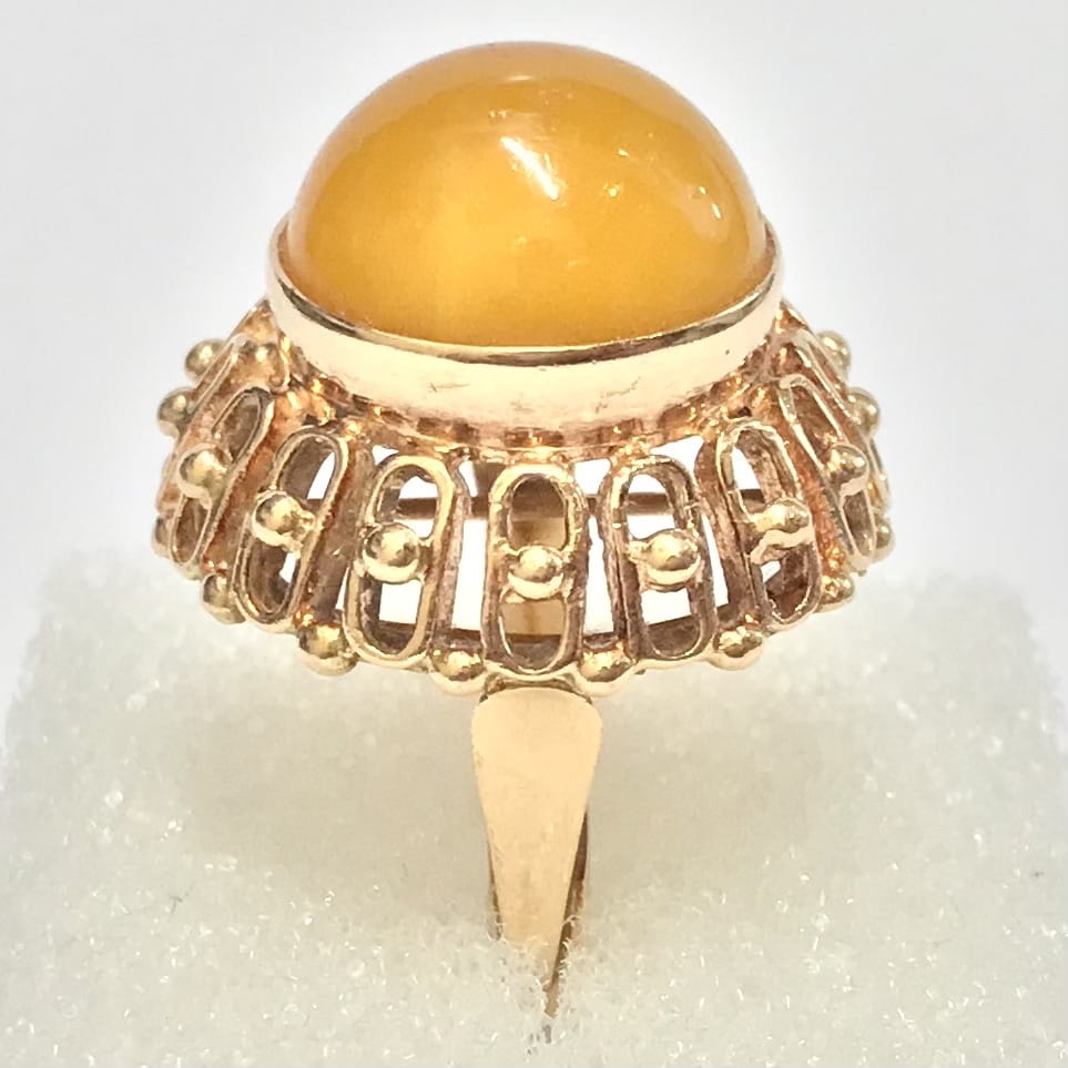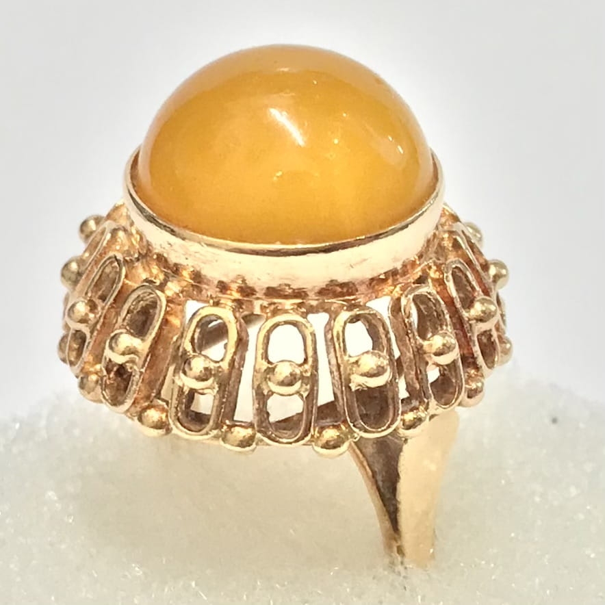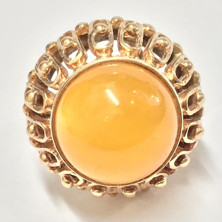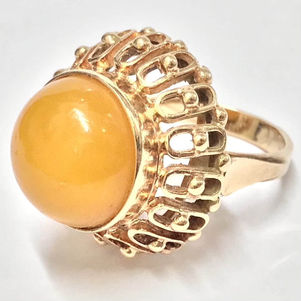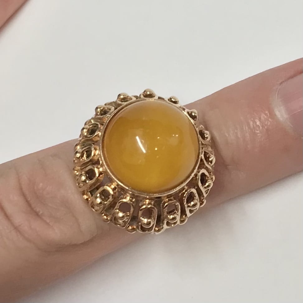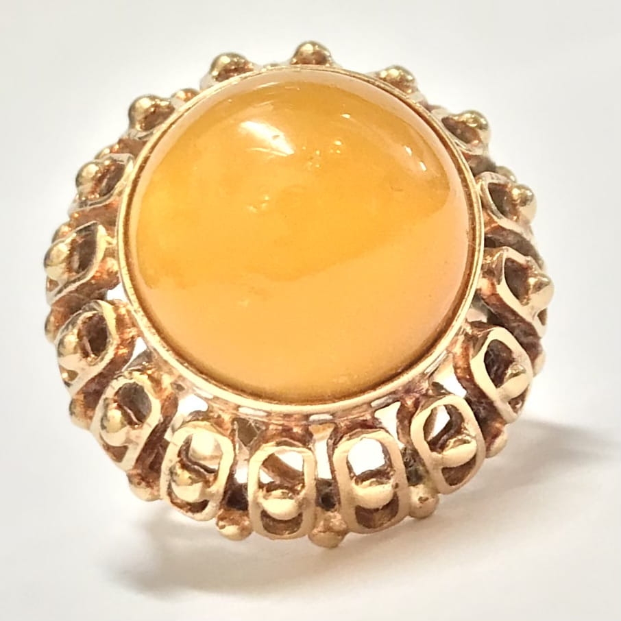 Złoty PIERŚCIONEK 585 14K AŻUROWY Top zjawiskowy AGAT POMARAŃCZOWY r.13
