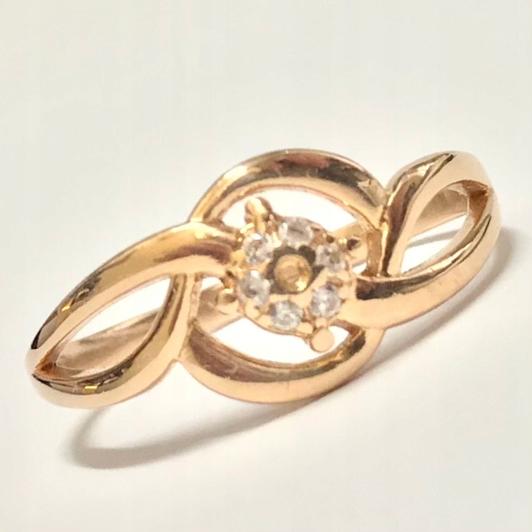 Złoty PIERŚCIONEK 585 14K AŻUROWY cud KAMIENIE r15