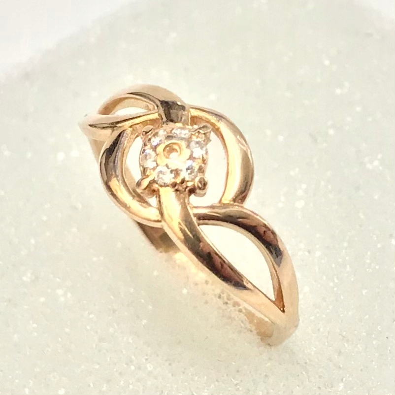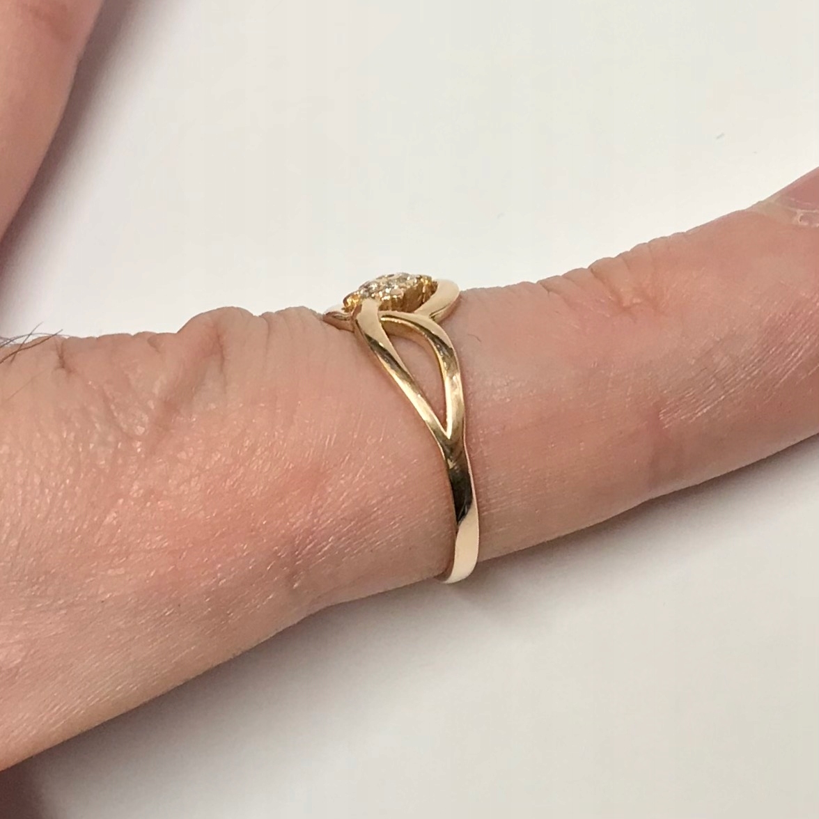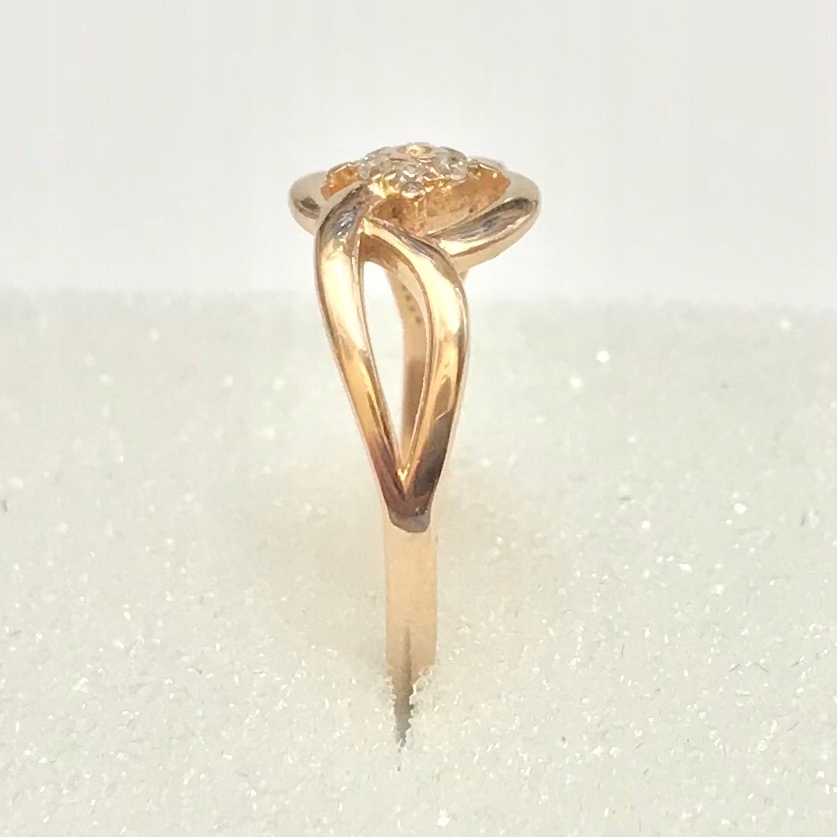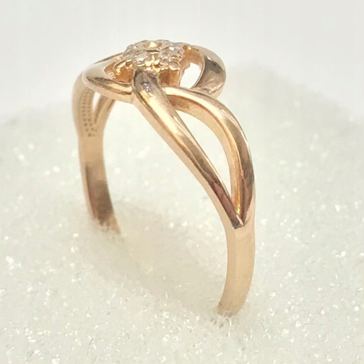 - Przepiękny bardzo oryginalny pierścionek wykonany z różowego 14- karatowego złota.