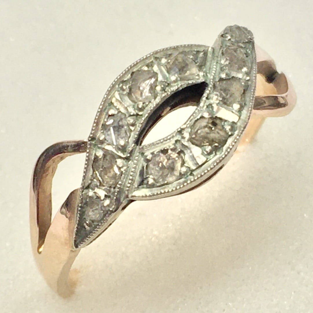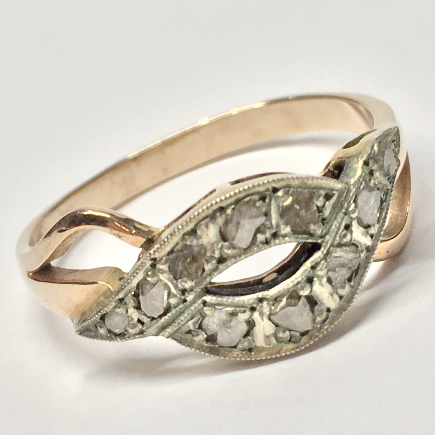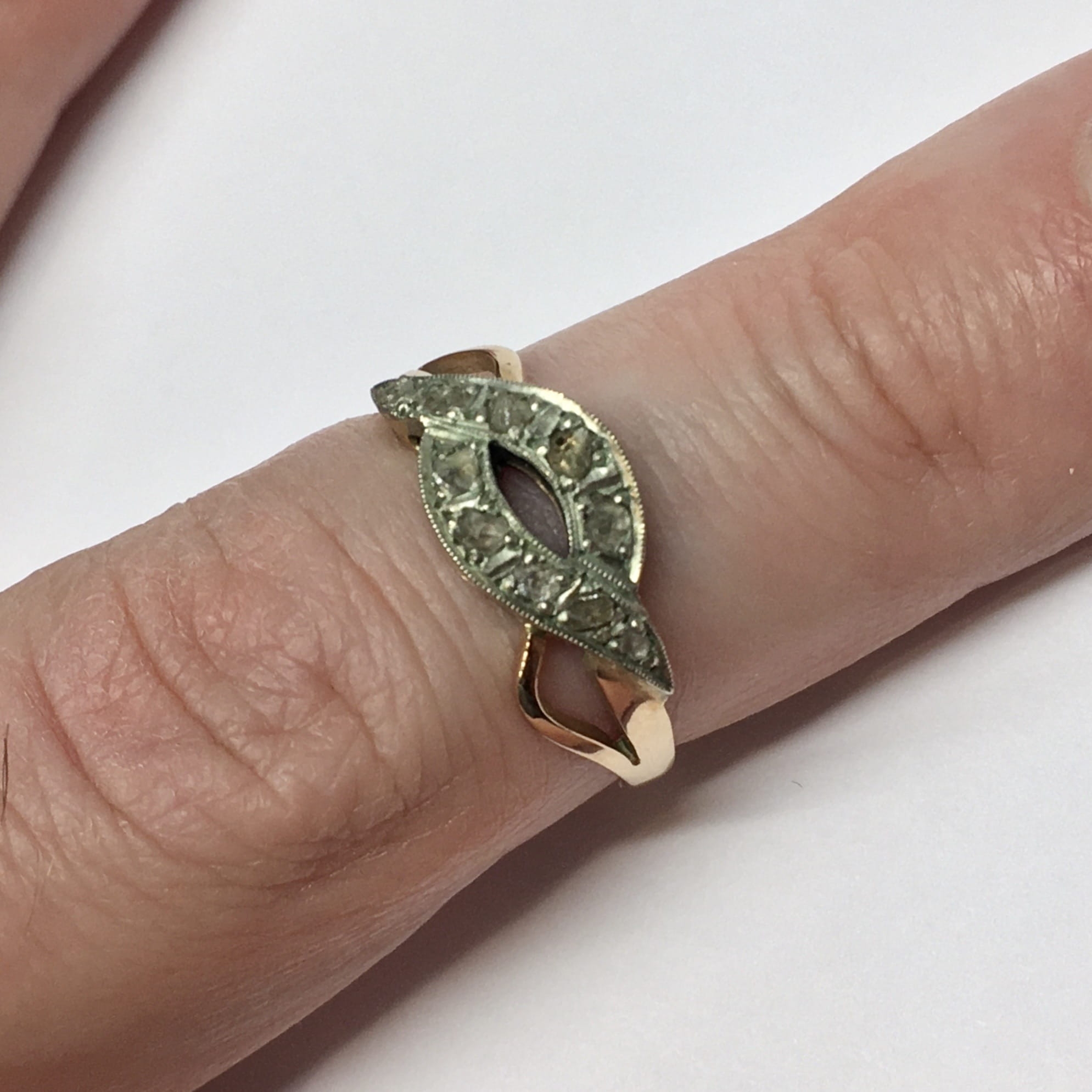 Piękny pierścionek wykonany z różowego i białego 14-karatowego złota.