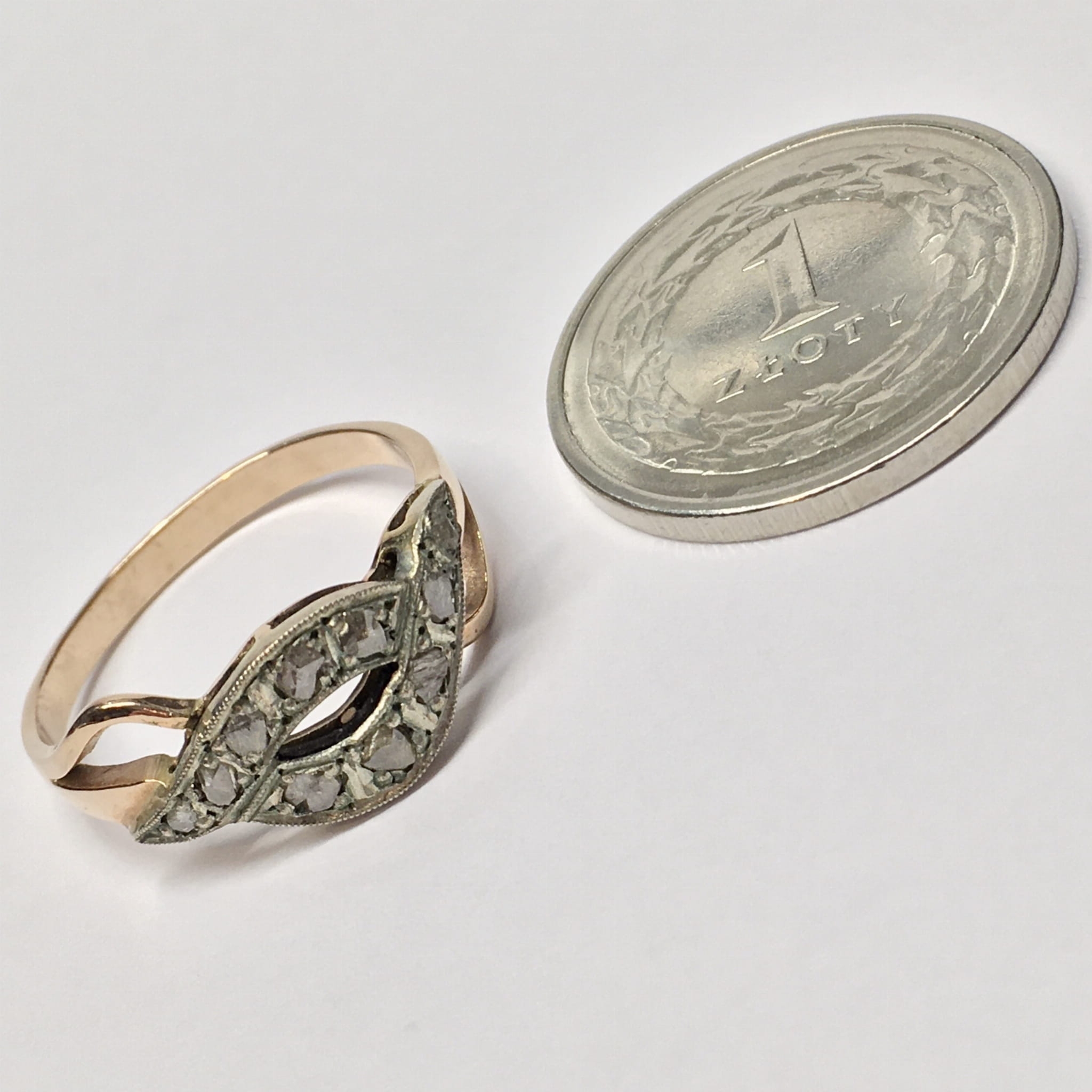 Złoty PIERŚCIONEK 585 14K BIAŁE i RÓŻOWE złoto DIAMENTY 0.20ct cudowny r.19