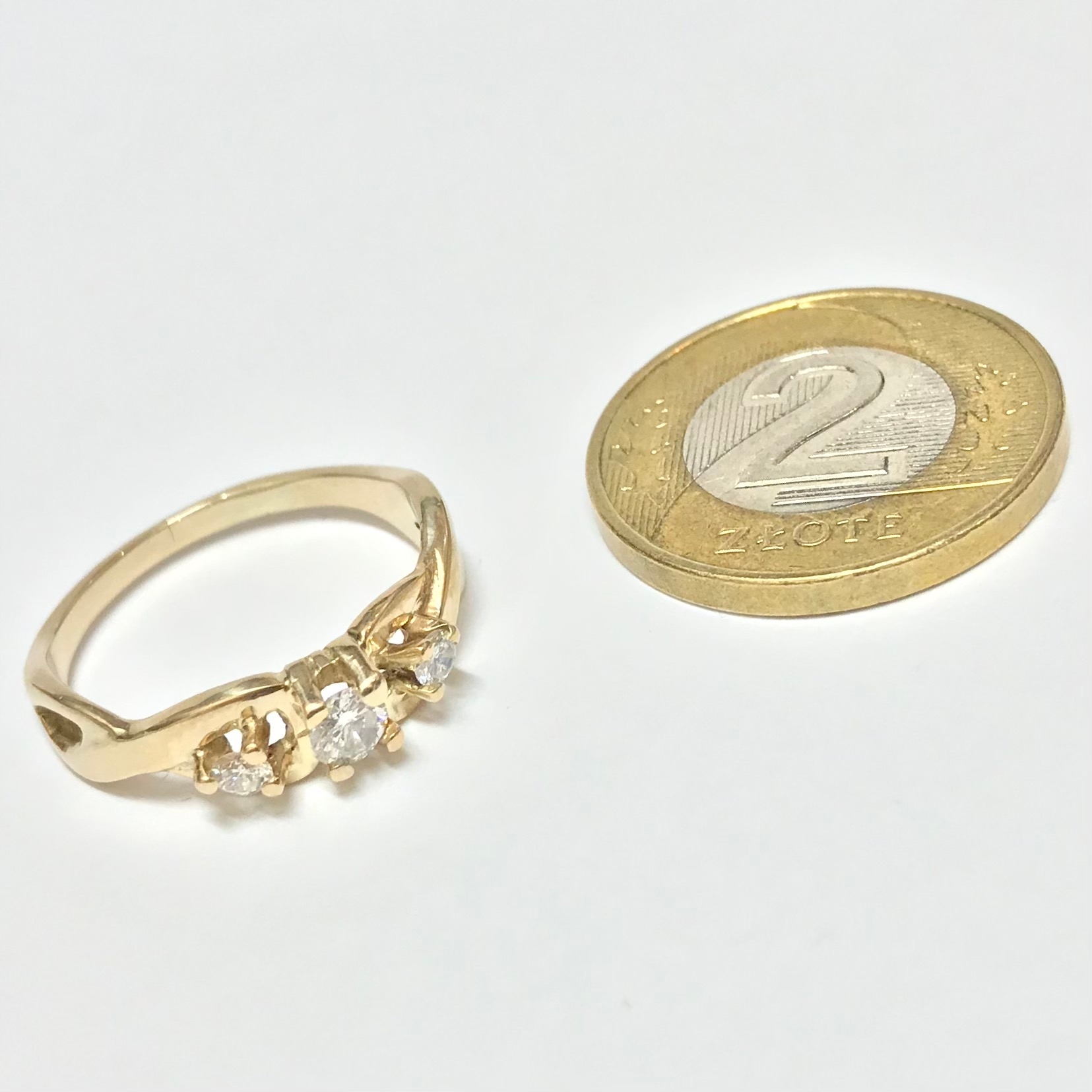 Złoty PIERŚCIONEK 585 14K DIAMENTY 0.25ct CUD r.12
