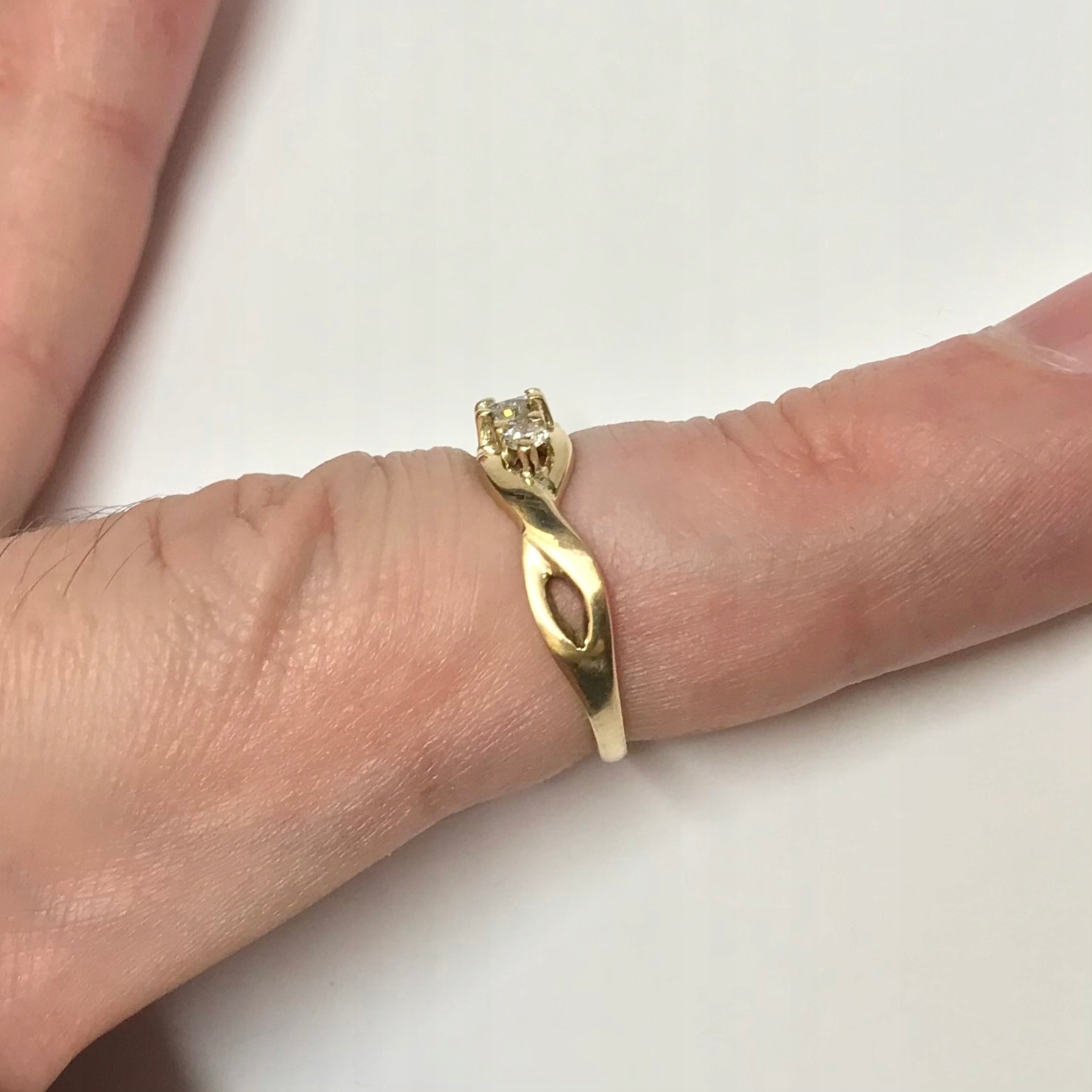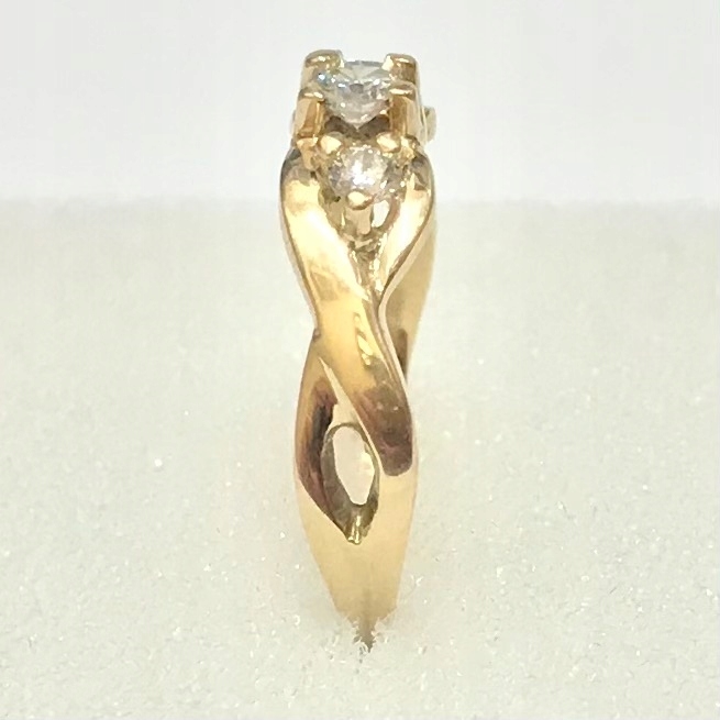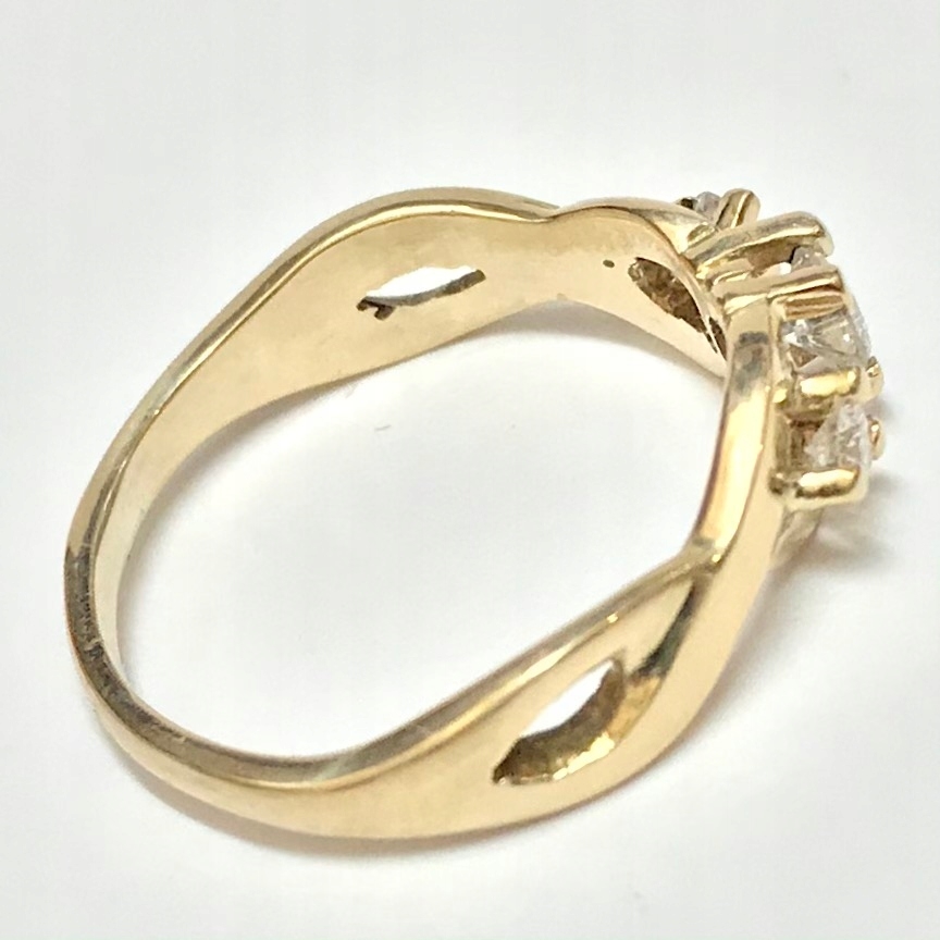- Piękny pierścionek wykonany z żółtego 14-karatowego złota.