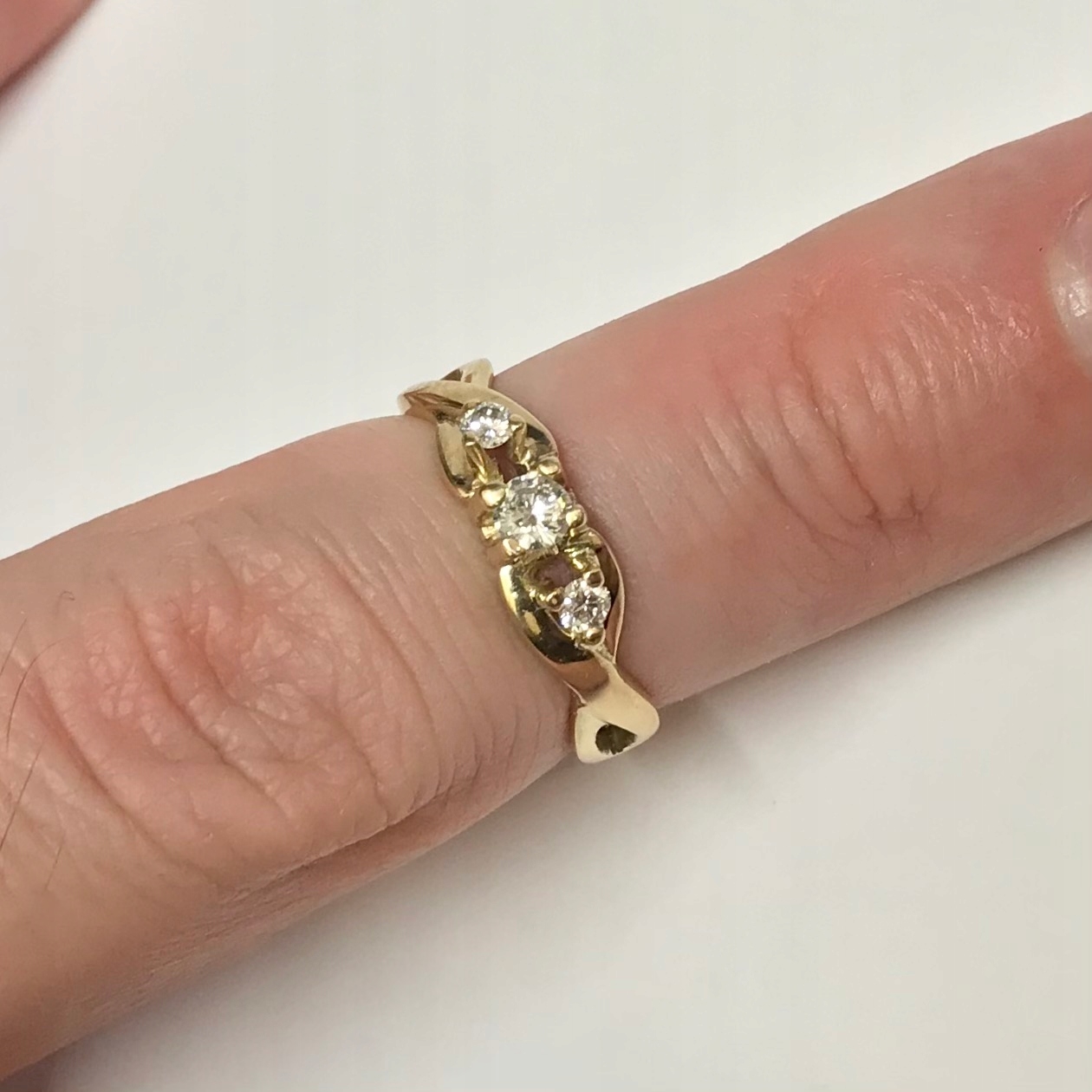 - Cudowne jubilerskie rękodzieło zdobione trzema diamentami o łącznej masie 0.25ct.