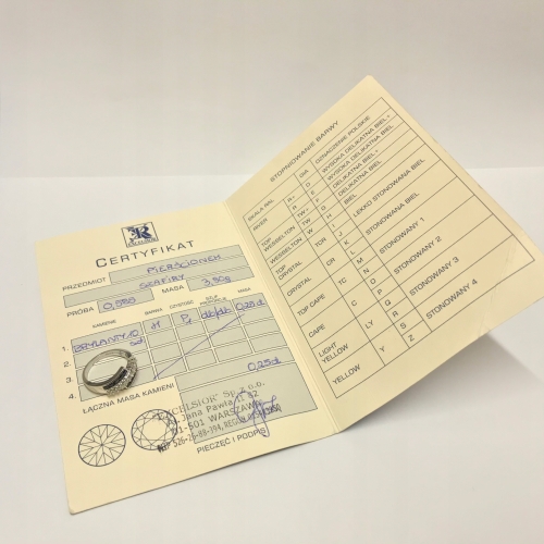 - Pierścionek, certyfikat, ozdobne pudełeczko.